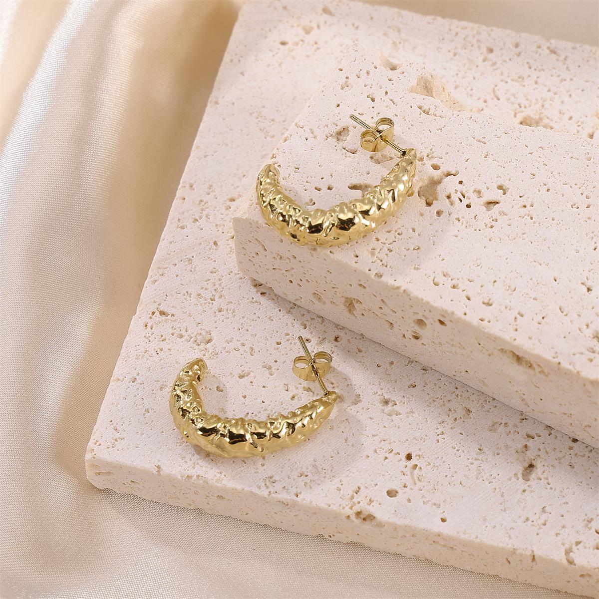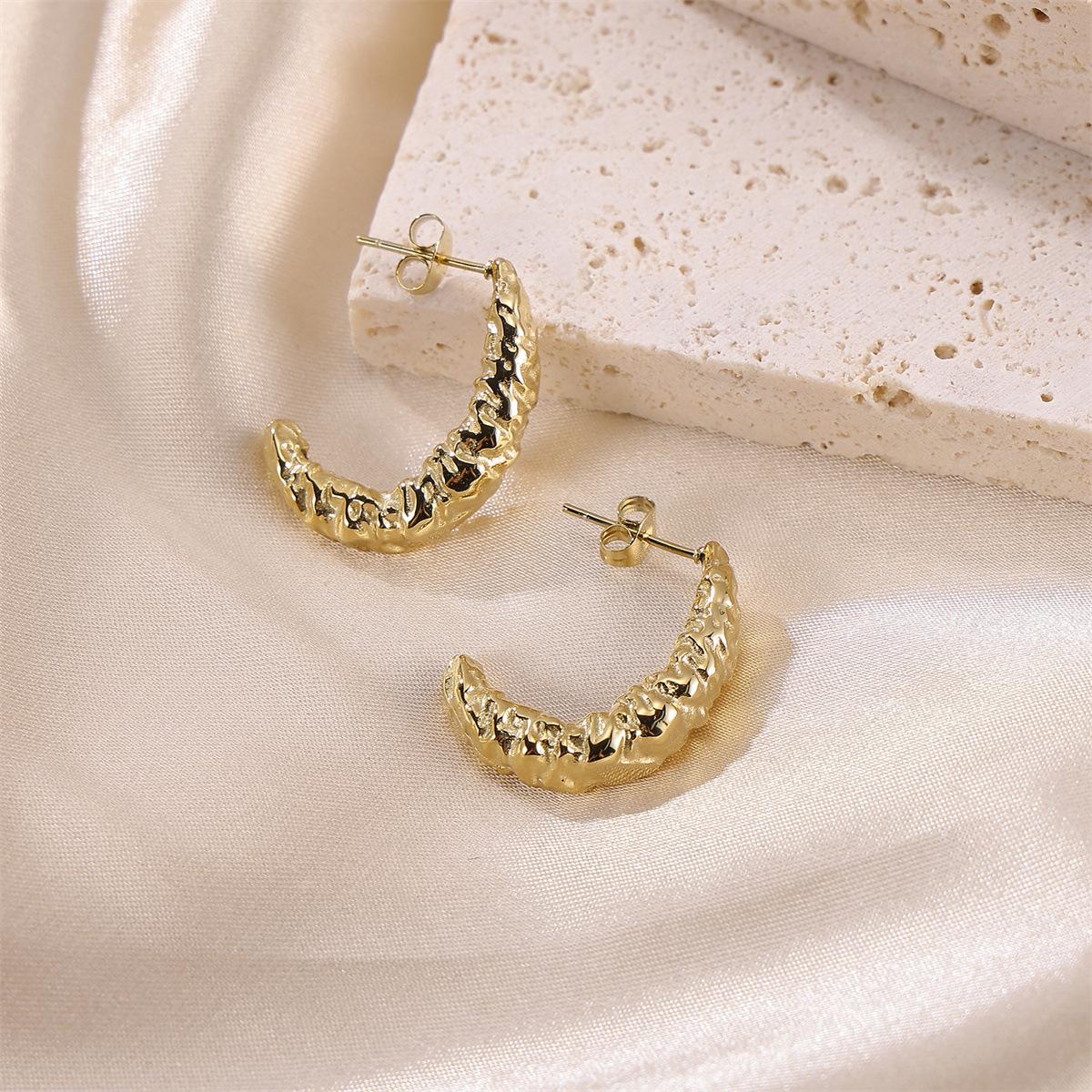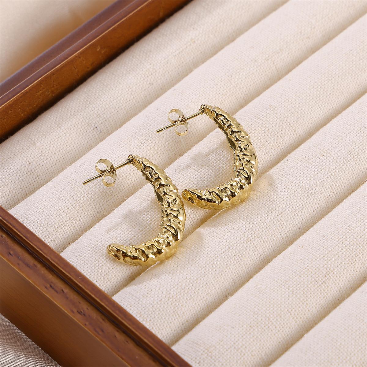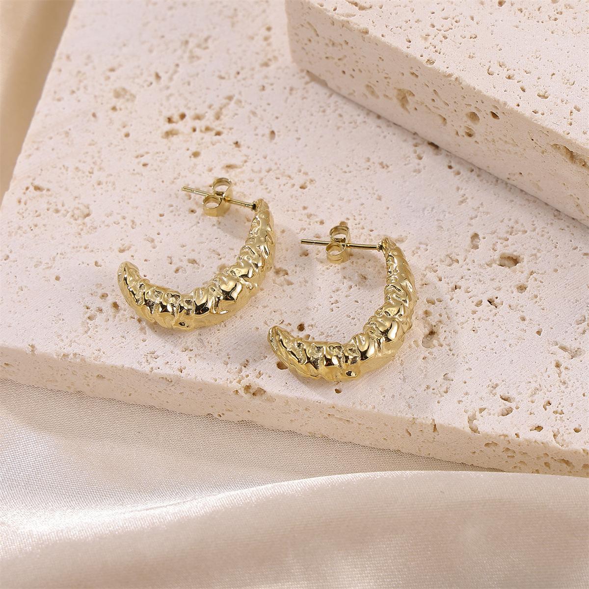 Pendientes transfronterizos de moda europea y americana de alto sentido, pendientes de acero inoxidable en oro de 18 quilates con temperamento en forma de media luna para damas, de acero de titanio que combinan con todo.