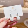 Pendientes de plata S925 con forma de lazo elegante y perla para mujer, pequeños, sencillos y exquisitos, que combinan con todo.