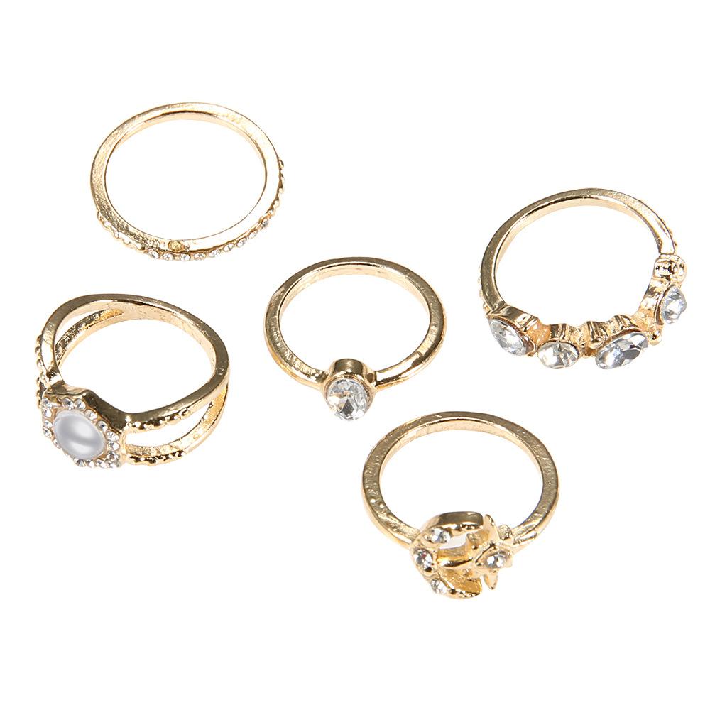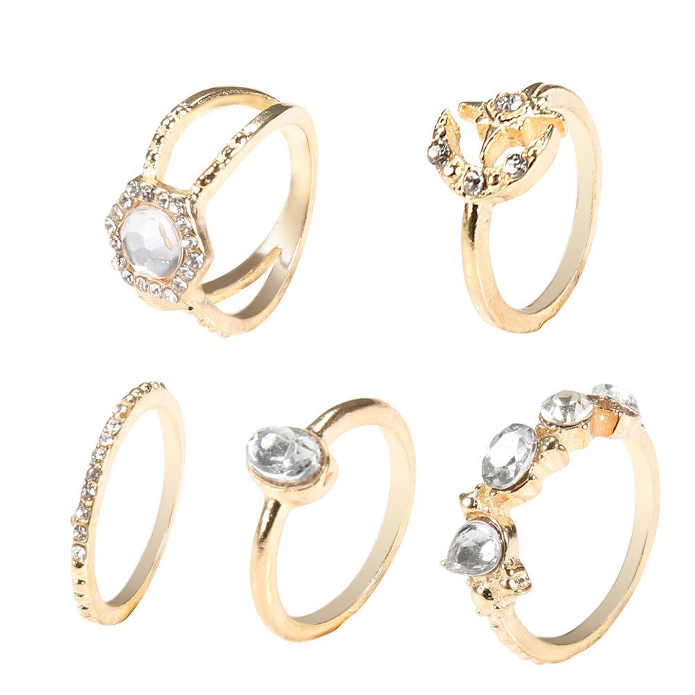 Nuevo conjunto especial de joyería transfronteriza europea y americana, anillo hexagonal personalizado de sol y luna, juego de 5 piezas