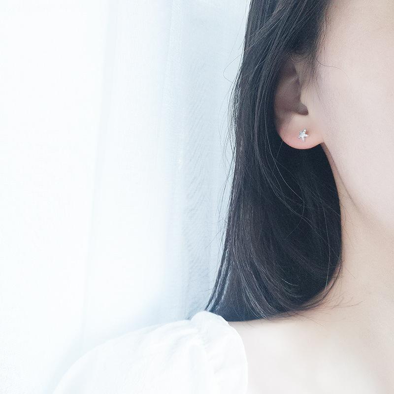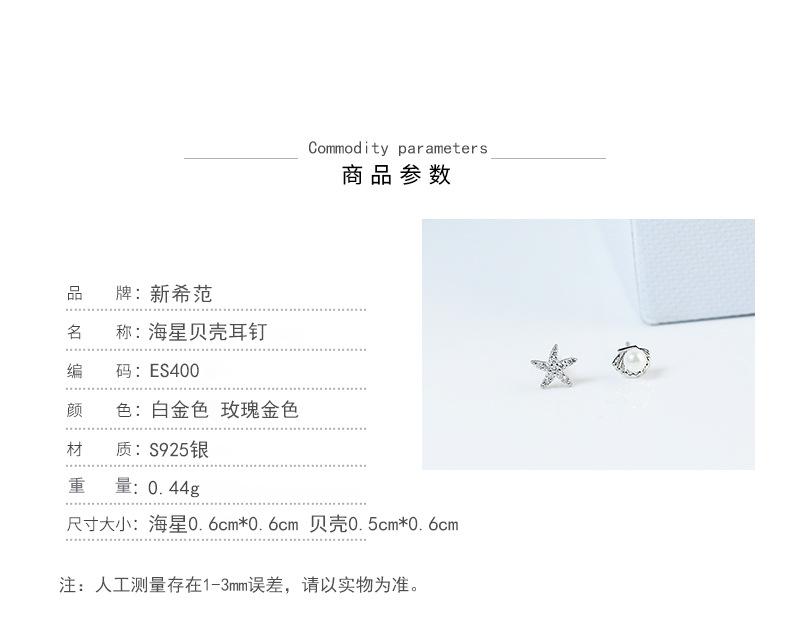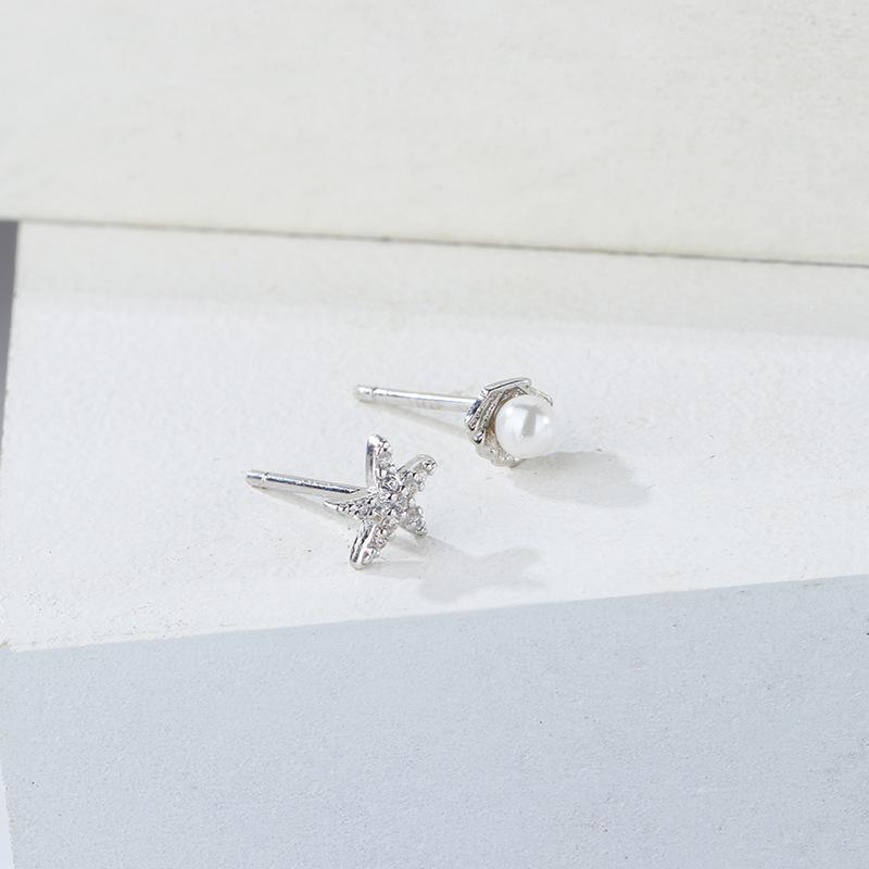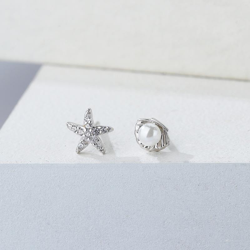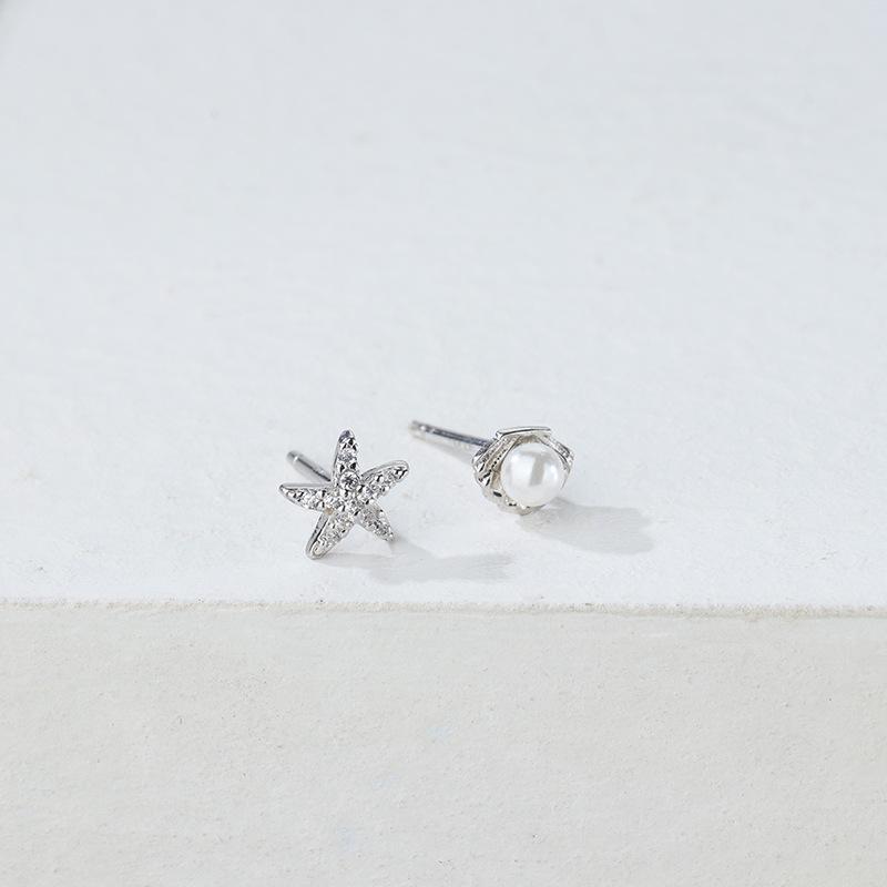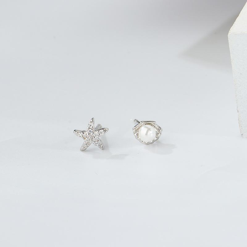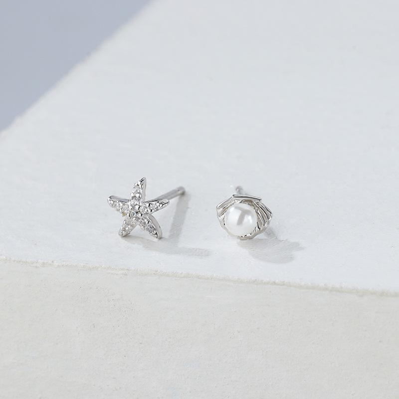 Pendientes de concha de estrella de mar de plata esterlina s925 para mujer, asimétricos, estilo coreano, pequeños y frescos, accesorios de plata para estudiantes.