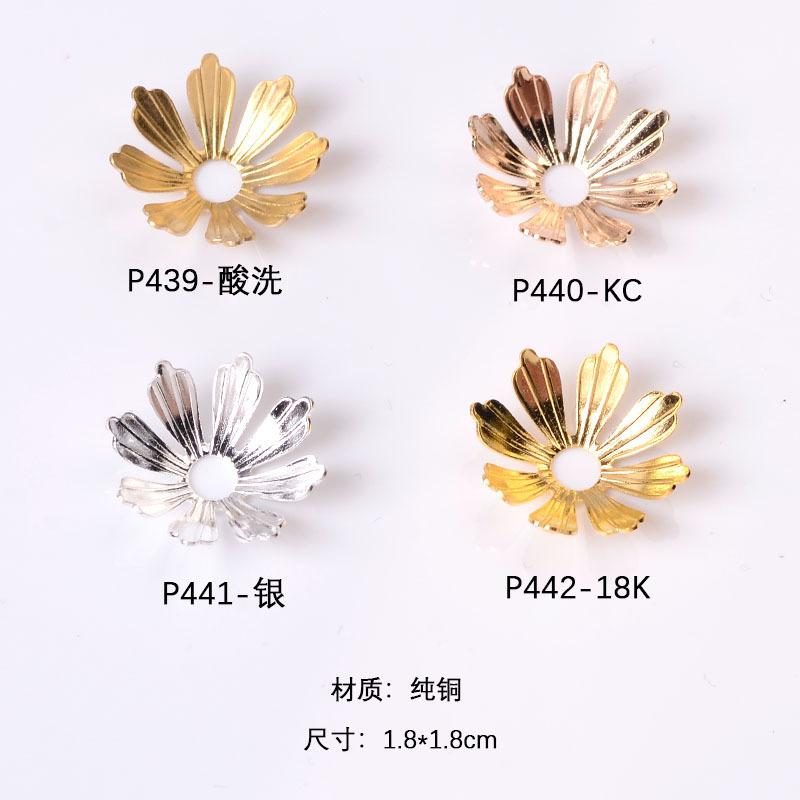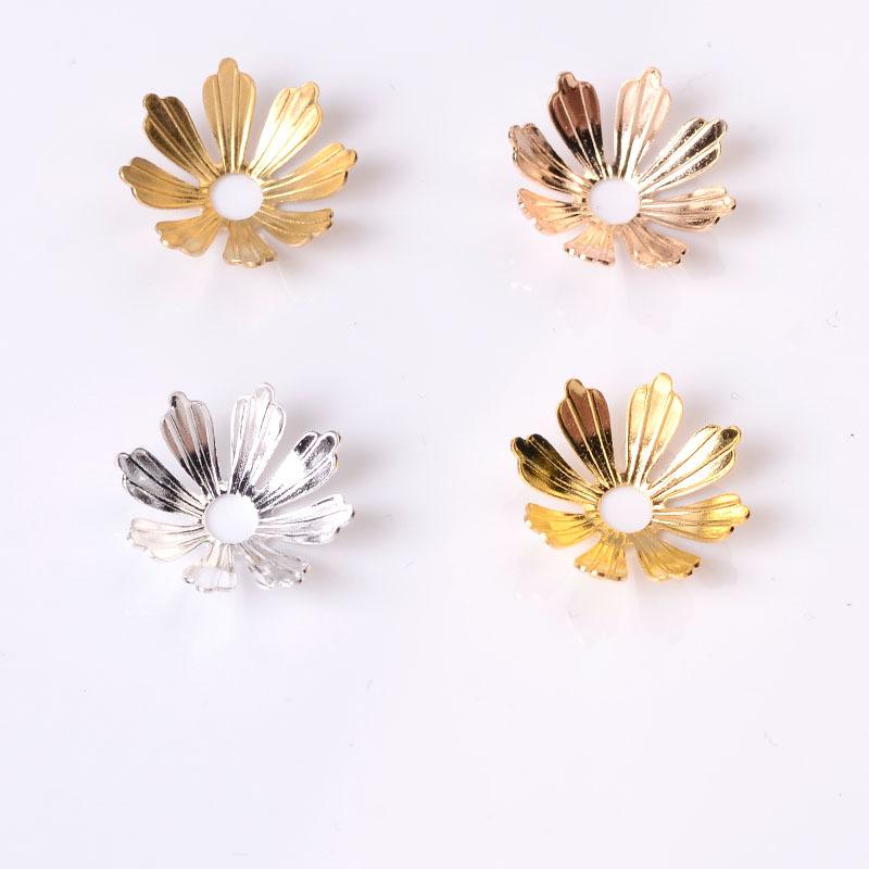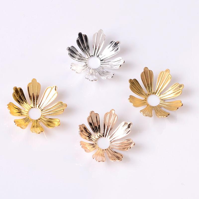 Flor de cobre, pétalo de ocho hojas, flor tridimensional con agujero central, flor de bricolaje, corazón, estilo antiguo, horquilla, horquilla, corona para el cabello Ming