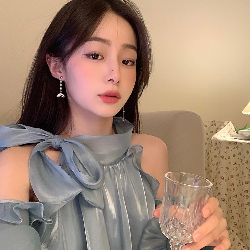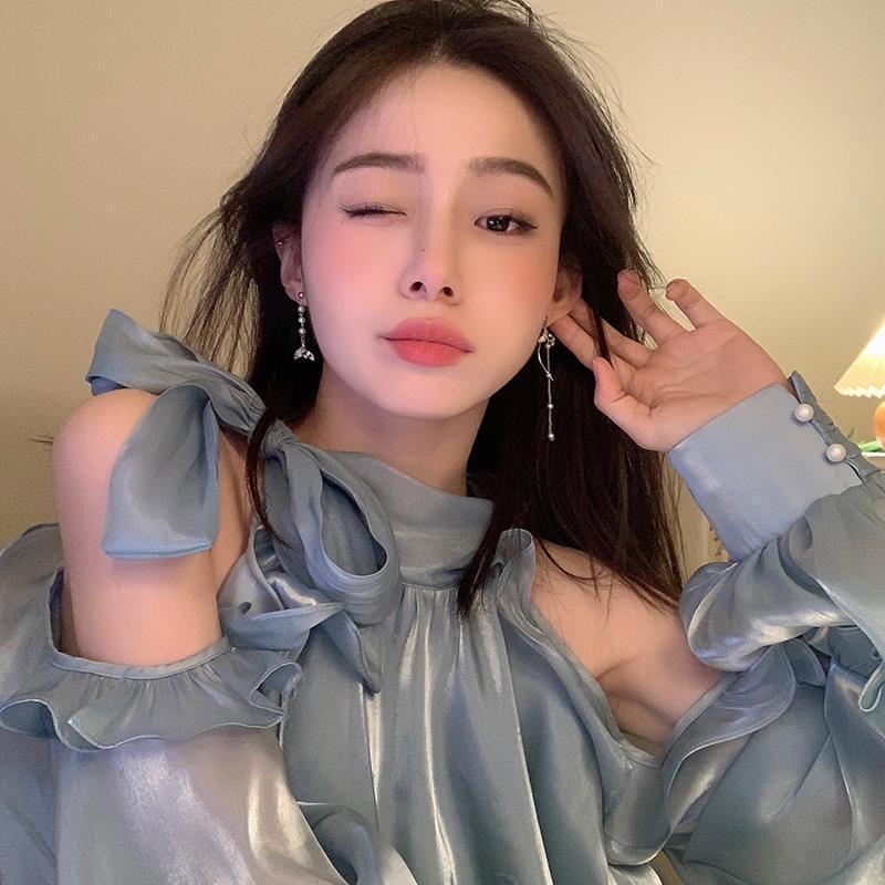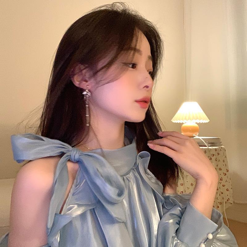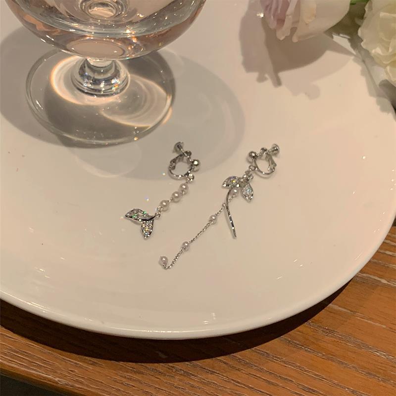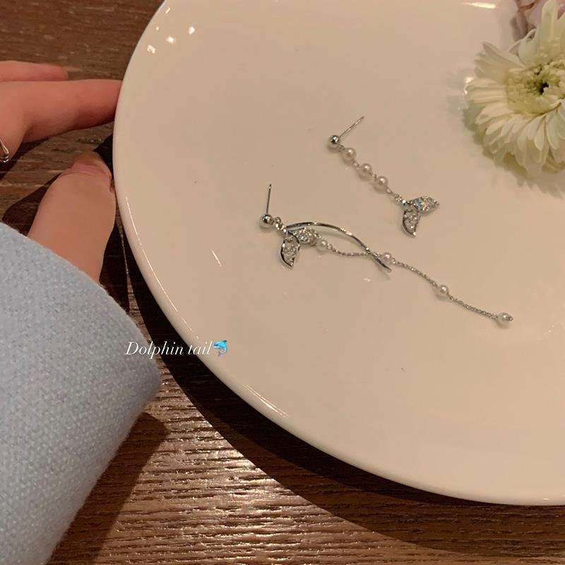 Pendientes de borla asimétricos con perla de sirena para mujer, diseño de nicho con sentido avanzado, viento frío, luz, lujo, temperamento, pendientes tipo botón
