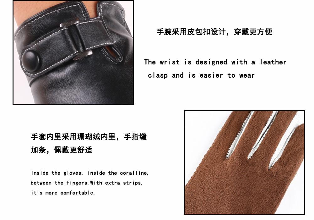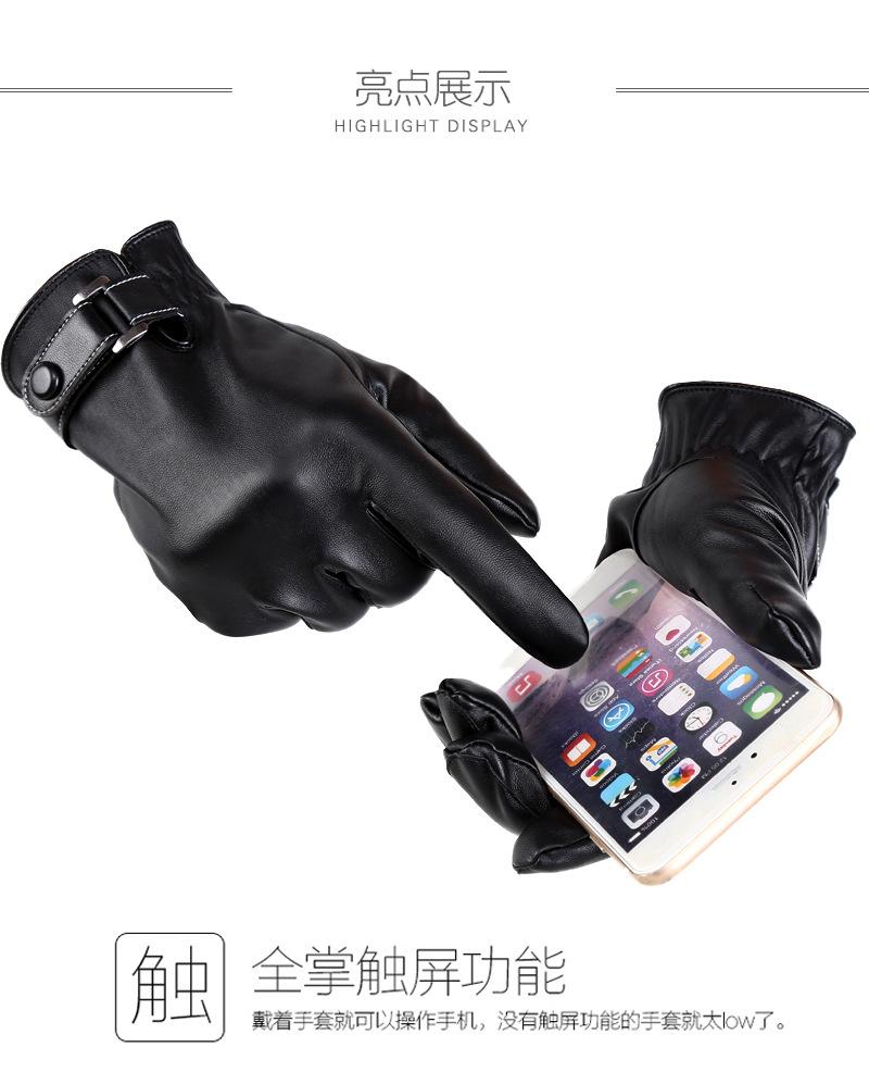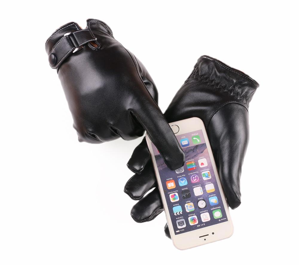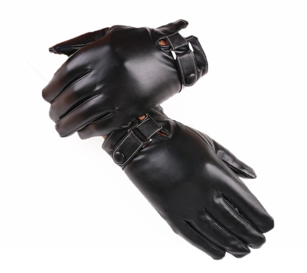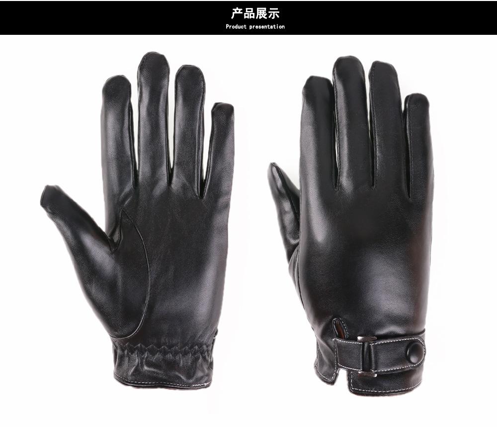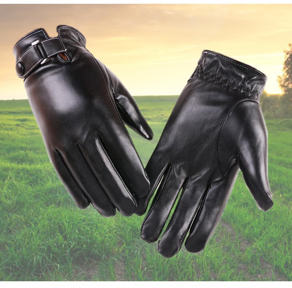 Guantes de PU para hombre, de otoño e invierno, para exteriores, con pantalla táctil, de terciopelo grueso, resistentes al viento y al frío, cálidos y de cuero.