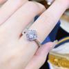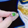 Anillo abierto de imitación de olivino natural con anillo cuadrado para mujer, transmisión en vivo de TikTok, chapado en platino, HW, al por mayor