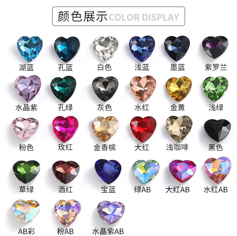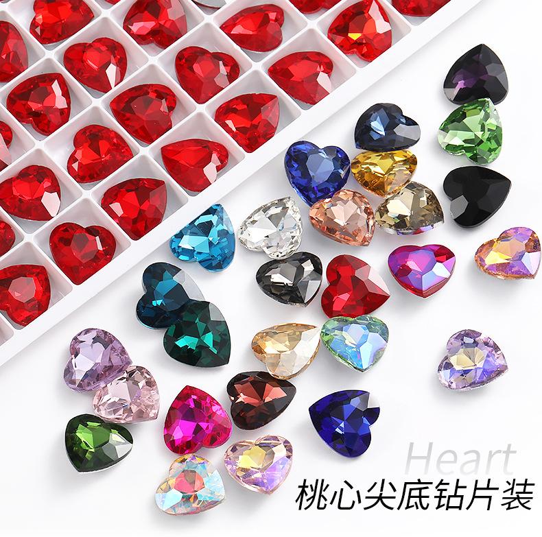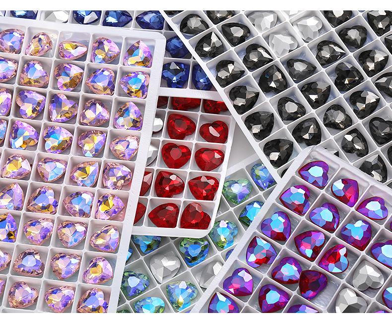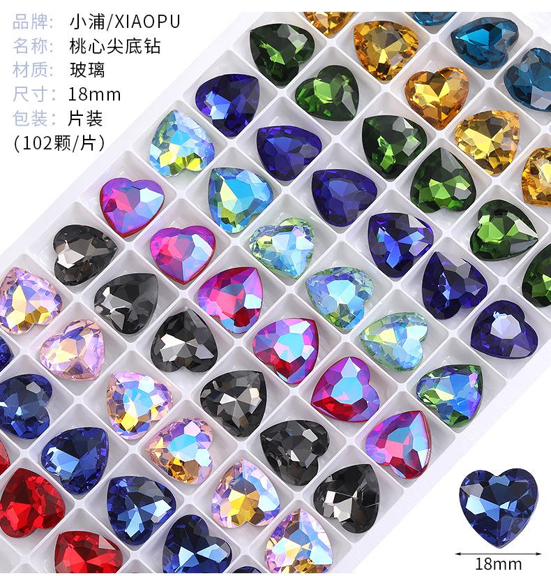 Venta al por mayor transfronteriza Piezas de diamante de 18 mm con forma de corazón y fondo puntiagudo Exquisita joyería para vestido Accesorios hechos a mano para funda de teléfono móvil Diamantes de imitación de cristal