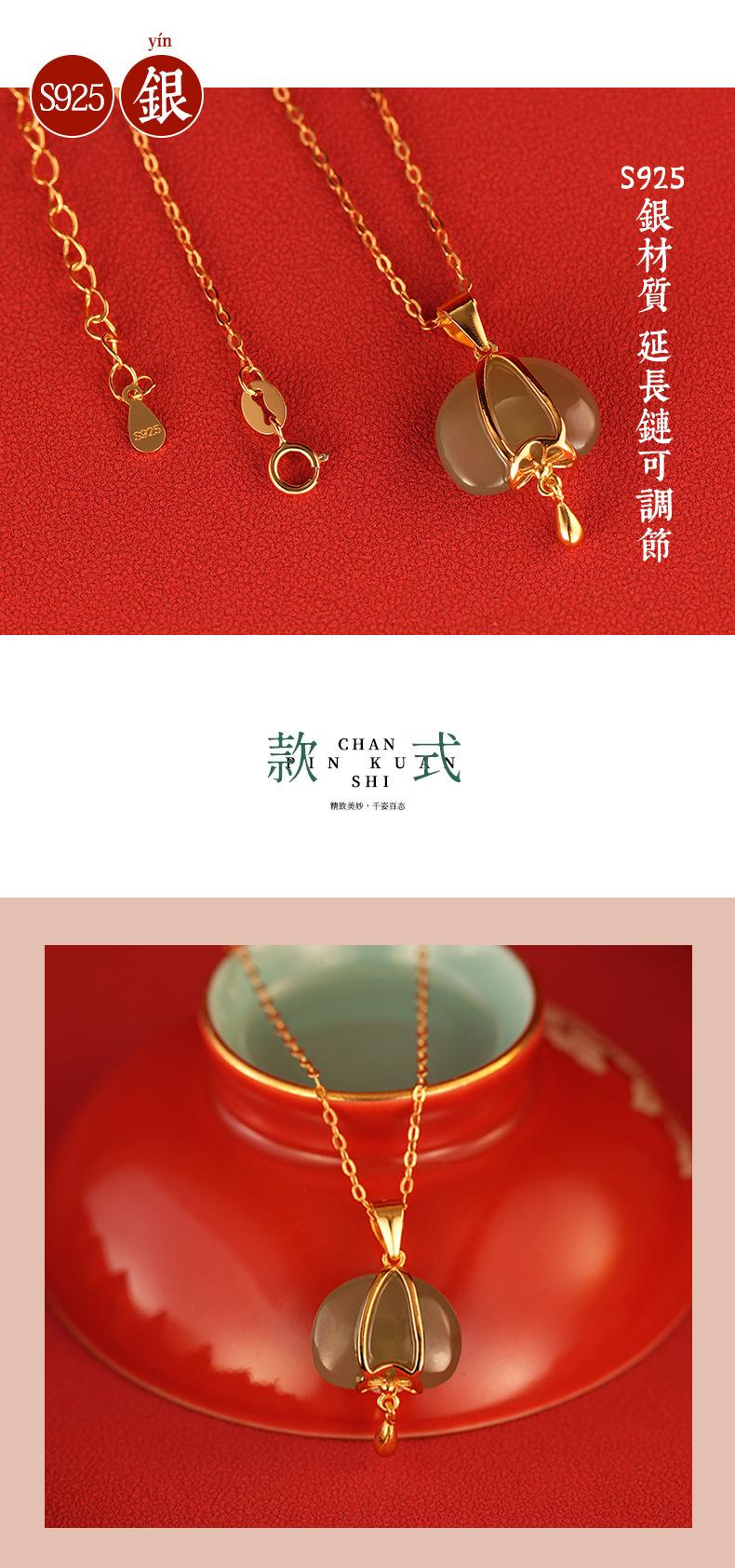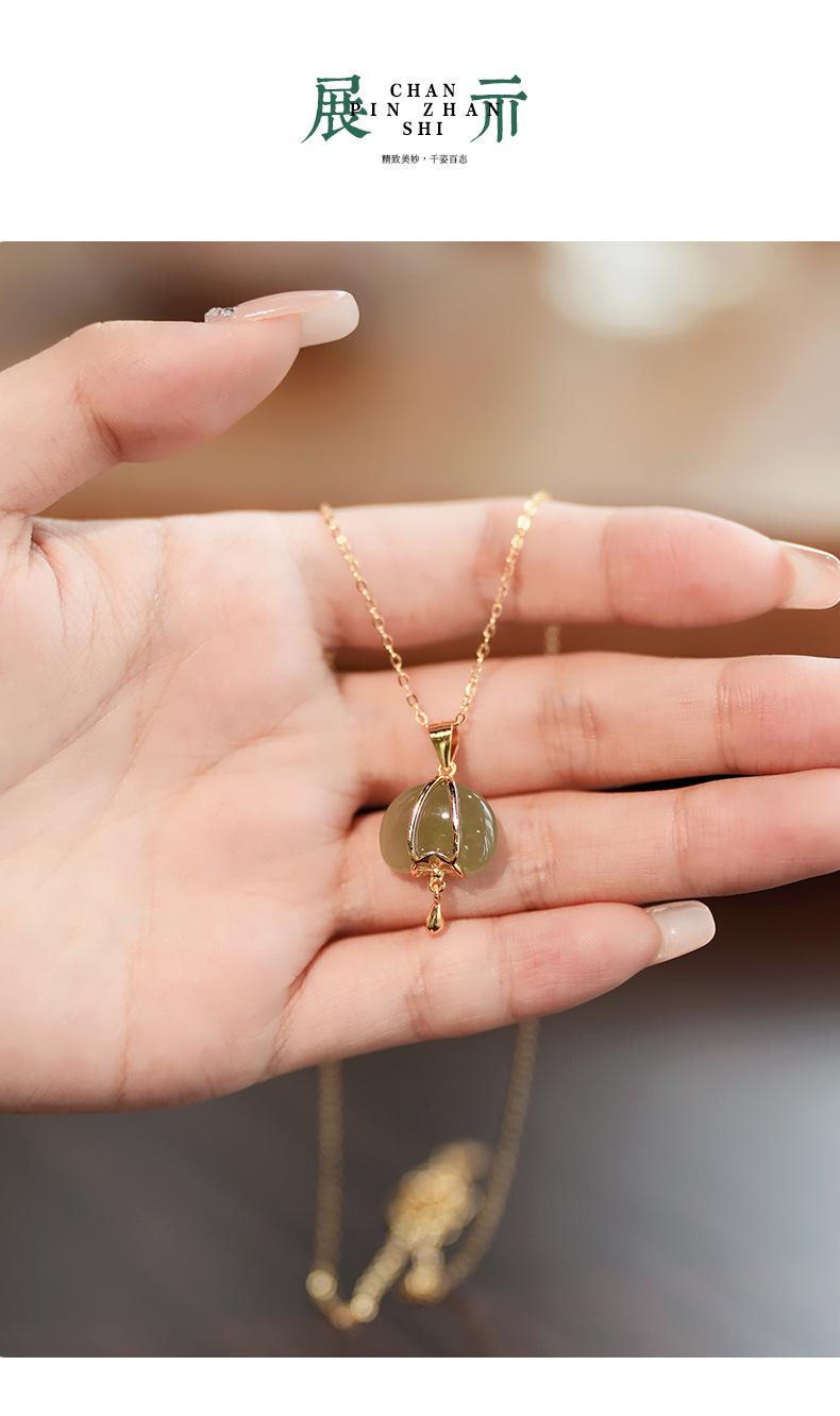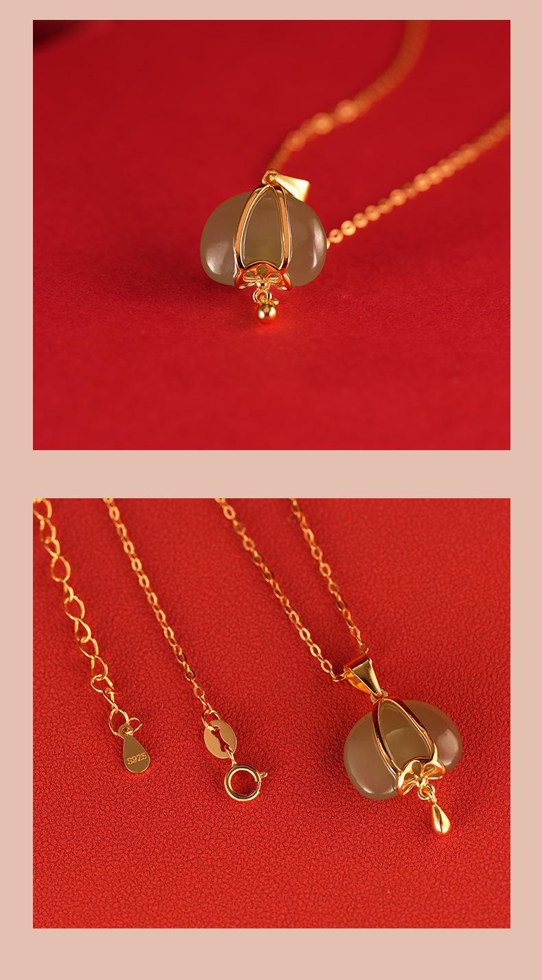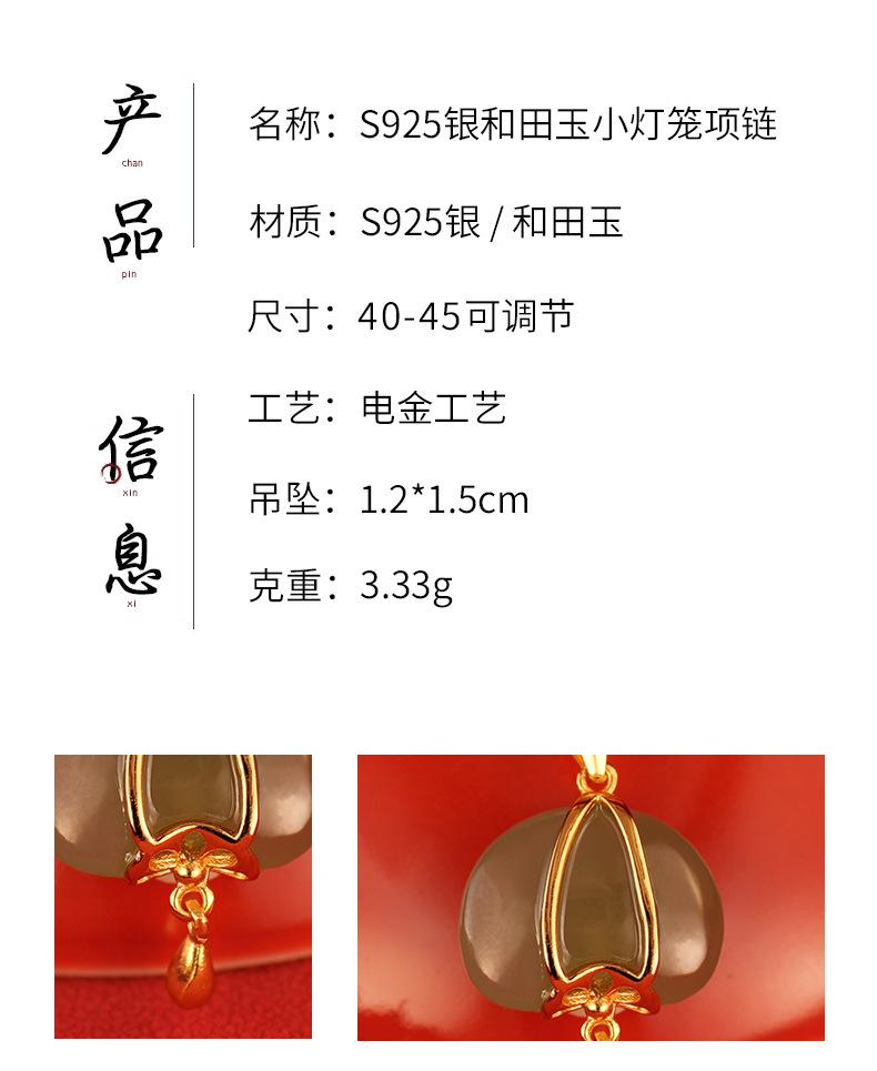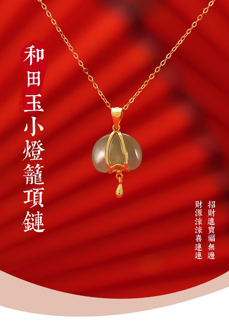 Collar de plata de ley s925 con diseño de jade hetiano y linterna pequeña para mujer, estilo nacional chino, cadena de clavícula, regalo Tanabata, 2023