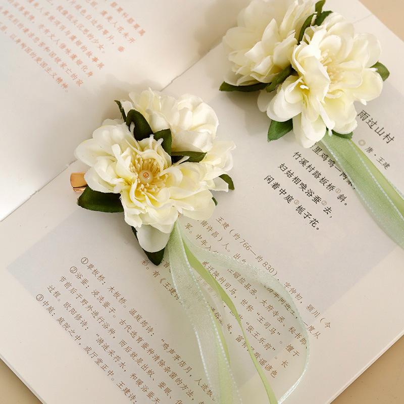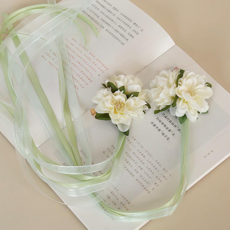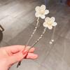 Horquilla de Flor de Seda de Camelia Antiguo Tocado Hanfu Ropa Antigua Flor Pinza Lateral Borla Primavera y Verano Clip de Flor para la Cabeza