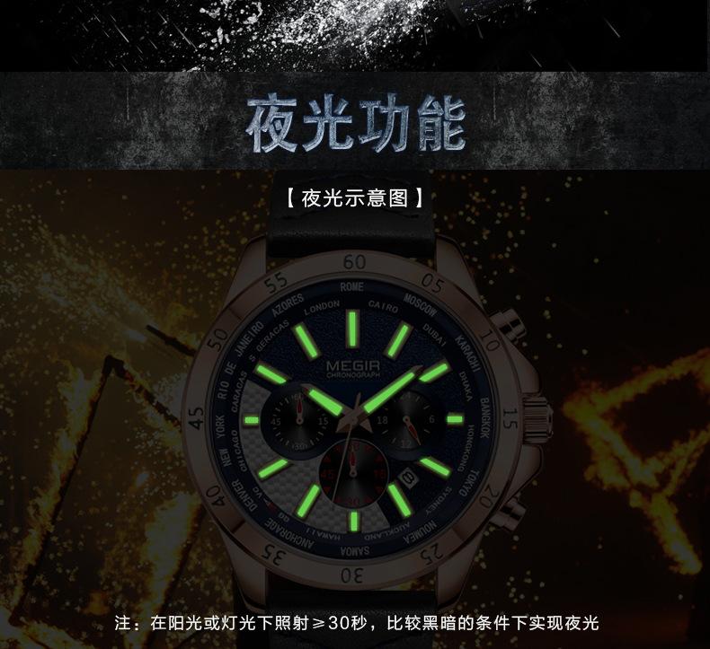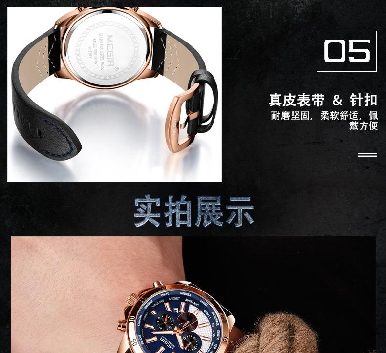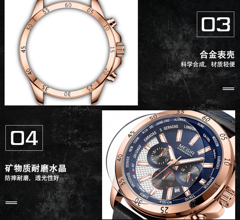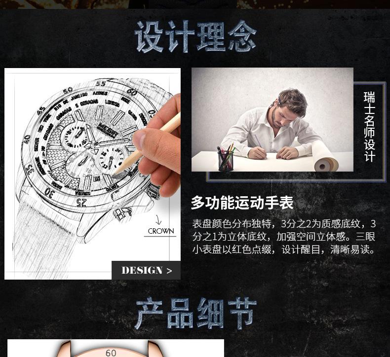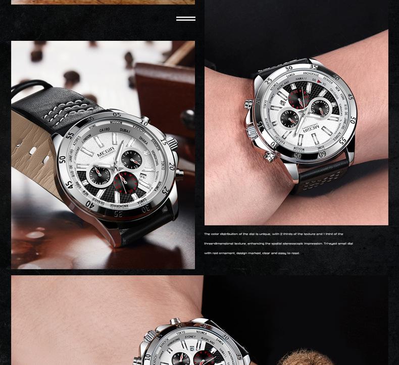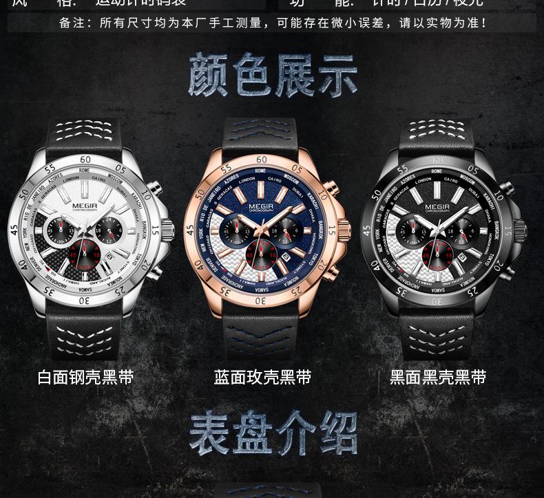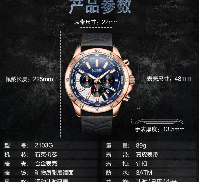 [Producto nuevo de marzo Reloj deportivo para hombre de moda Meiger de cuero genuino con esfera grande de tres ojos verdaderos] Modelo: 2103G. La esfera grande de 48 mm resalta el estilo moderno y dominante. La distribución del color de la esfera es única, 2/3 tienen sombreado texturizado y 1/3 tienen sombreado tridimensional, lo que realza el sentido tridimensional del espacio. Hay tres colores para elegir, con muchos estilos, muchas funciones y buena calidad. ¡Recomendado para ti! ~