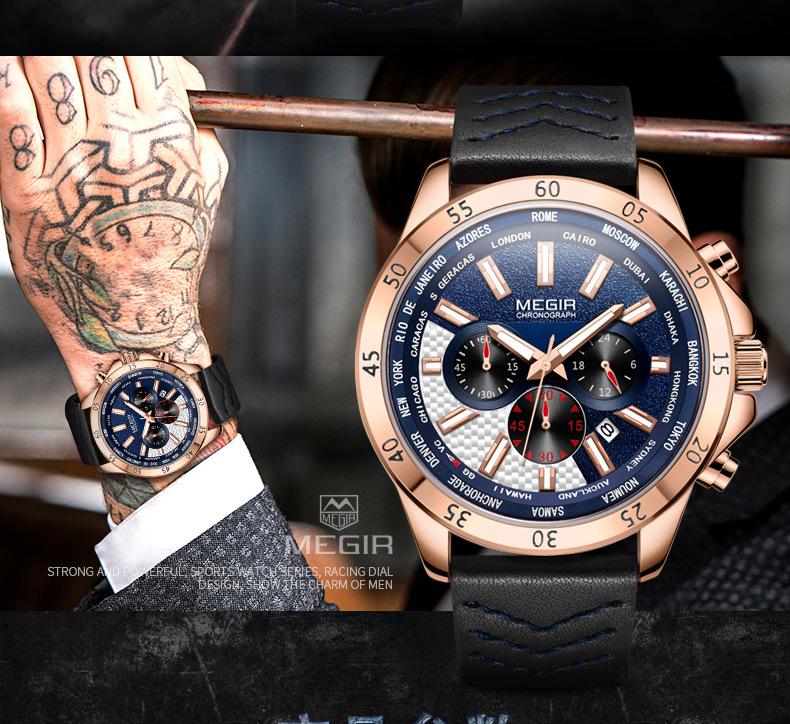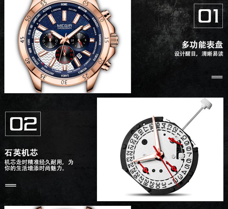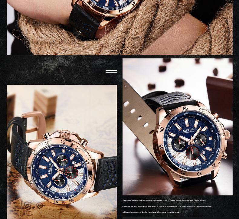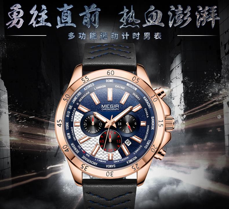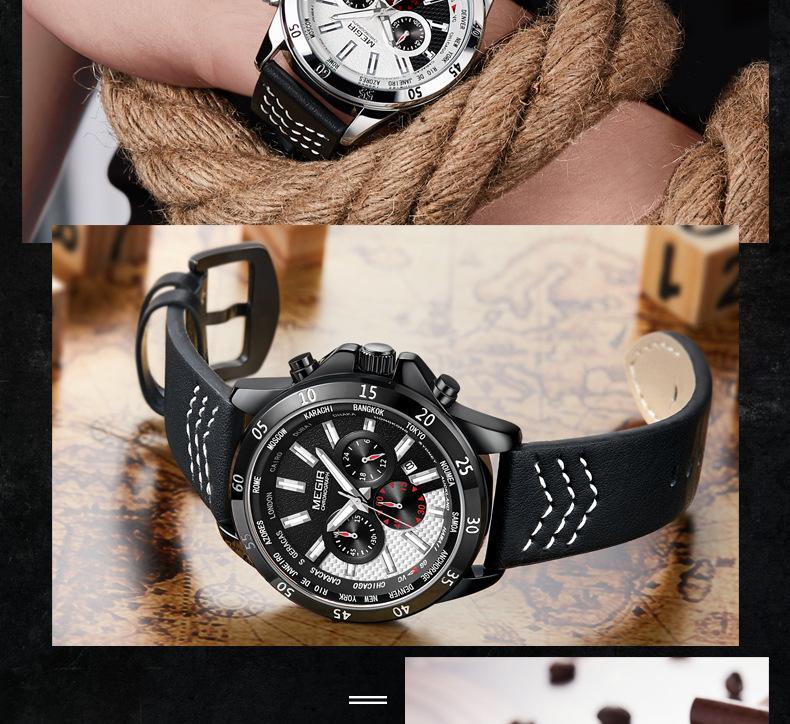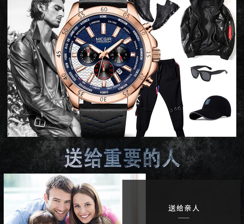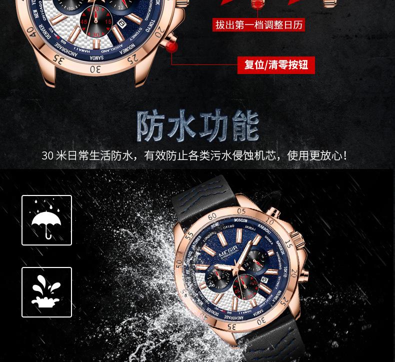 [Producto nuevo de marzo Reloj deportivo para hombre de moda Meiger de cuero genuino con esfera grande de tres ojos verdaderos] Modelo: 2103G. La esfera grande de 48 mm resalta el estilo moderno y dominante. La distribución del color de la esfera es única, 2/3 tienen sombreado texturizado y 1/3 tienen sombreado tridimensional, lo que realza el sentido tridimensional del espacio. Hay tres colores para elegir, con muchos estilos, muchas funciones y buena calidad. ¡Recomendado para ti! ~