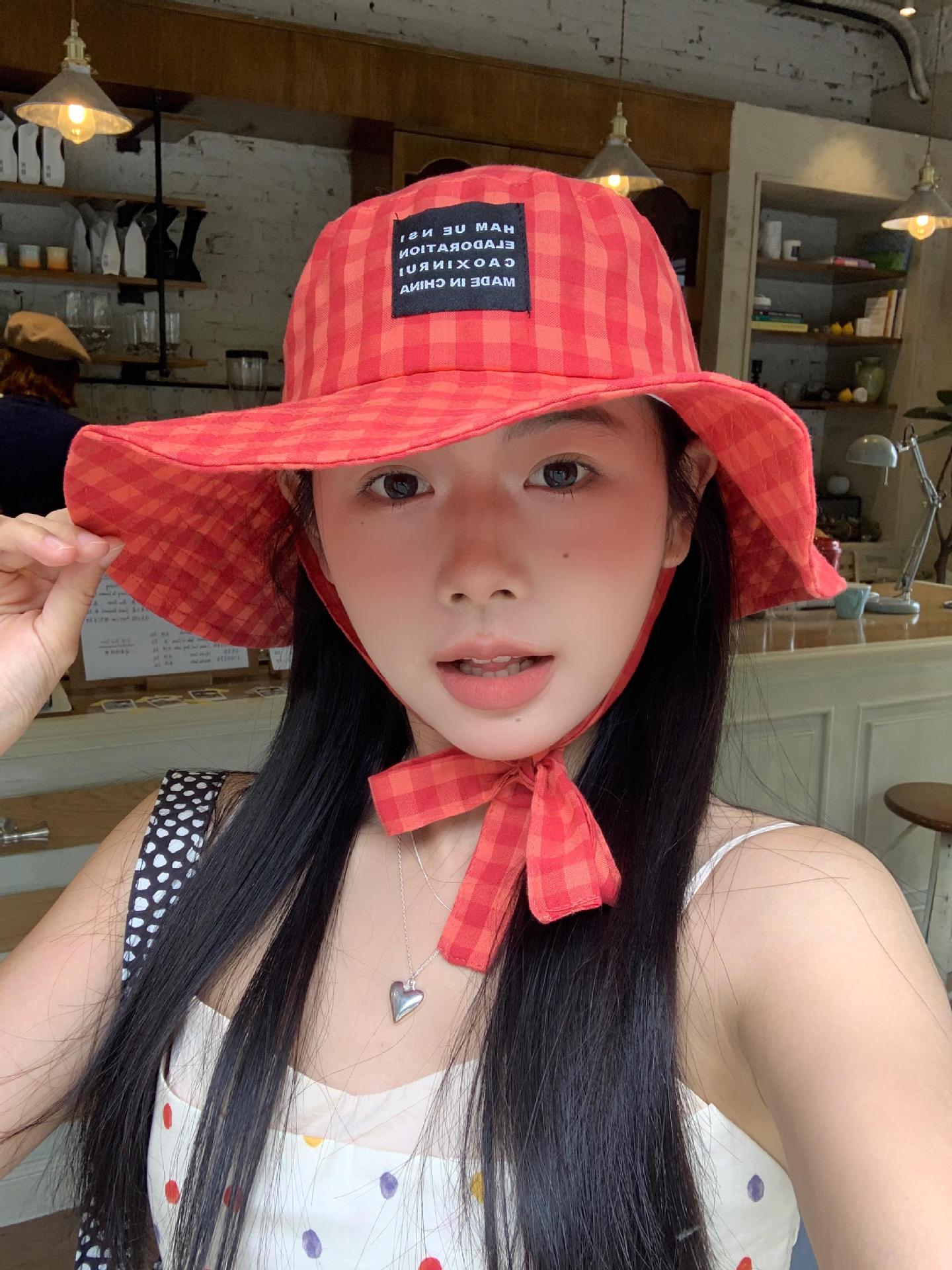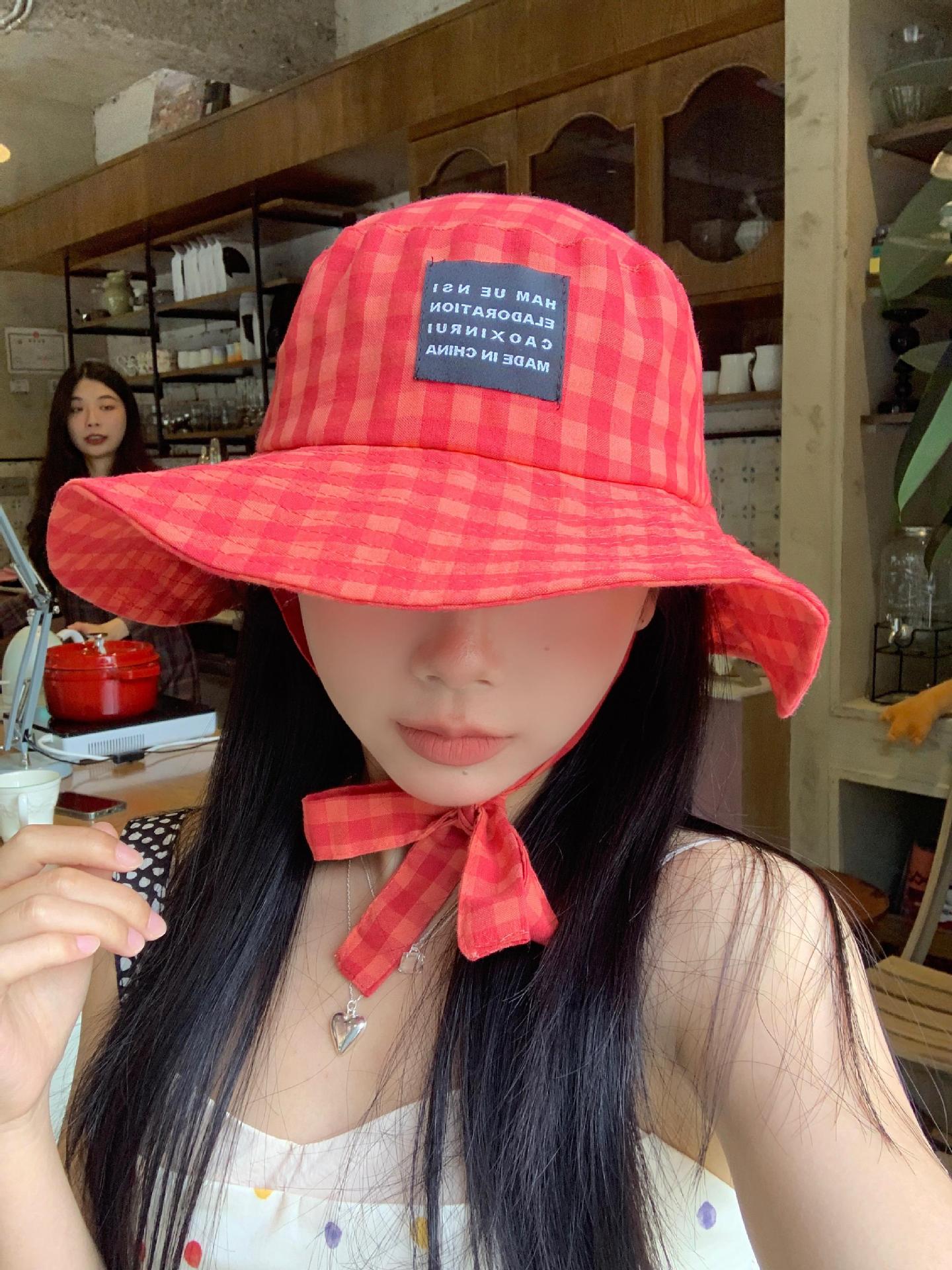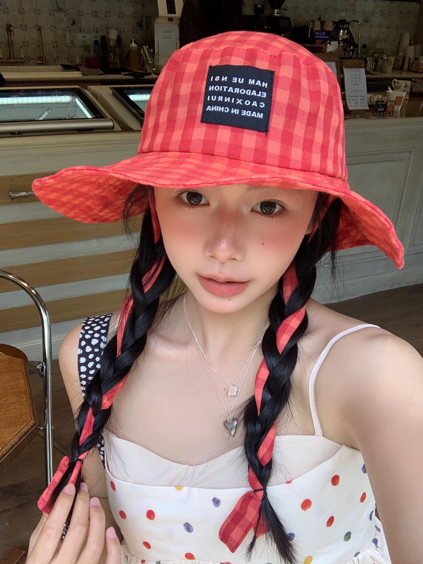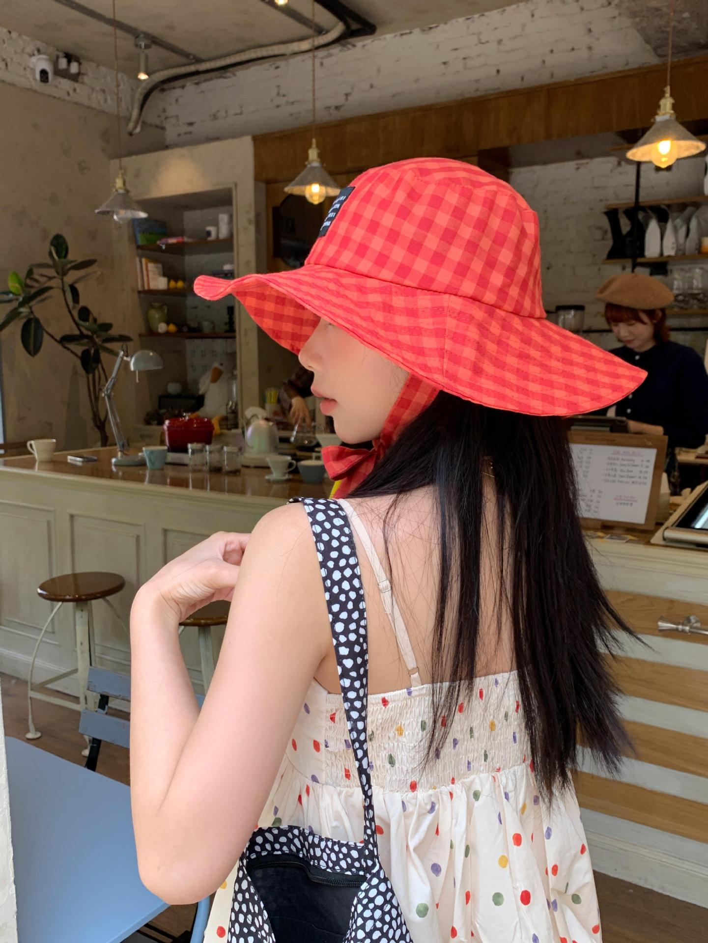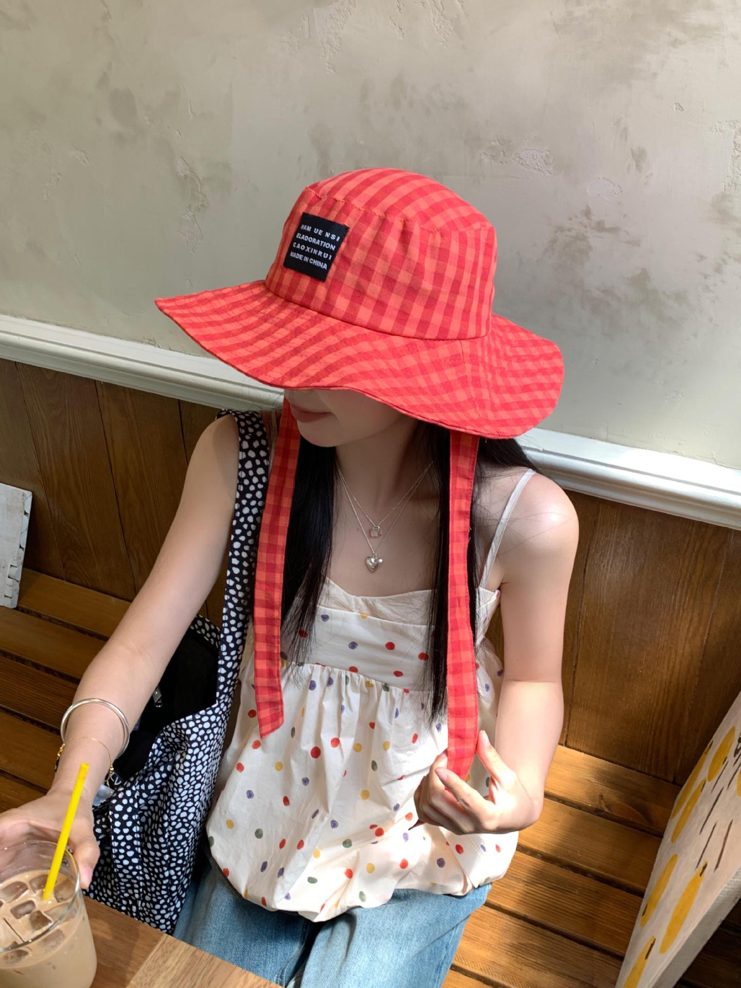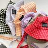 Sombrero de Pescador a Cuadros, Sombrero de Cubo de Verano con Lazo para Niña Juguetona, Sombrero Dulce Transpirable con Protección Solar Estilo Coreano