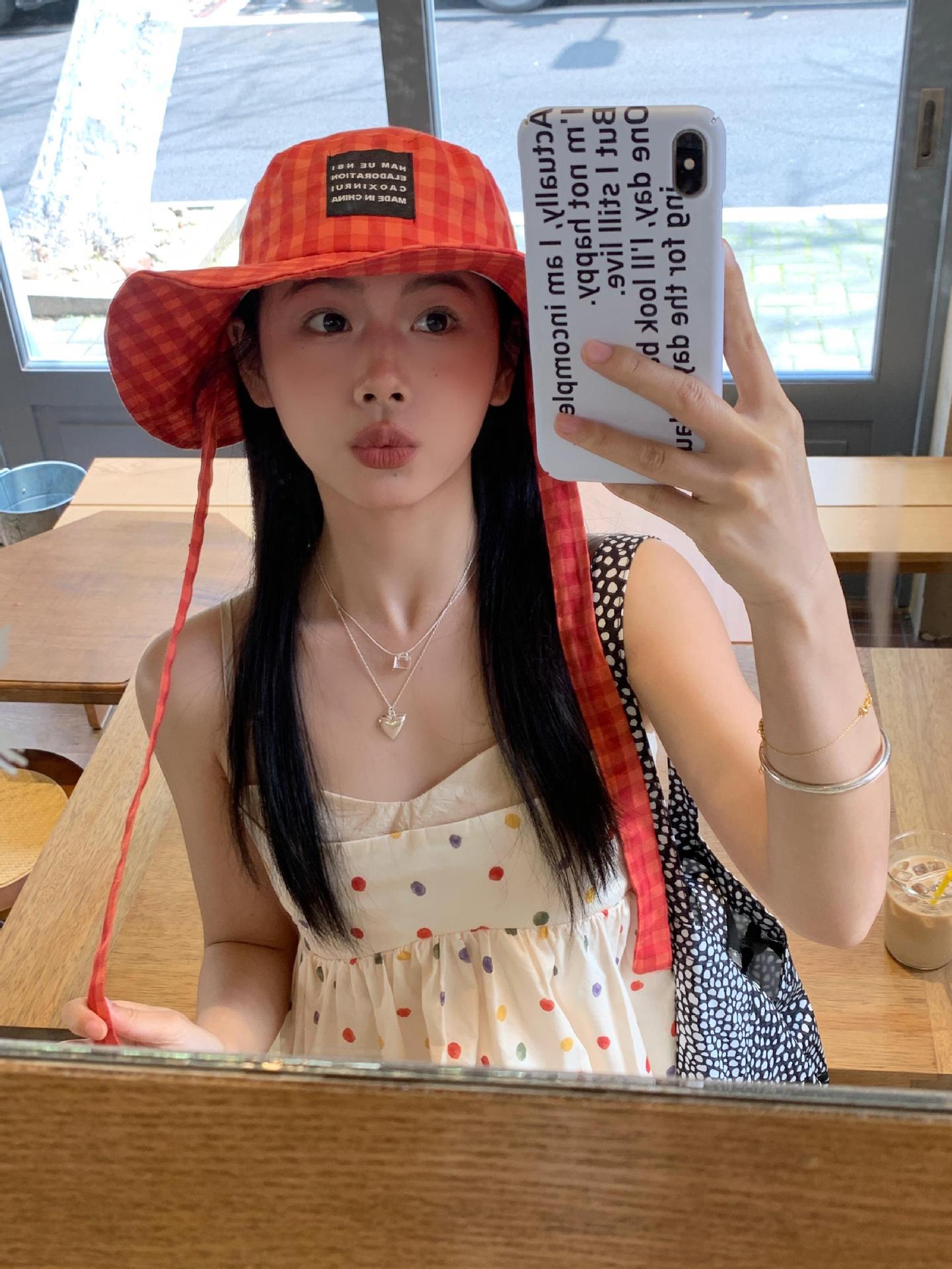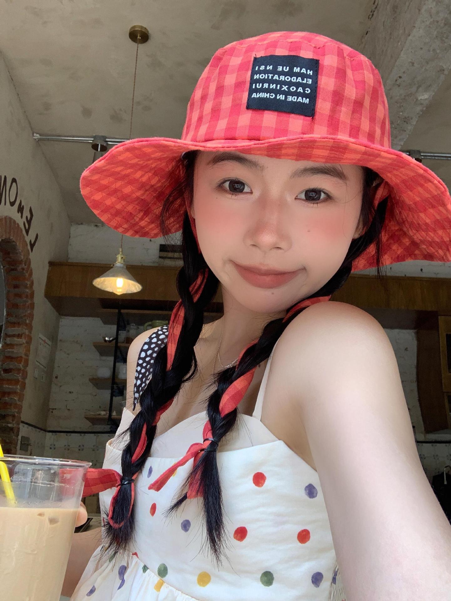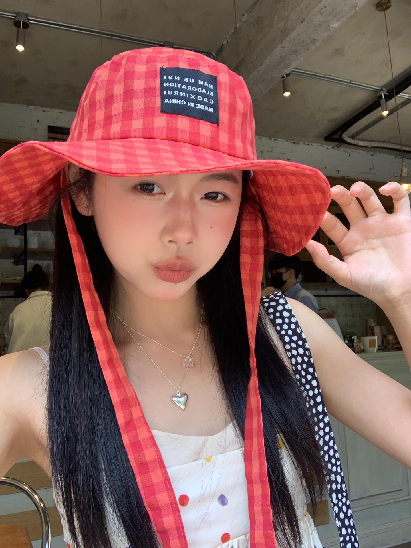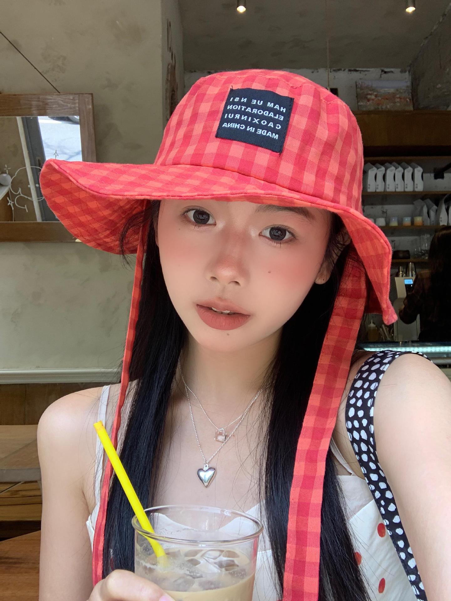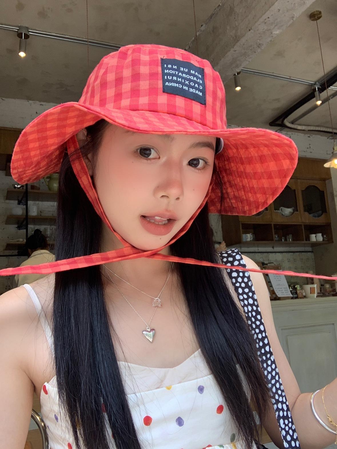 Sombrero de Pescador a Cuadros, Sombrero de Cubo de Verano con Lazo para Niña Juguetona, Sombrero Dulce Transpirable con Protección Solar Estilo Coreano