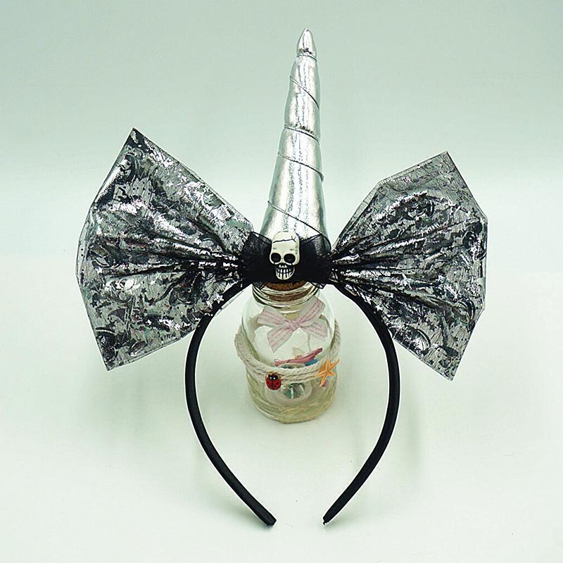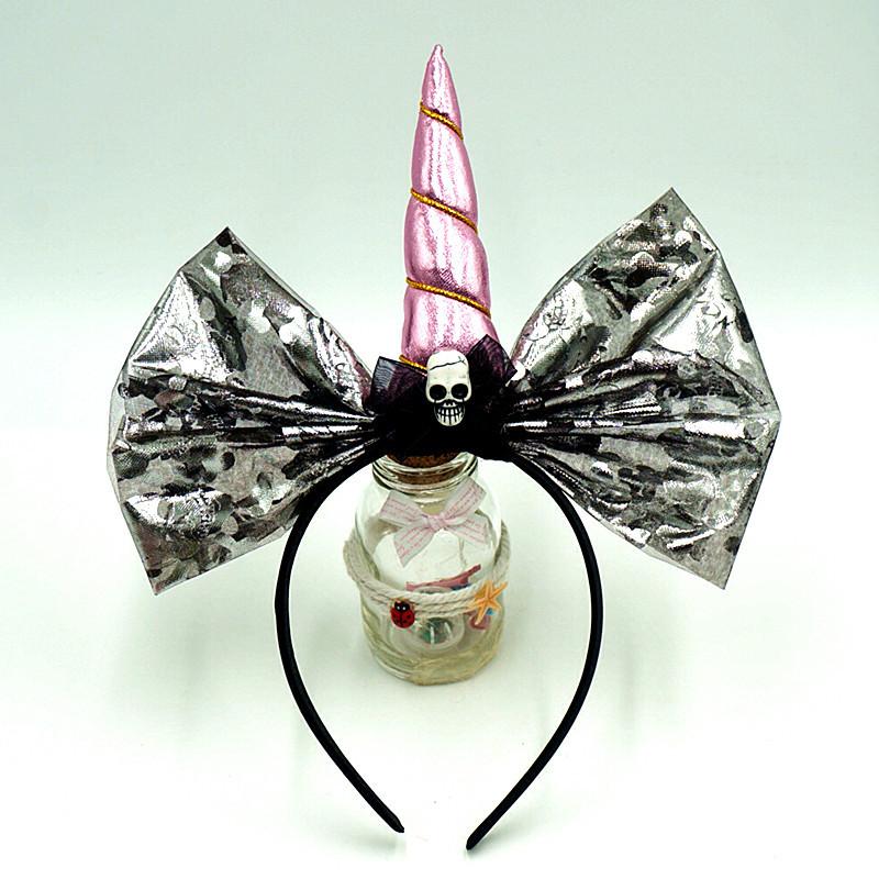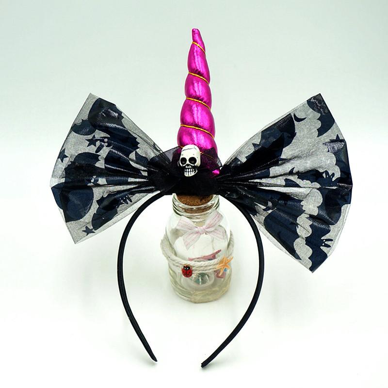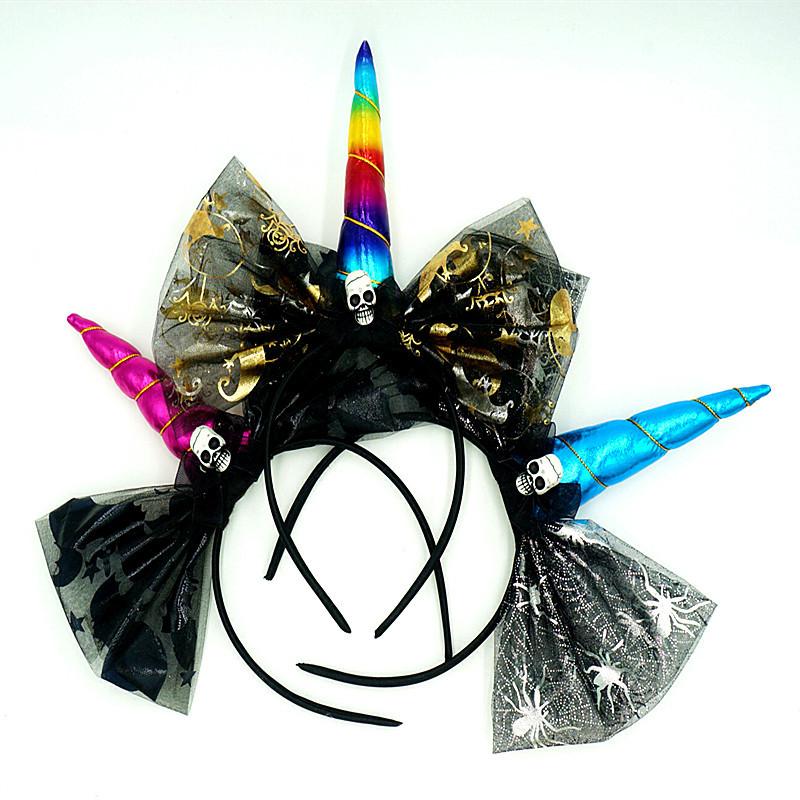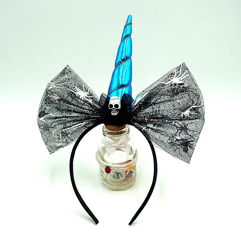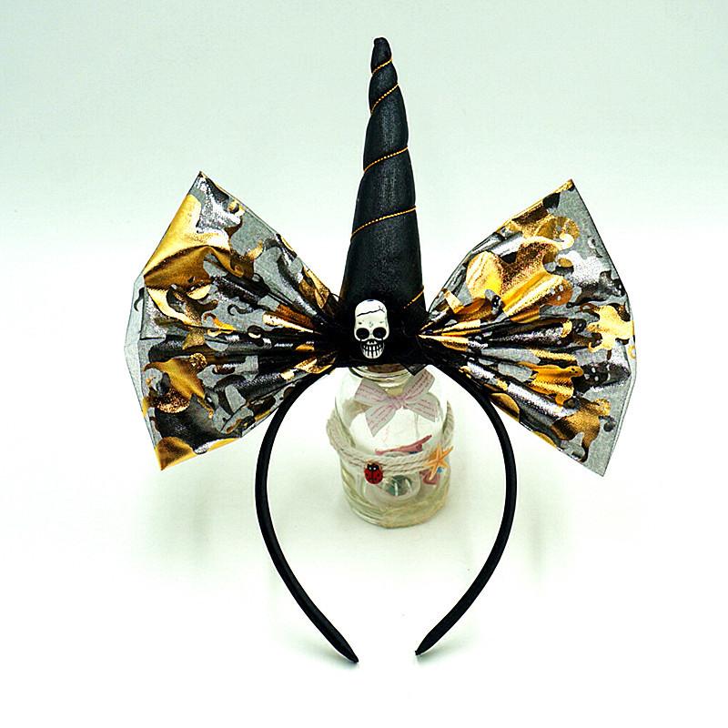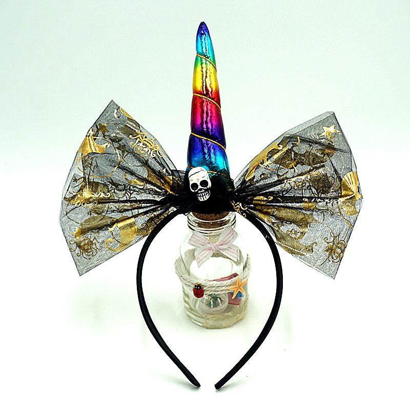 Diadema de unicornio con lazo grande de Halloween. Altura: 27 cm, ancho 23 cm, peso: 27 gramos