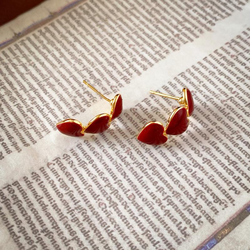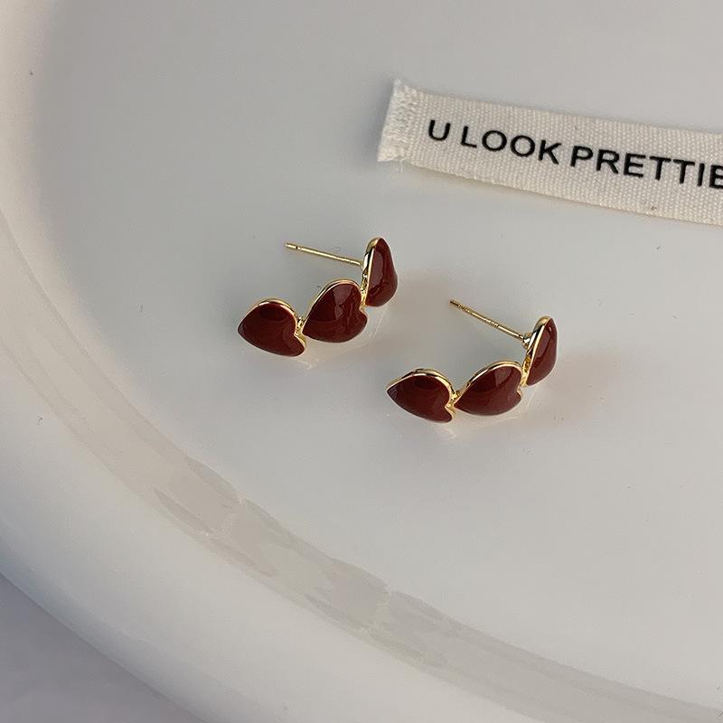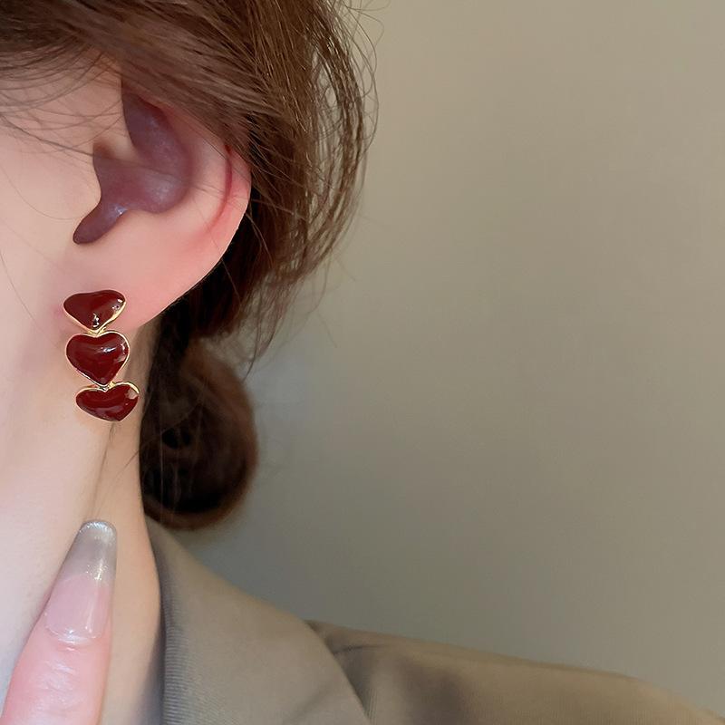 Nuevos pendientes de estilo chino retro con gotas de aceite rojo, sencillos y combinables para ir al trabajo.