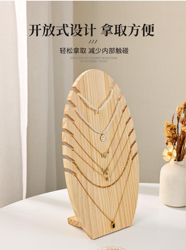 Estante de exhibición de joyería de madera maciza con tablero de llama para pulseras y collares, estante para exhibición de joyas, estante para exhibición de joyas