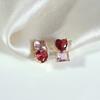 Anillo abierto esférico de circonita roja vino retro francés, anillo ligero de lujo de nicho de alta gama, anillo ajustable para el dedo índice |