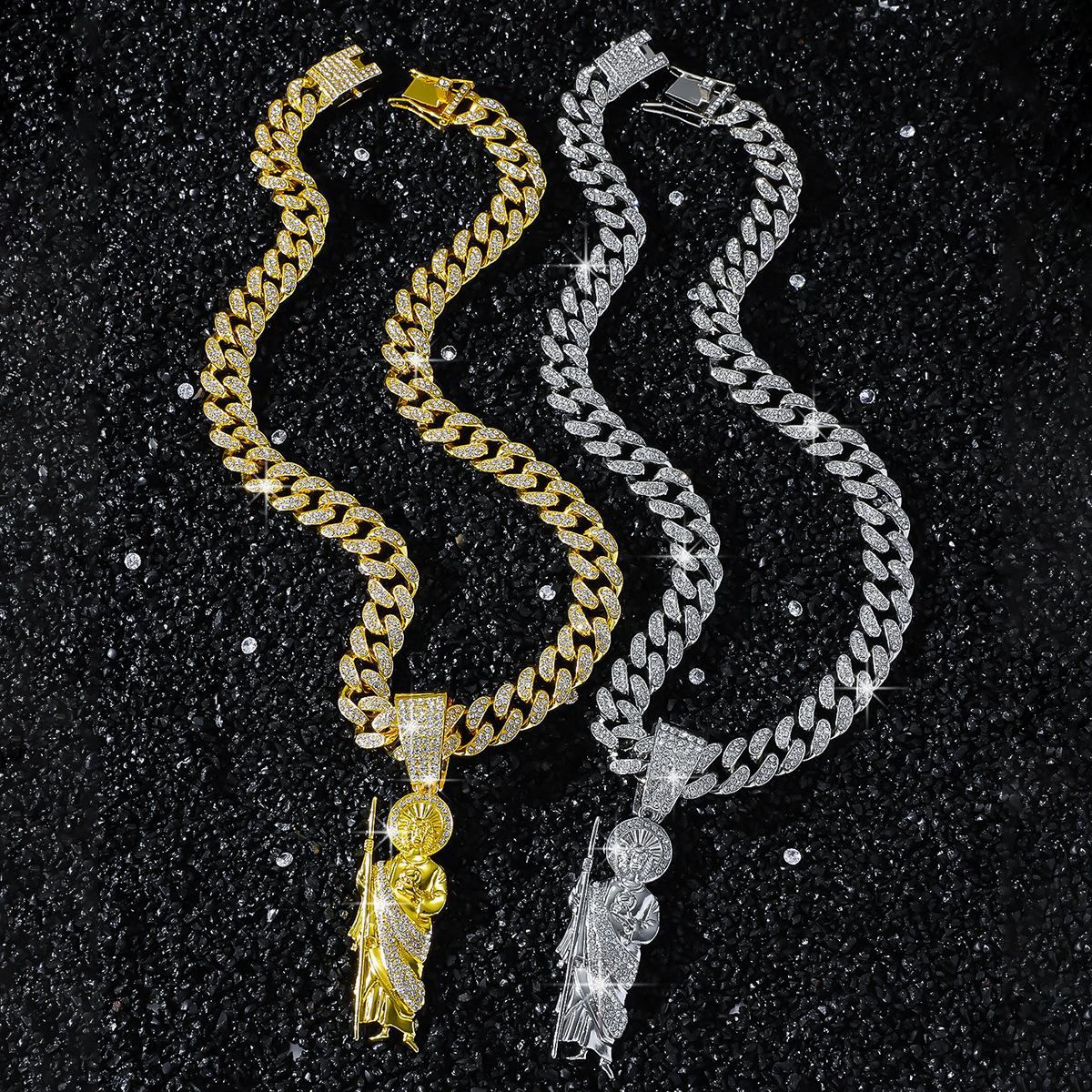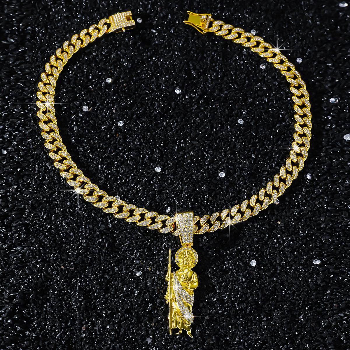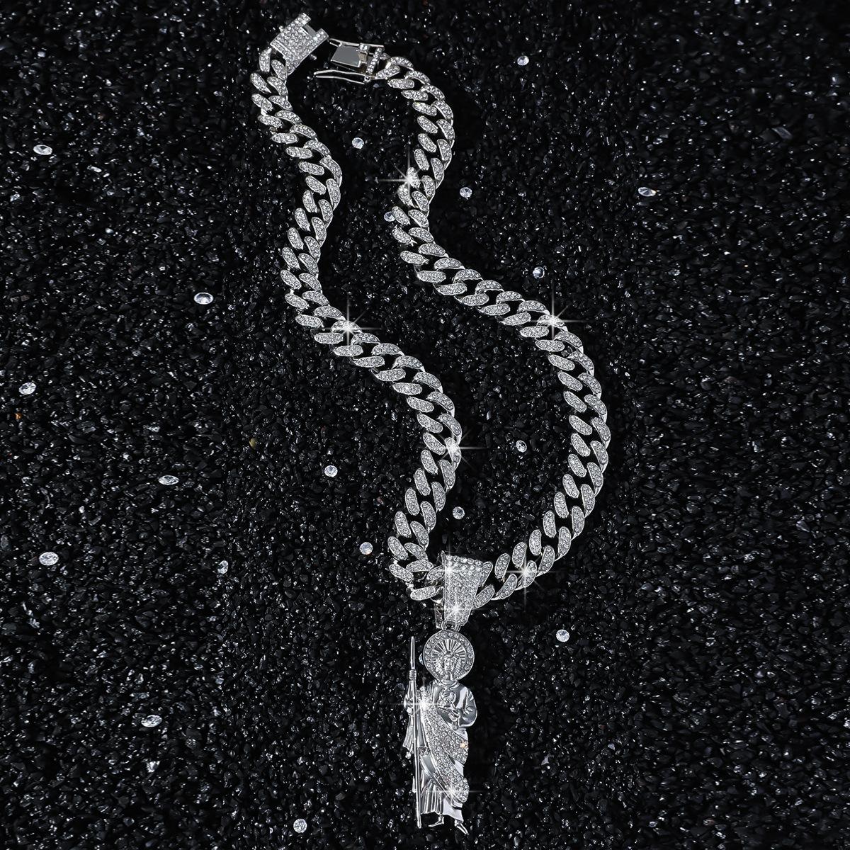 Collar de cadena cubana con colgante de 1000 puntas de diamante completo para hombre, estilo hip-hop europeo y americano, estilo dominante digital, accesorios de calle de moda