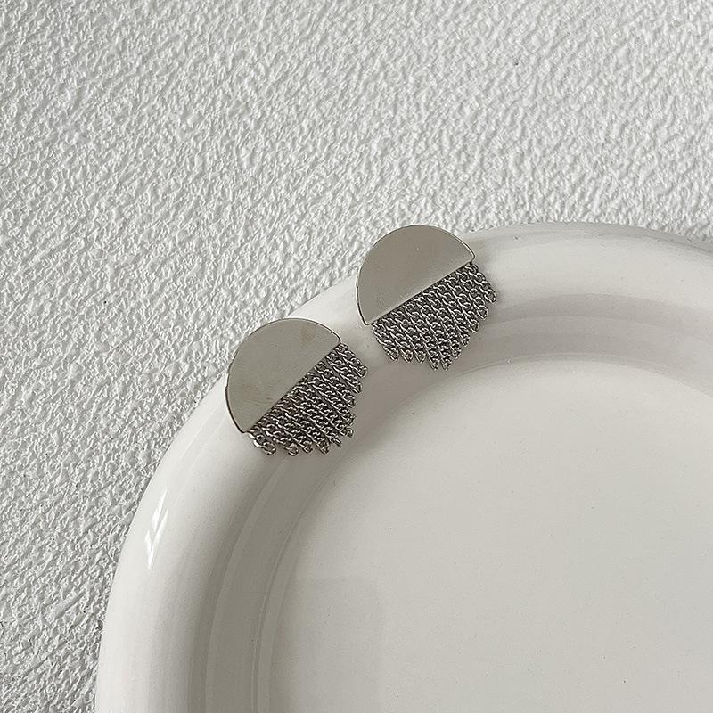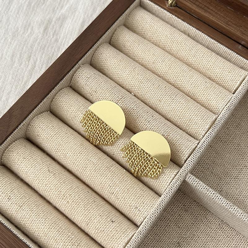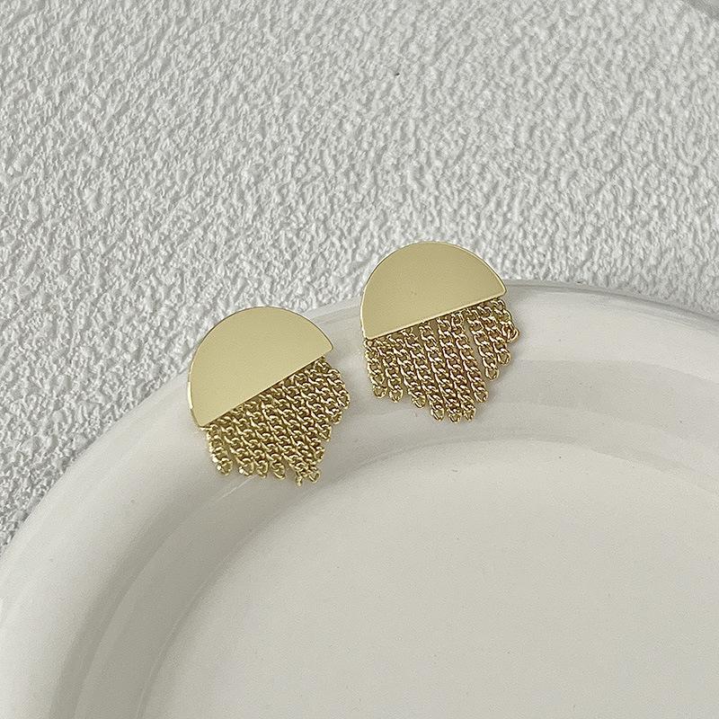 Pendientes de borlas de temperamento semicircular curvo de alta gama de estilo frío, pendientes de oro retro franceses europeos y americanos, pendientes de moda