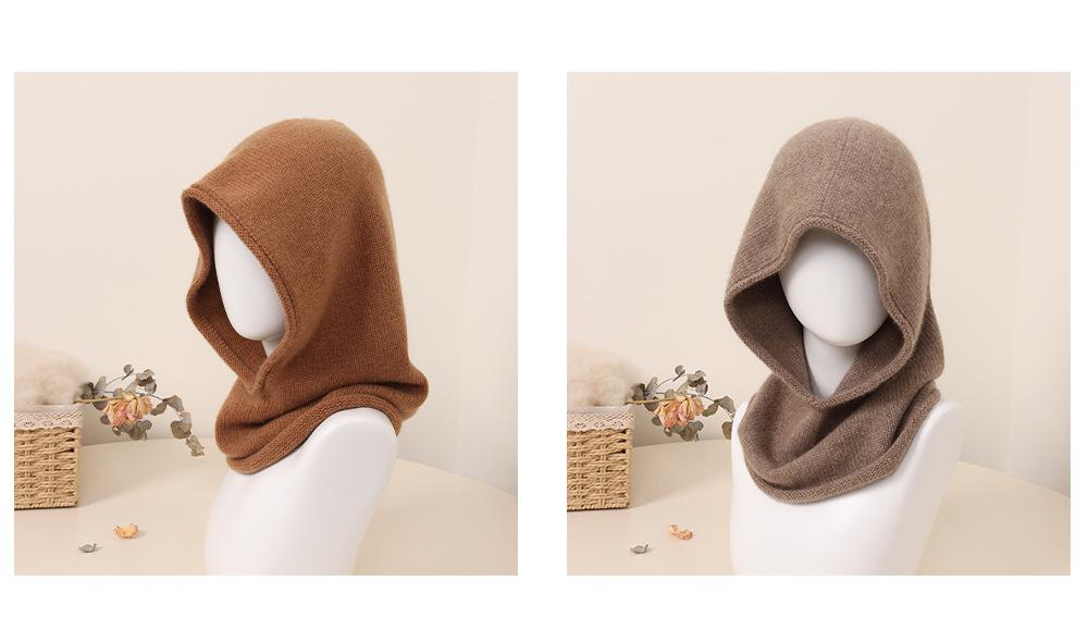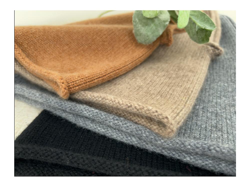 Gorro de cuello de cachemira pura con rizos de punto de color sólido cálido para hombre y mujer, nuevo para otoño e invierno