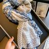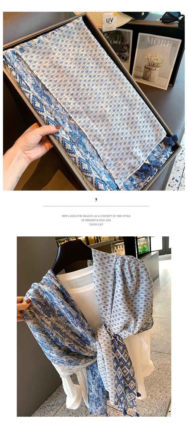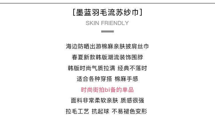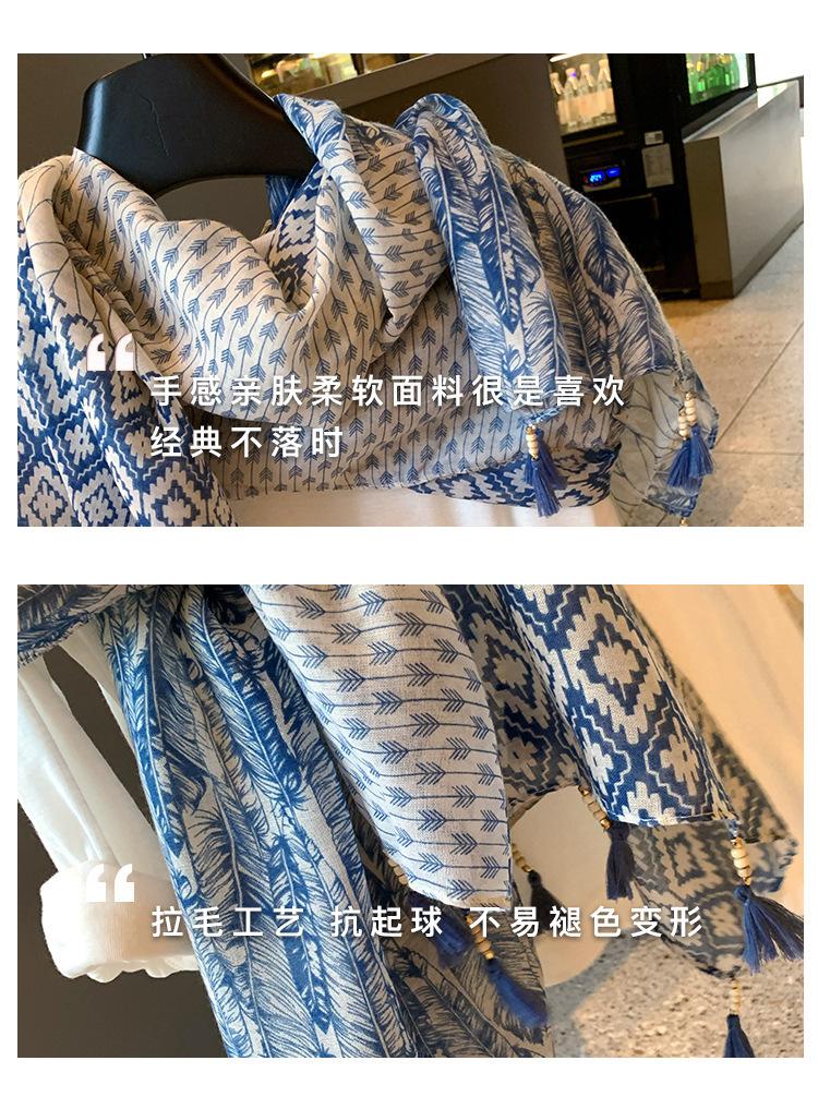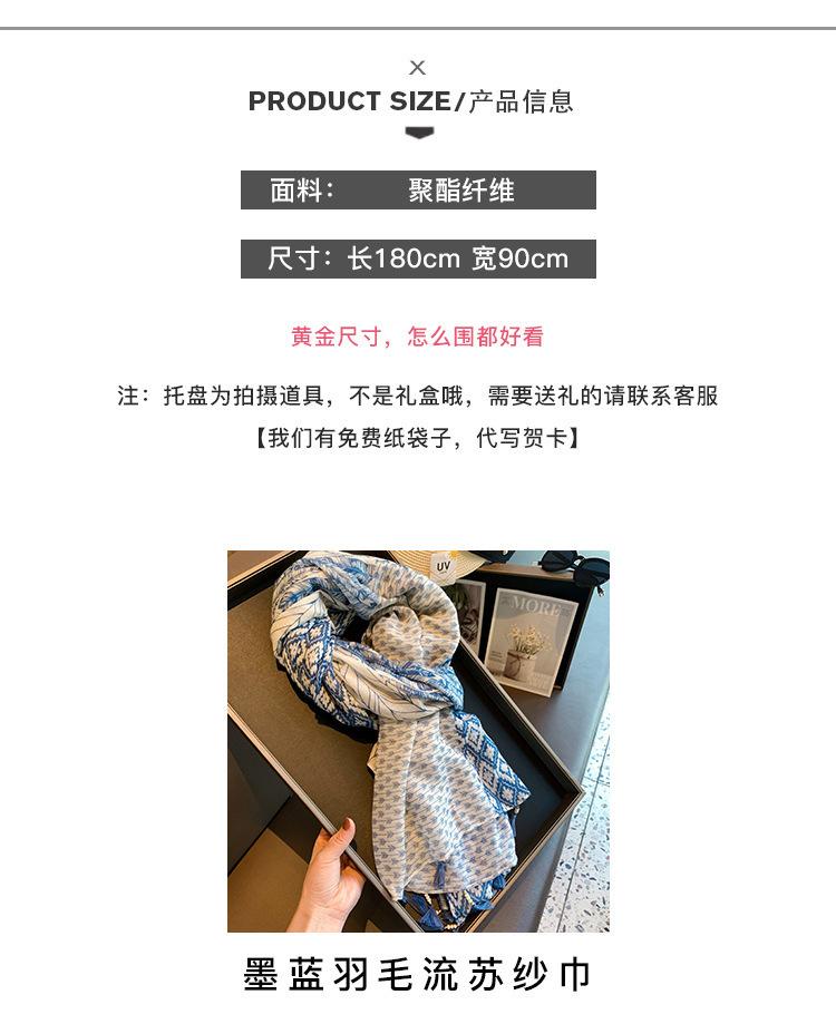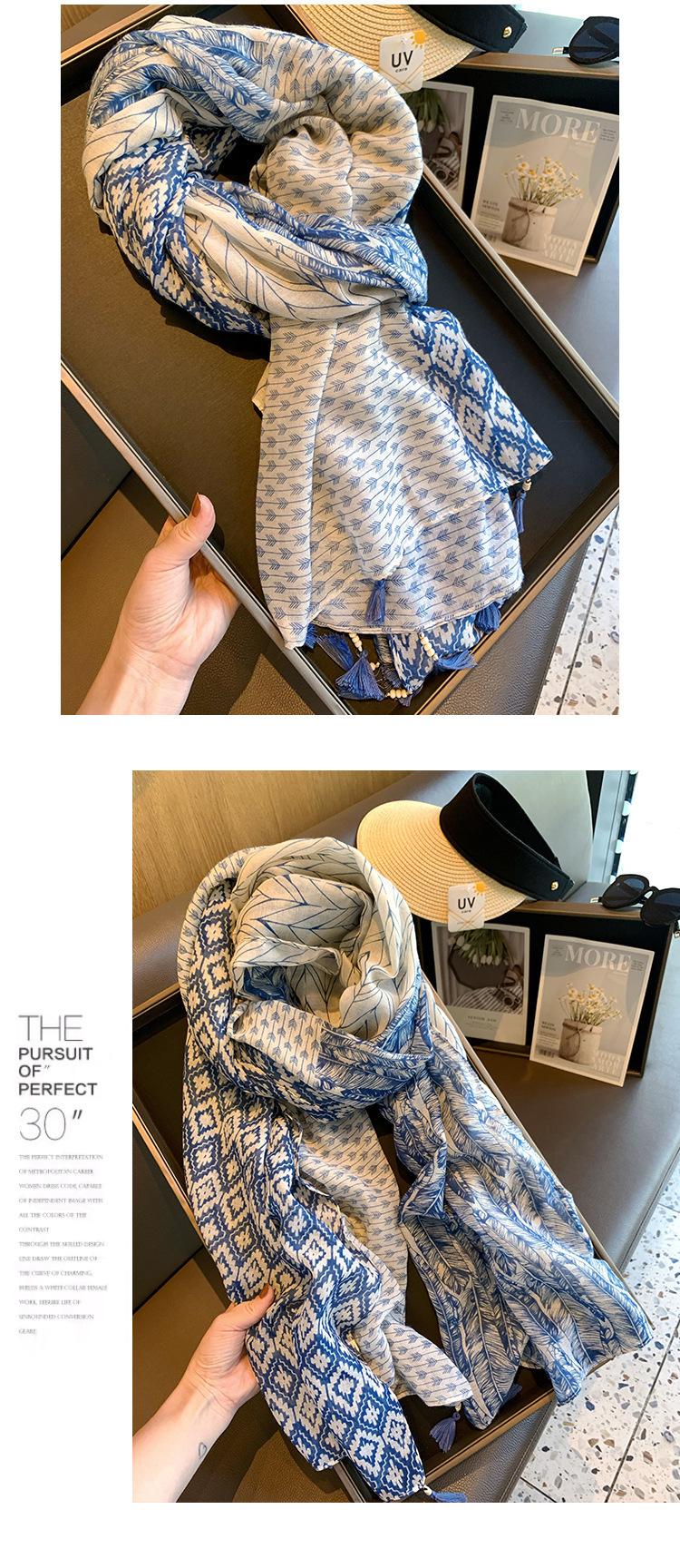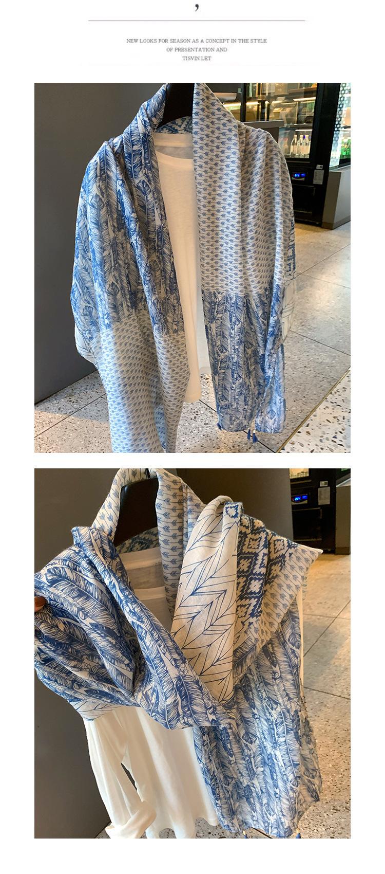 Bufanda de seda para mujer, estilo coreano de verano, fina, combinable, de algodón y lino, con borlas de plumas azules, toalla de playa, chal protector solar