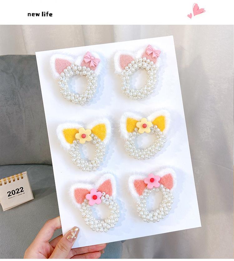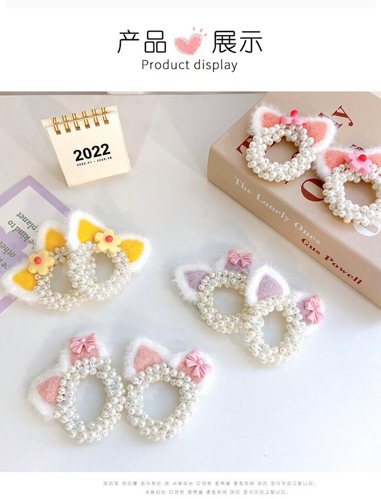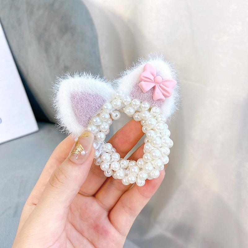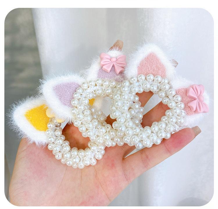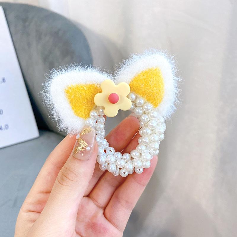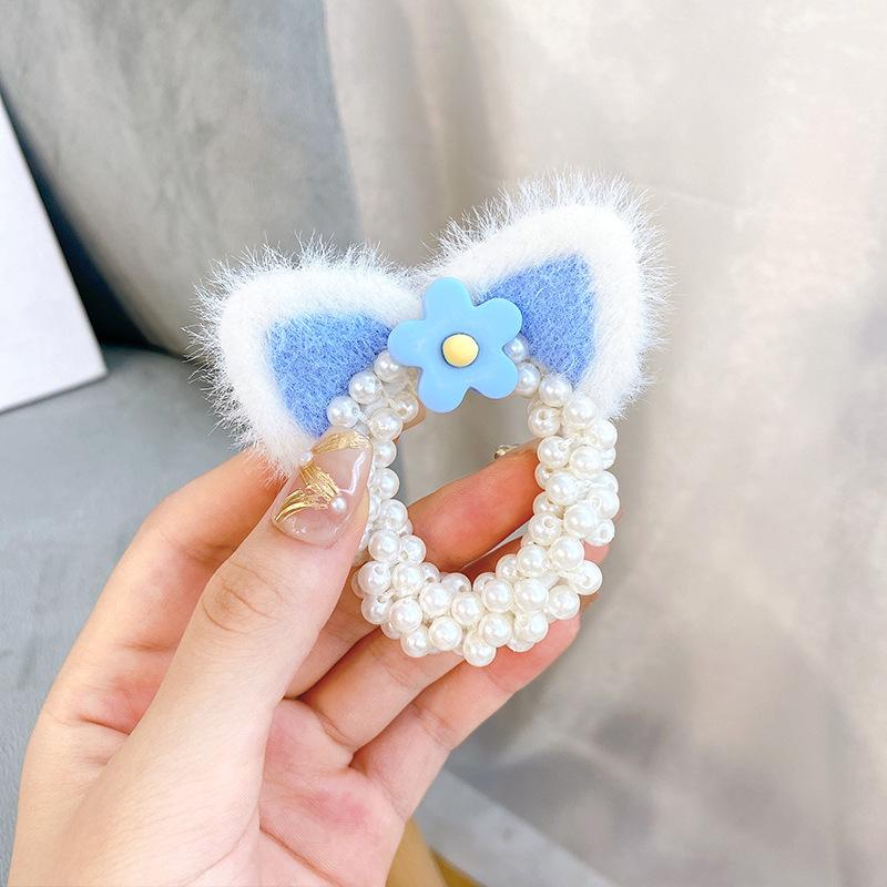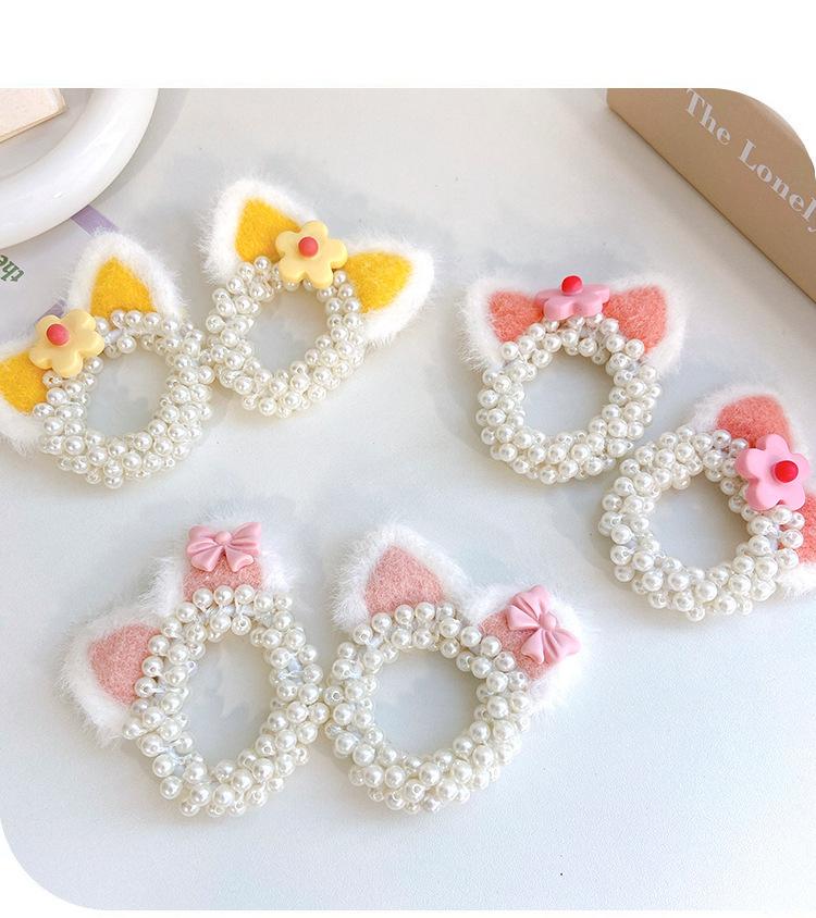 Pink Cat Ears Pearl Hair Ring, Yellow Cat Ears Pearl Hair Ring, Orange Pink Cat Ears Pearl Hair Rings, Blue Ca...