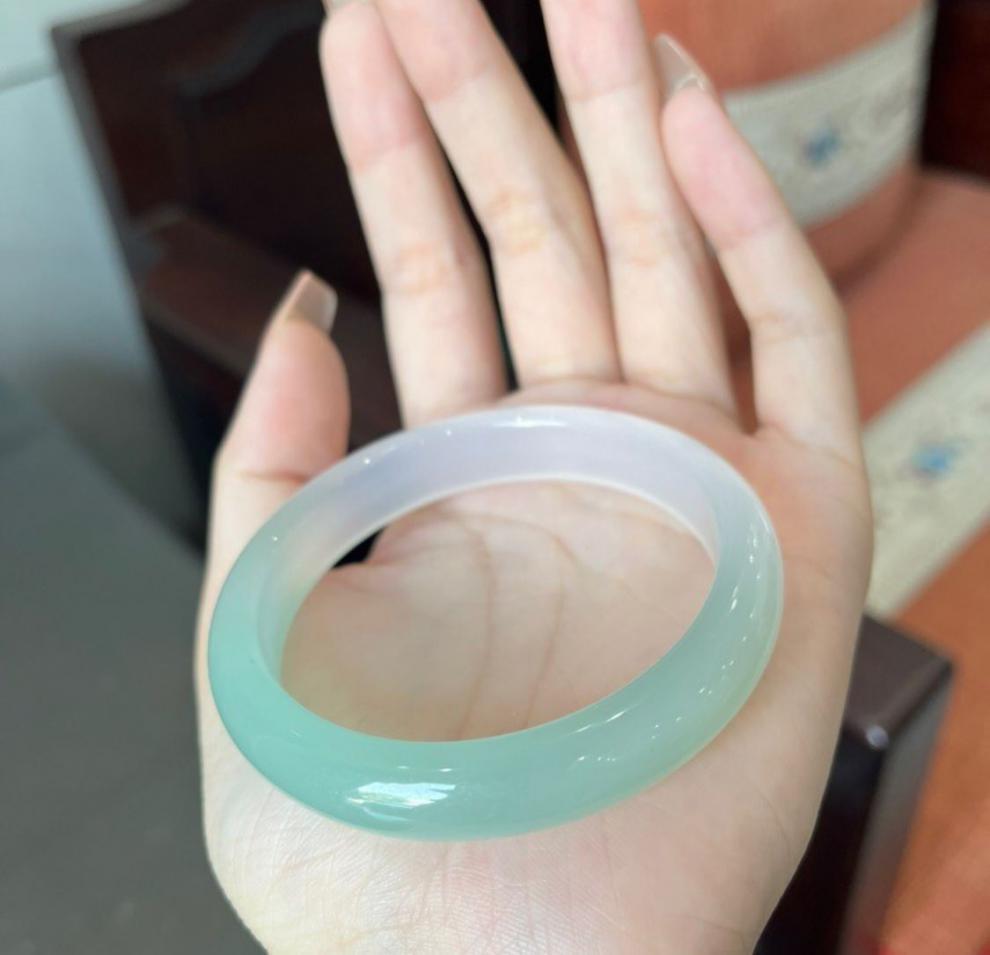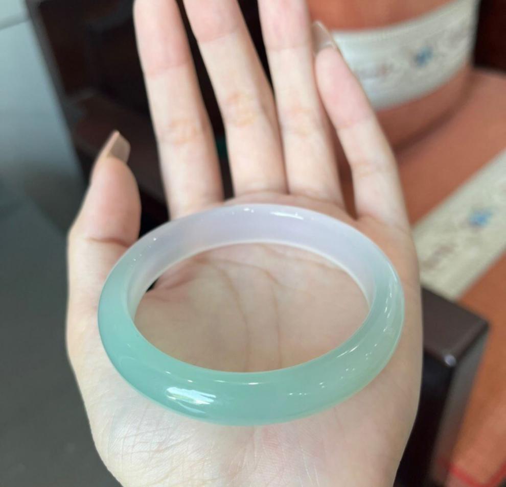 Pulsera de Ágata Calcedonia Natural con Jade Degradado, Pulsera de Jade de Círculo Completo, Regalo de Nuevo Estilo para Mejor Amiga o Novia