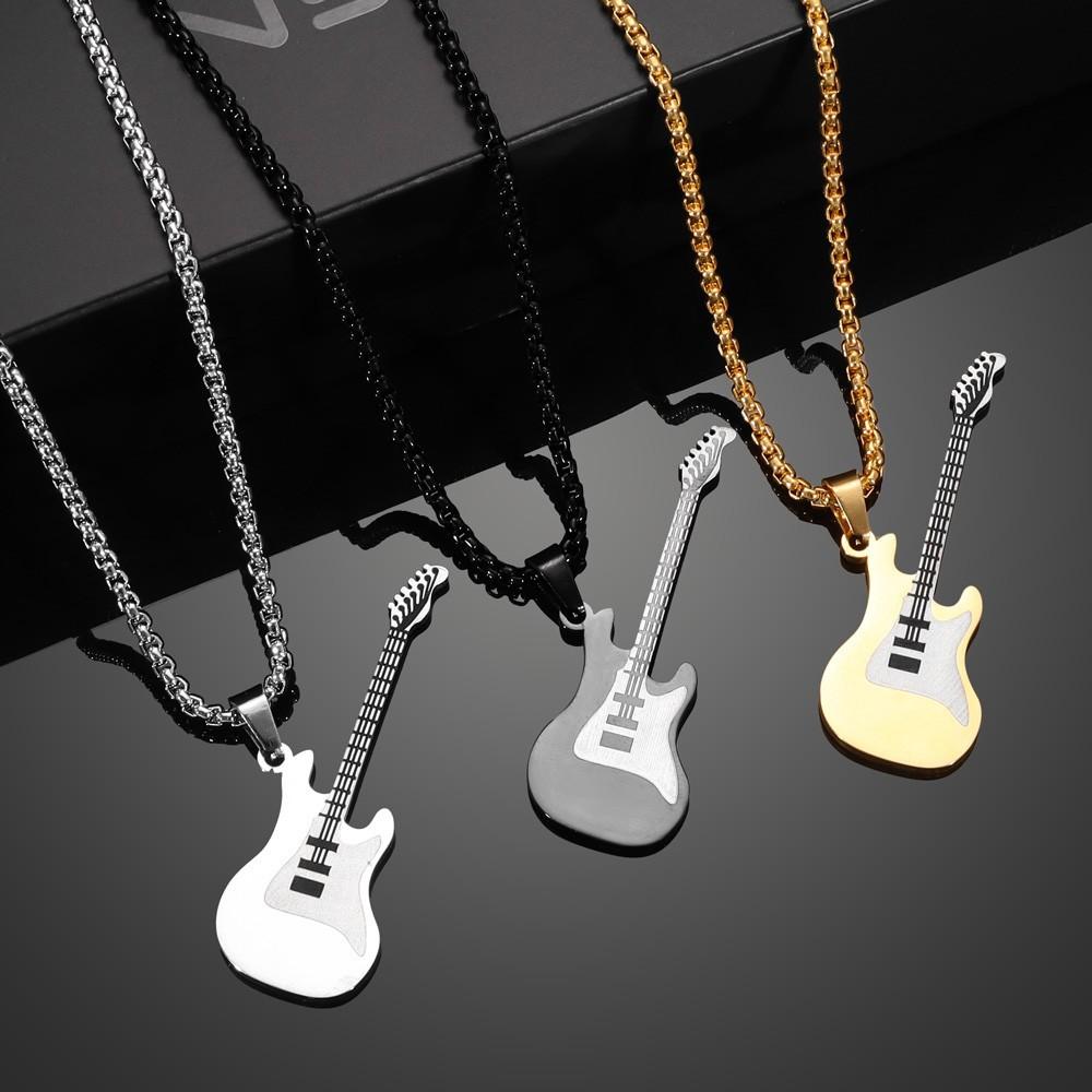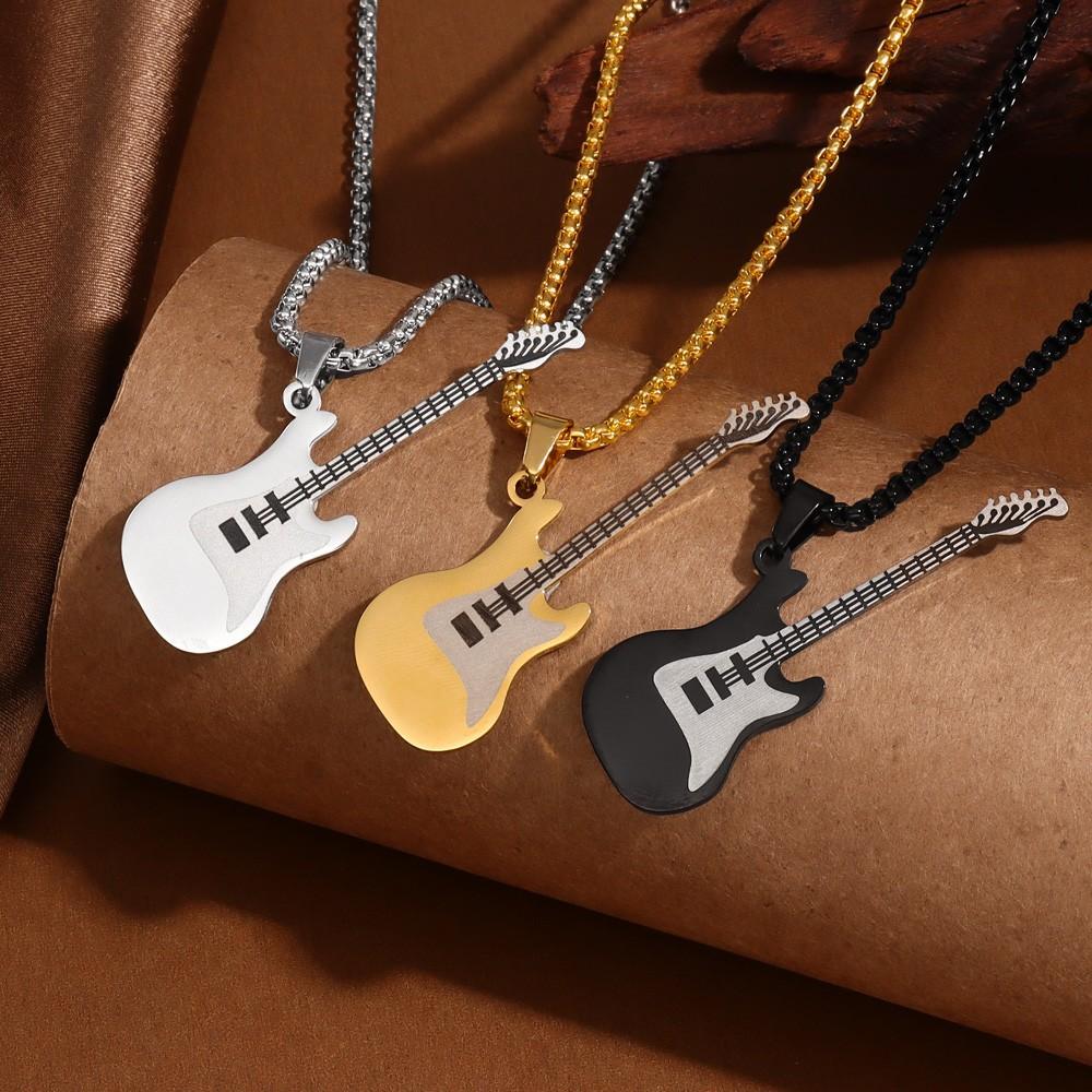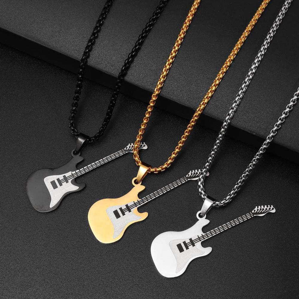 Colgante de guitarra de acero inoxidable de estilo hip hop europeo y americano personalizado y moderno, collar de acero de titanio para hombre de estilo clásico callejero.
