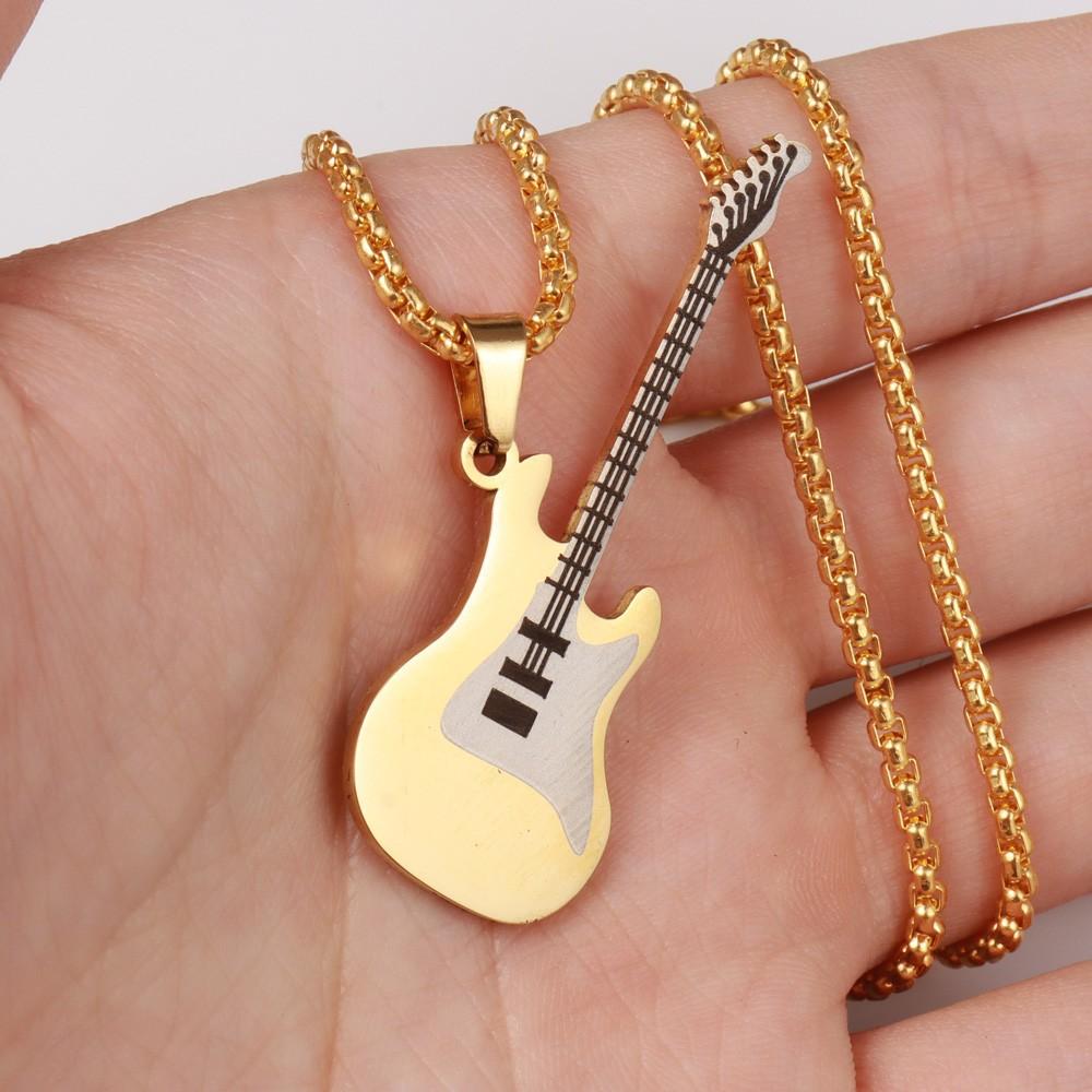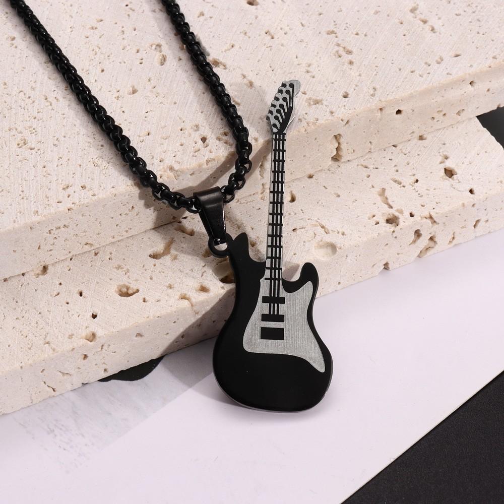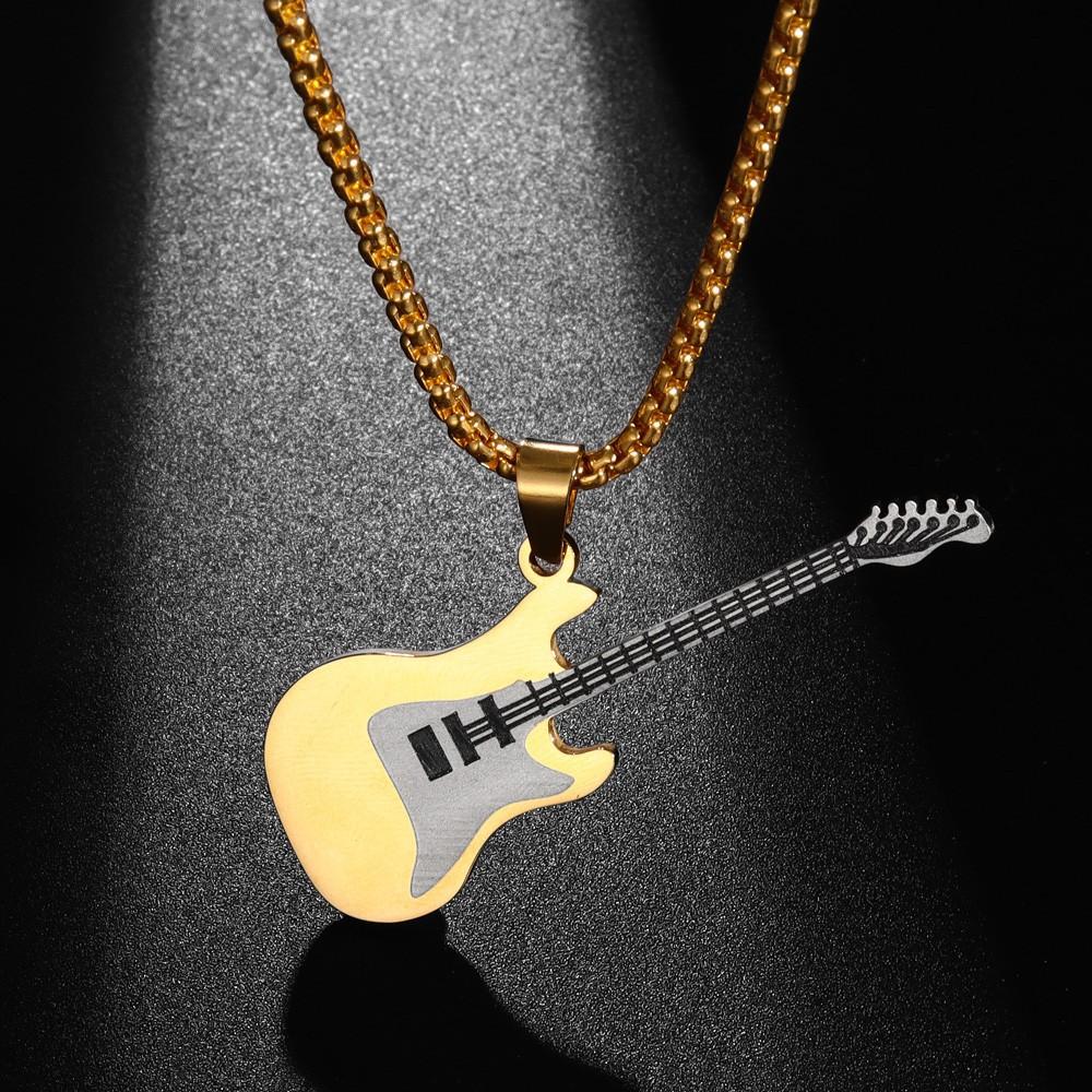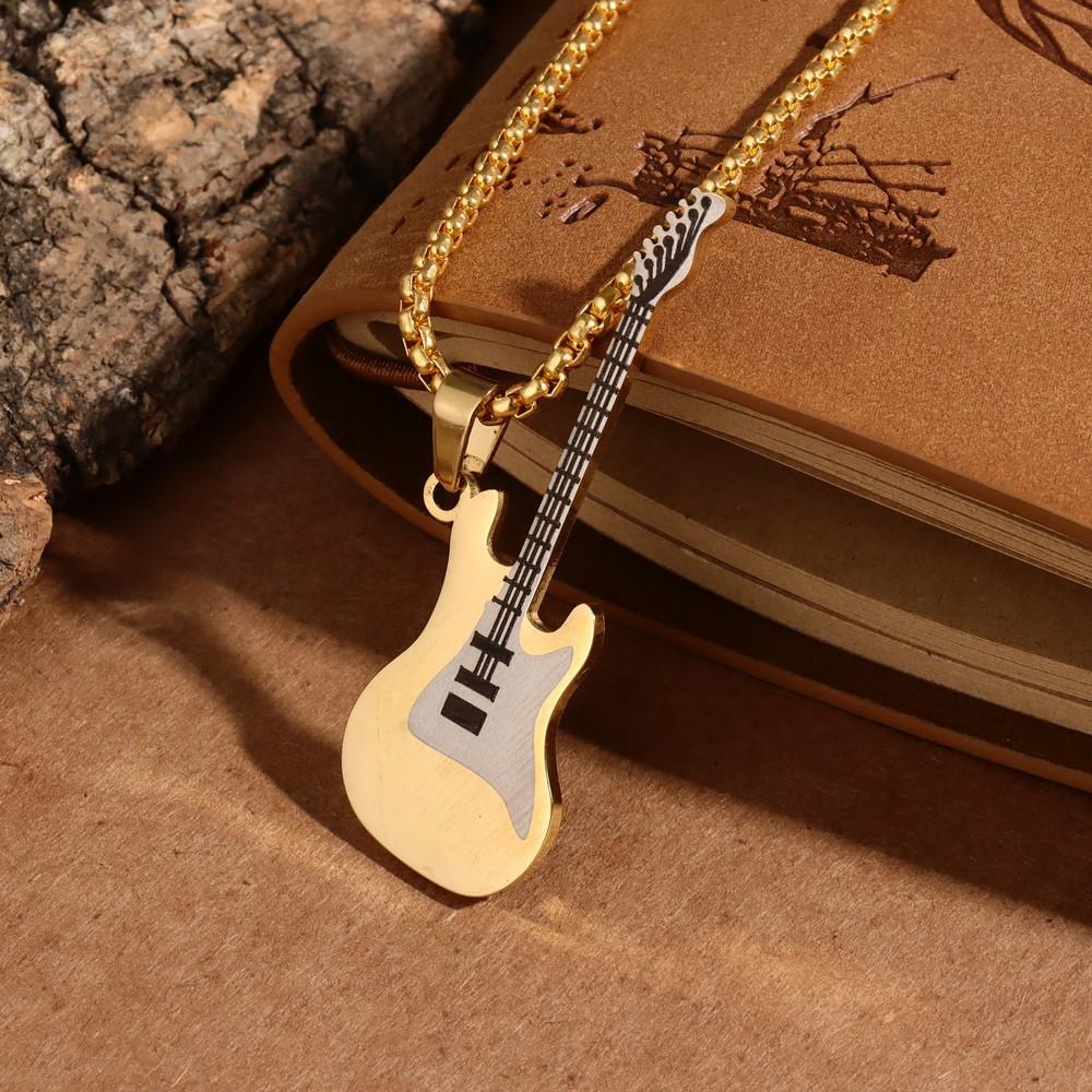 Colgante de guitarra de acero inoxidable de estilo hip hop europeo y americano personalizado y moderno, collar de acero de titanio para hombre de estilo clásico callejero.