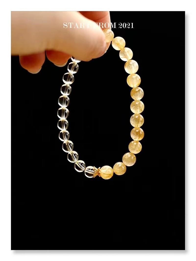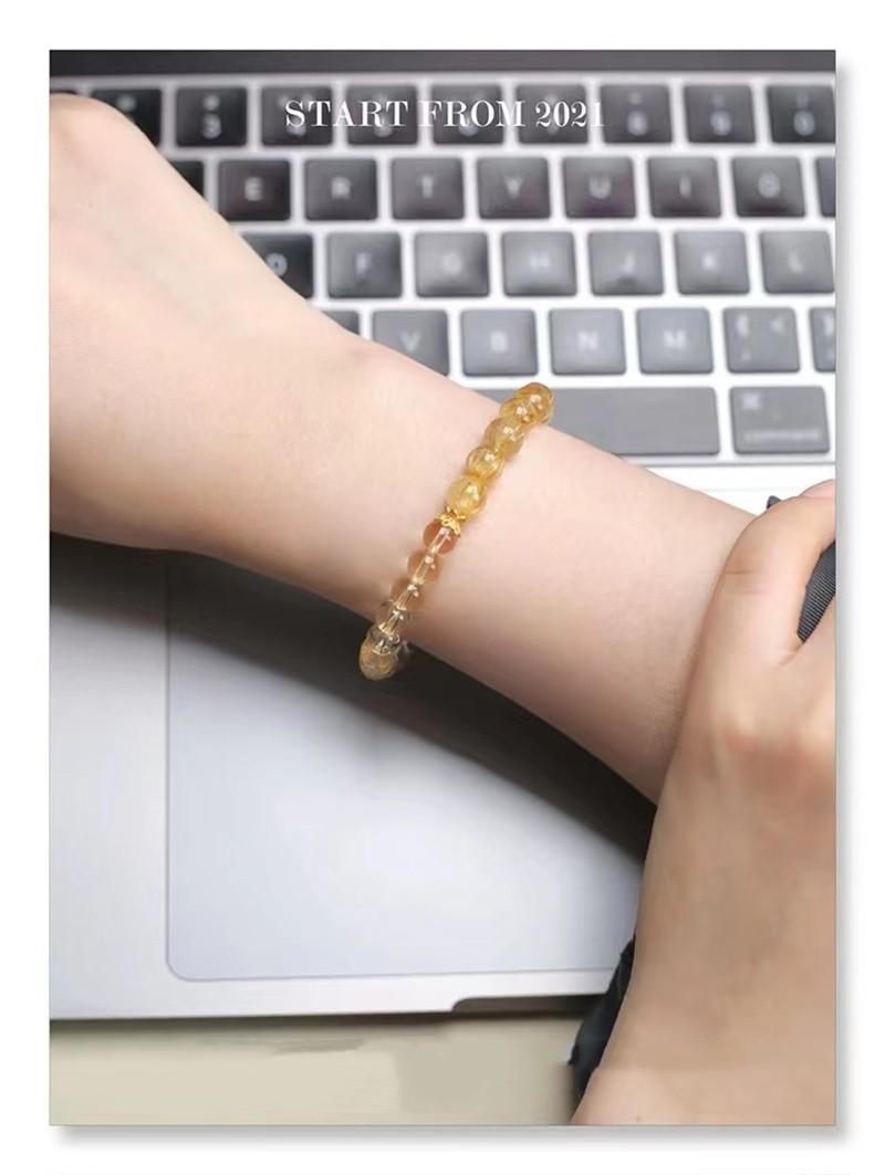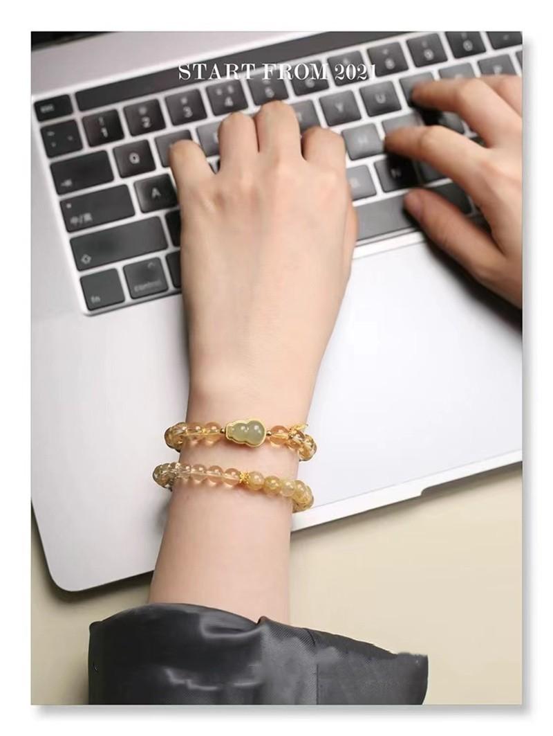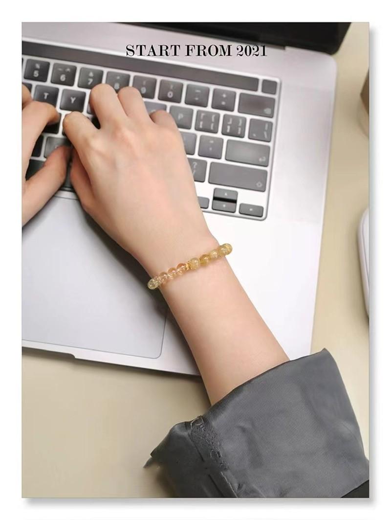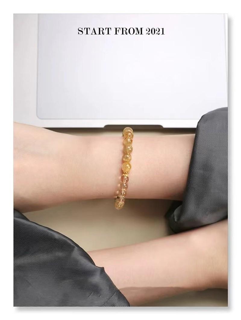 Pulsera de Cristal de Cabello Dorado Natural Accesorios para Mujer Nicho Simple Brasileño Amarillo con Cuentas Pulsera de Cristal de Cabello Dorado Regalo