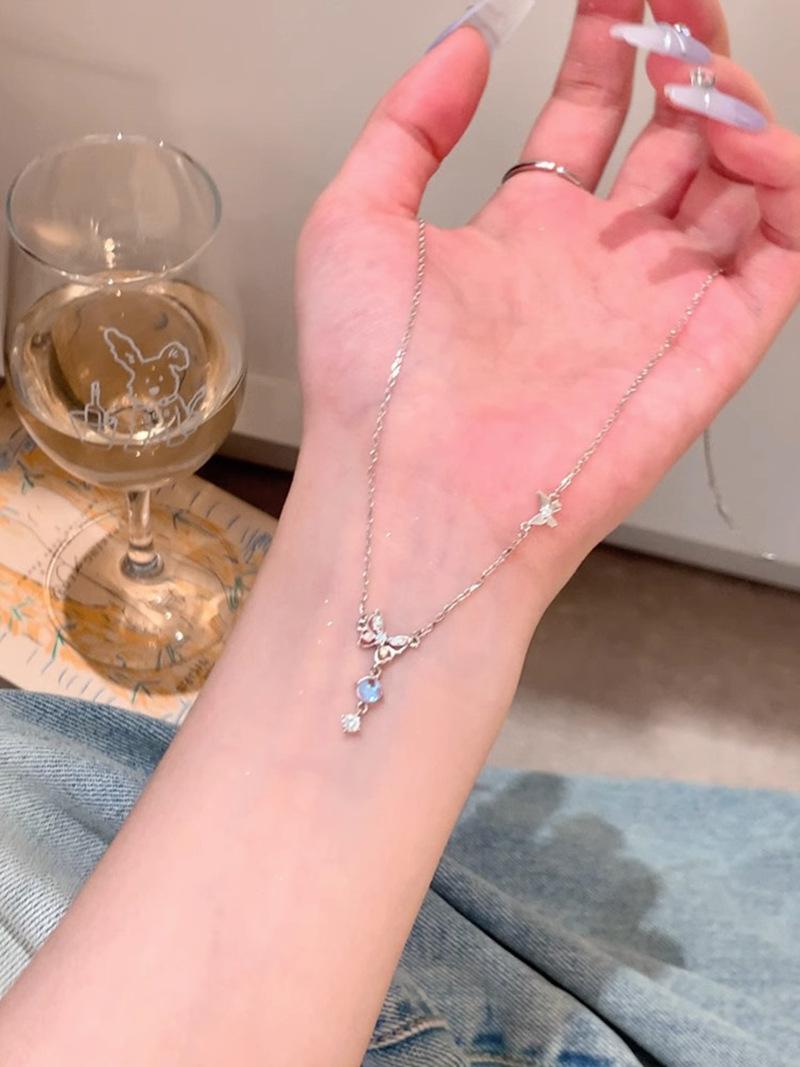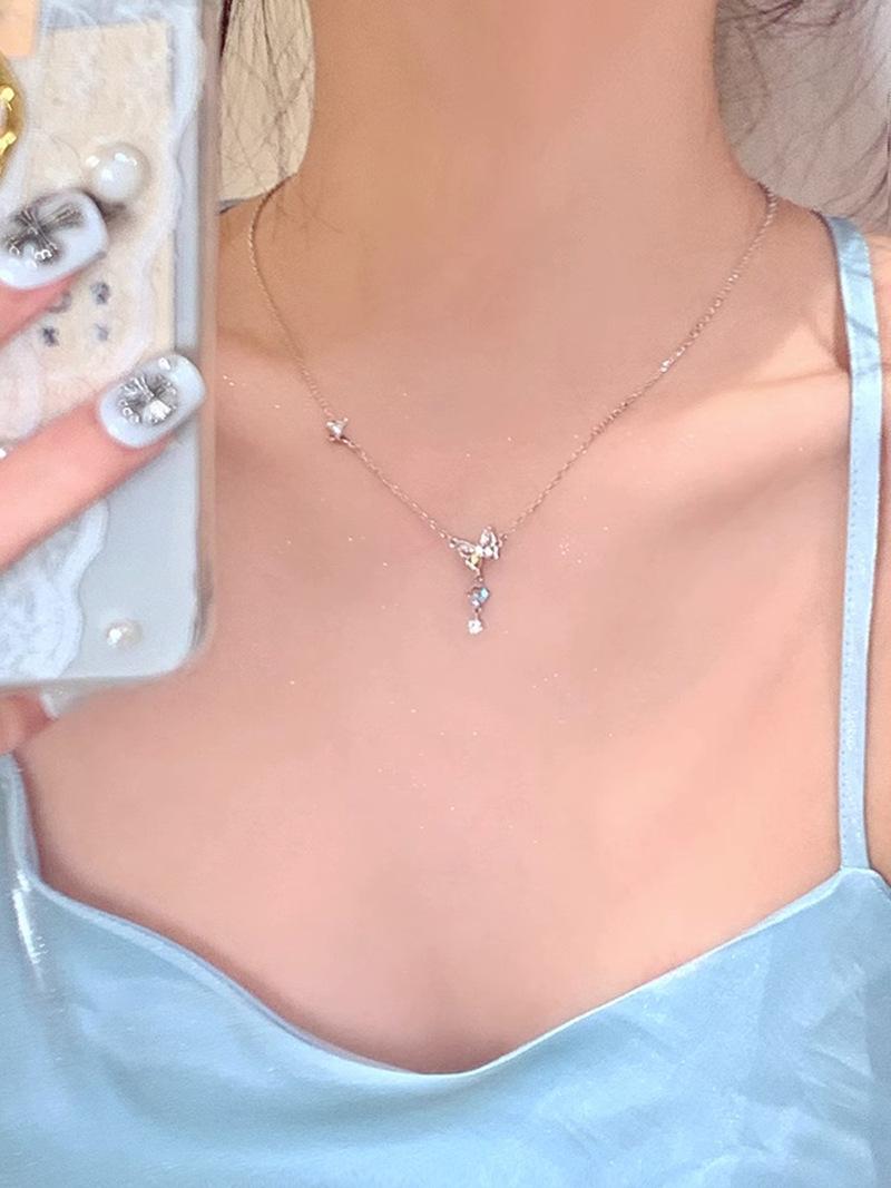 Compra Collar con borlas de mariposa para mujer, estilo sencillo y elegante, de verano, con cadena de circonitas de acero inoxidable. al por mayor en Joom.pro