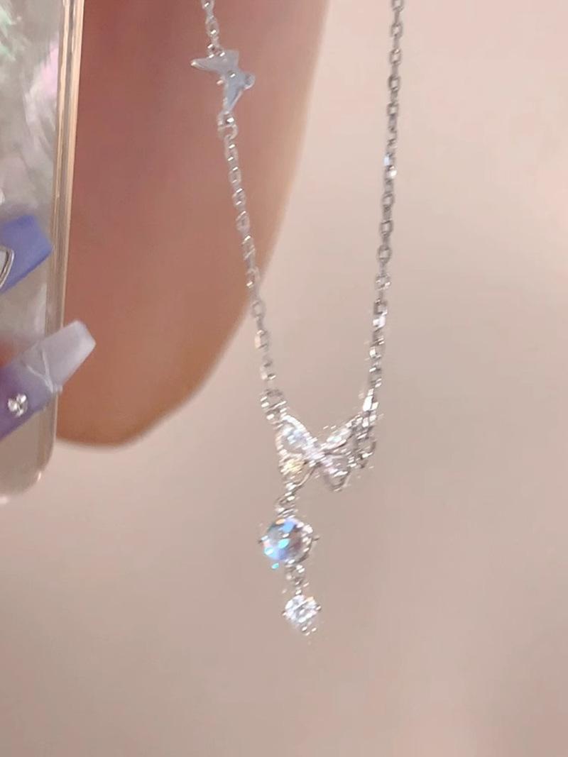 Collar con borlas de mariposa para mujer, estilo sencillo y elegante, de verano, con cadena de circonitas de acero inoxidable.