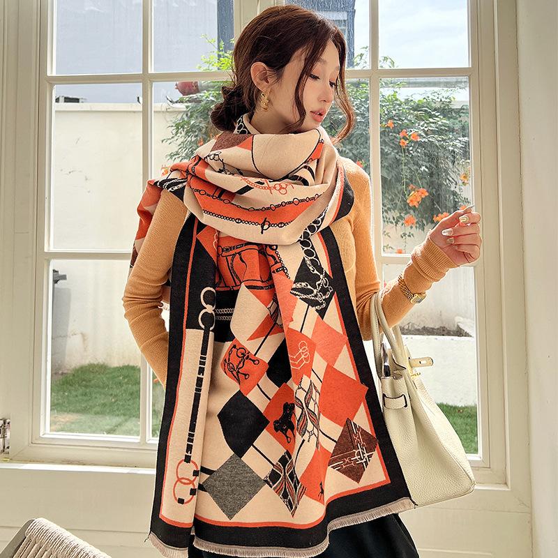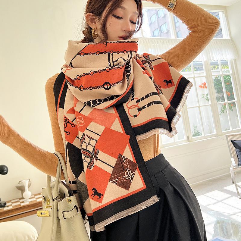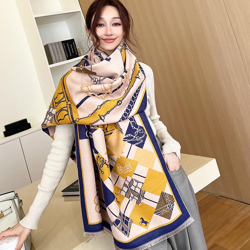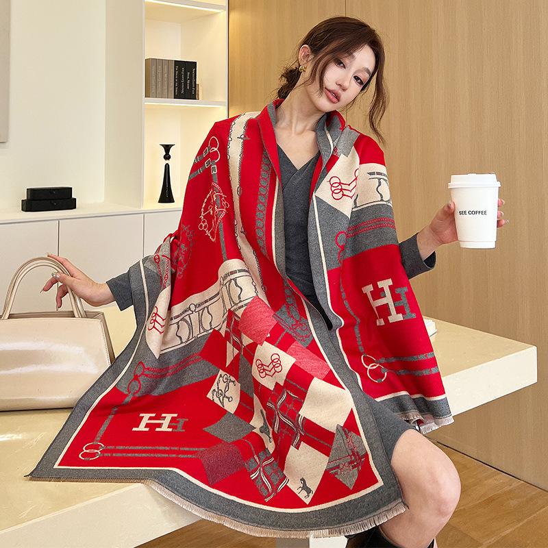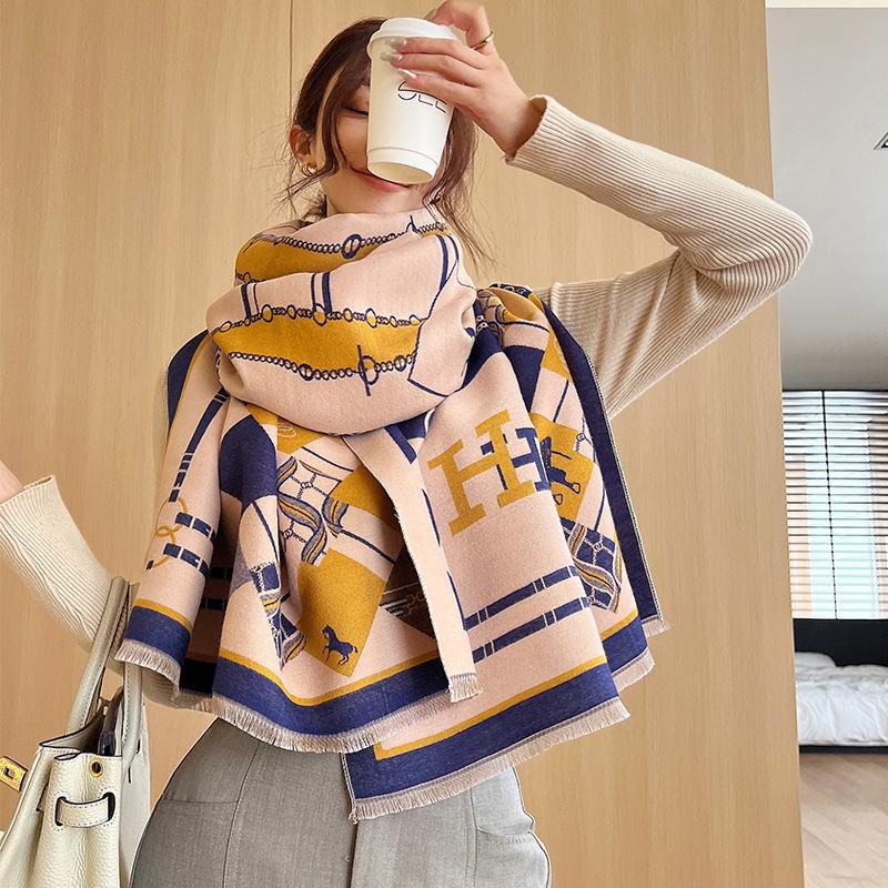 Bufanda de invierno para mujer, nueva bufanda de invierno con letra H, estilo coreano, combina con todo, de imitación de cachemira, para estudiantes, chal de invierno, 2023