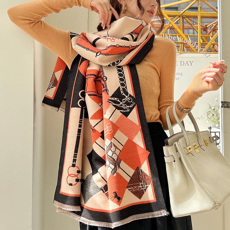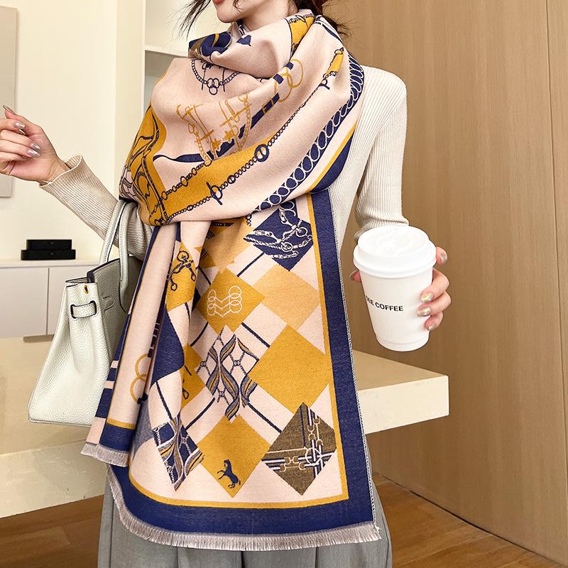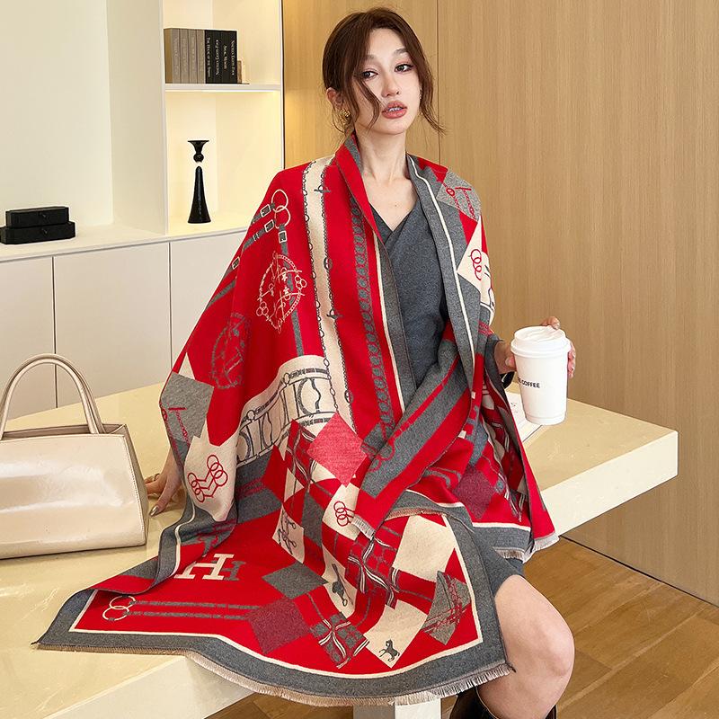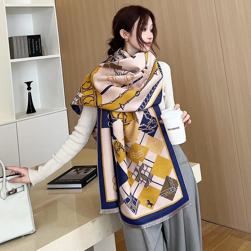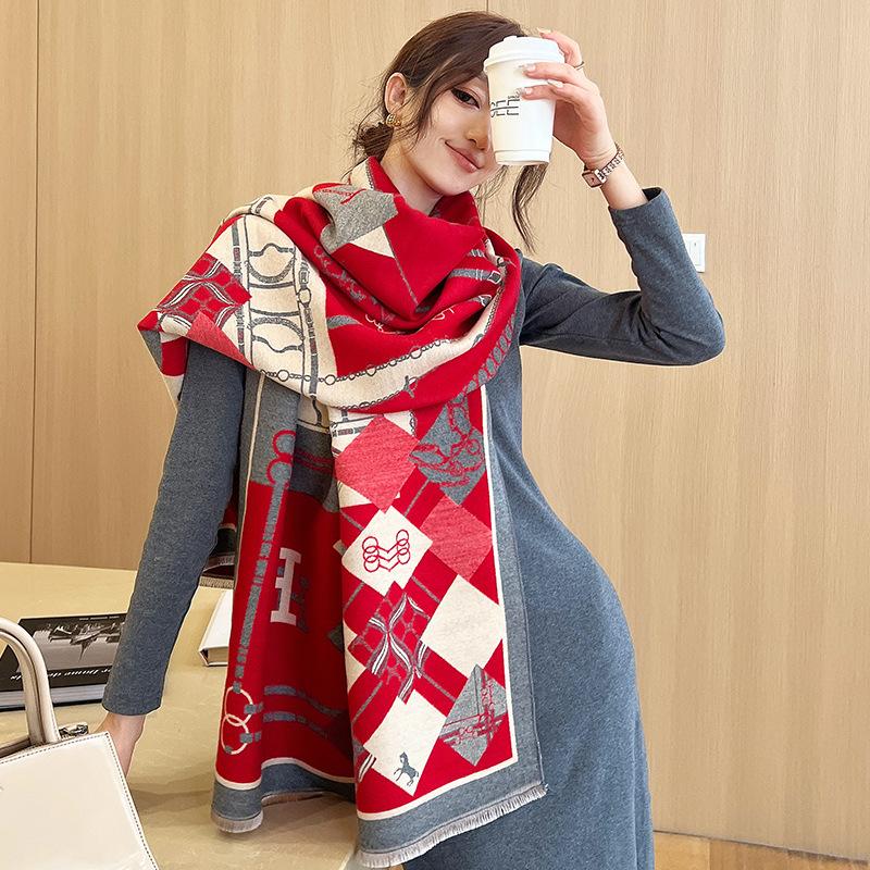 Bufanda de invierno para mujer, nueva bufanda de invierno con letra H, estilo coreano, combina con todo, de imitación de cachemira, para estudiantes, chal de invierno, 2023
