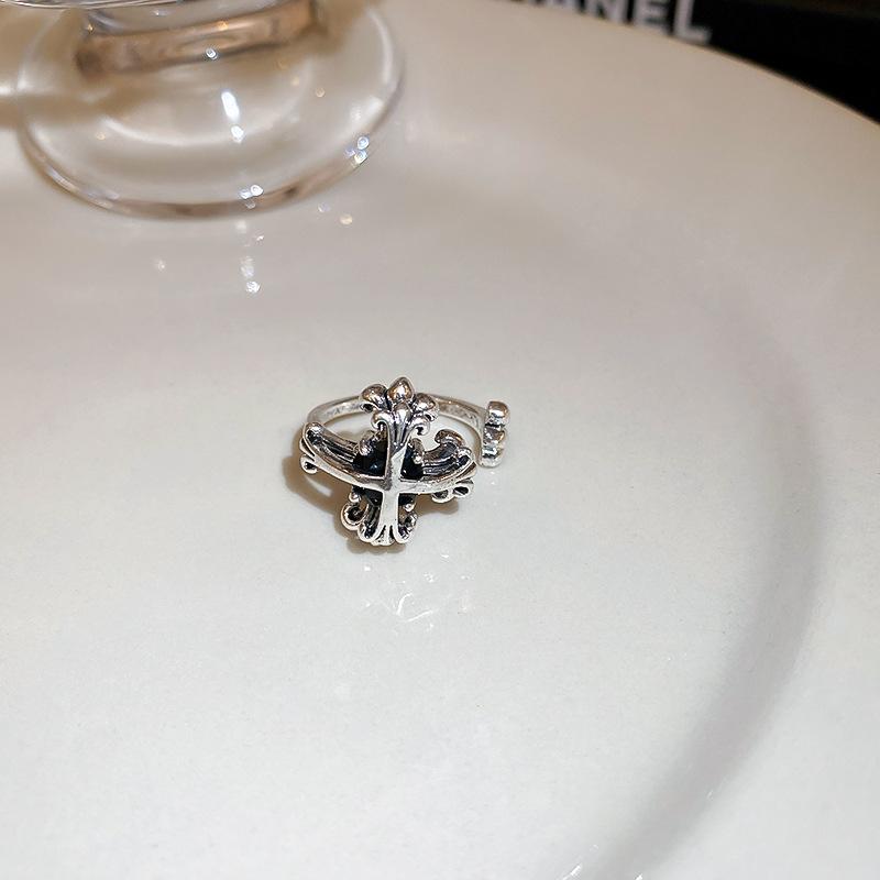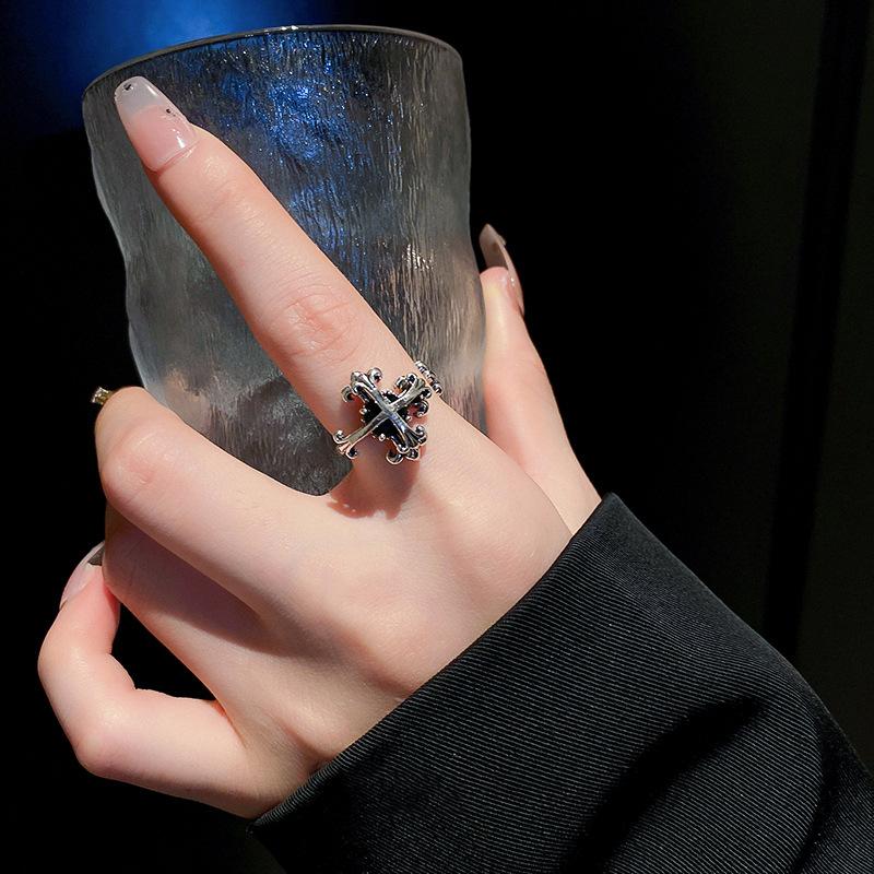 Anillo Abierto Cruz Iris Vintage para Mujer, Moderno, Cool, Nicho, Sentido de la Personalidad, Estilo Frío ins, Anillo de Celebridad de Internet para Mujer