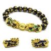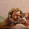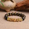 Pulsera de obsidiana imitación oro oro arena de Vietnam para hombre y mujer, pulsera de la suerte, pulsera con cuentas de Buda con el mantra de seis sílabas, venta al por mayor