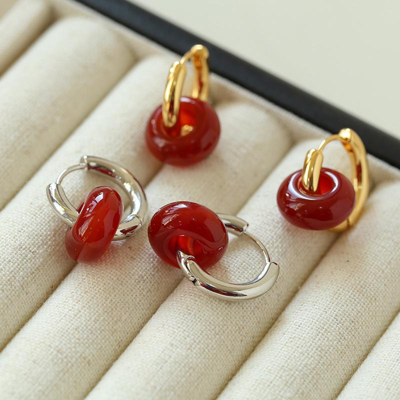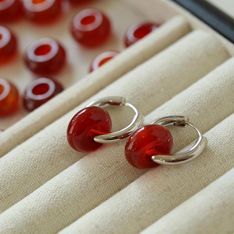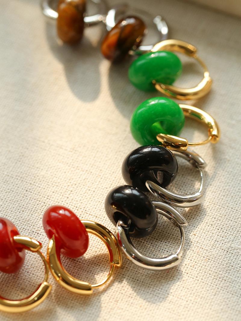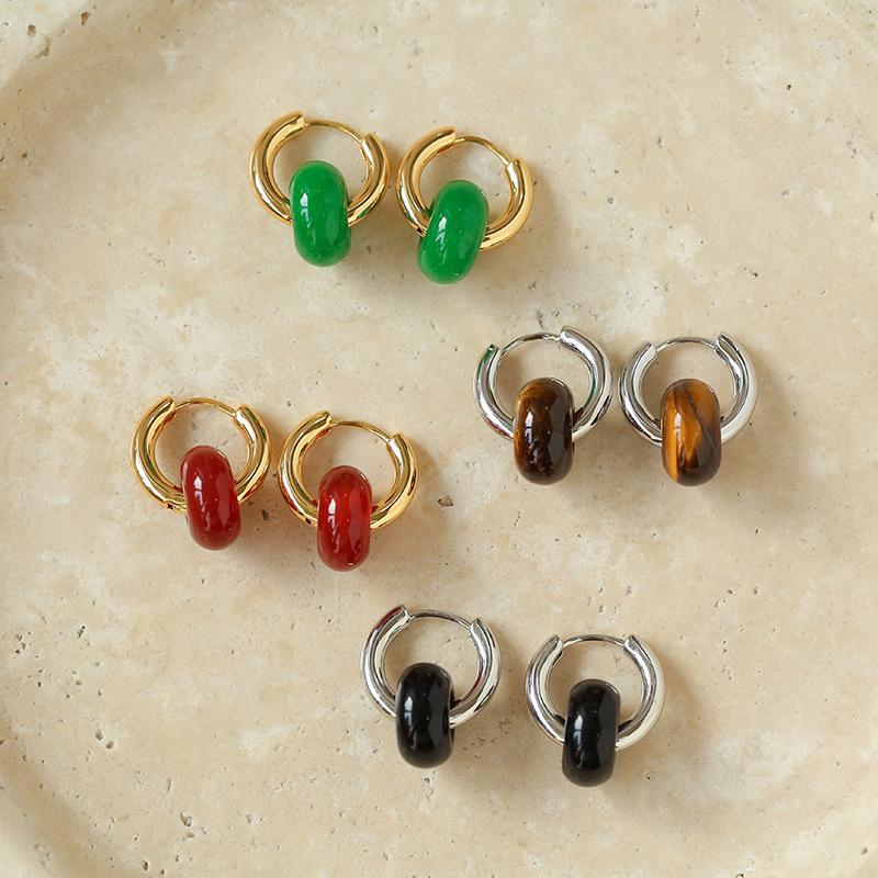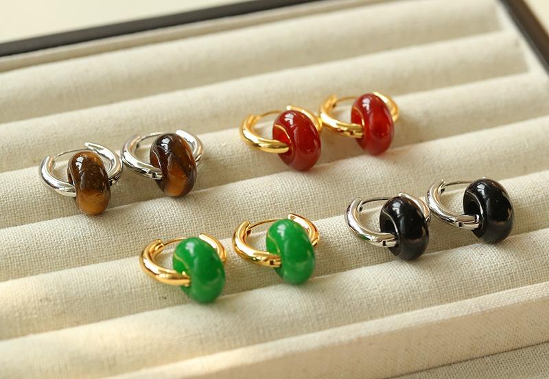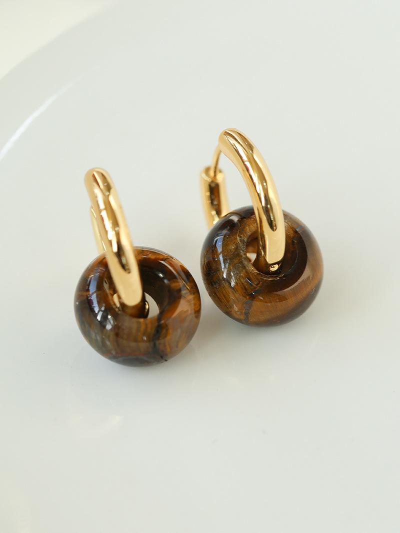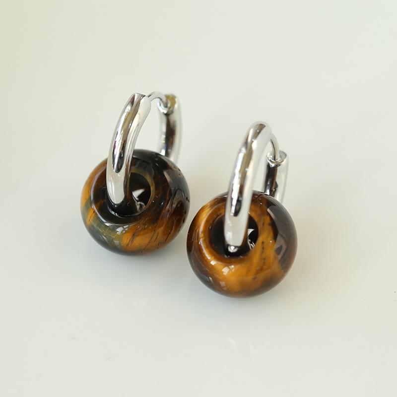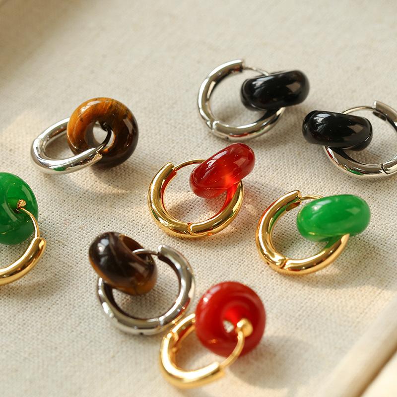 Pendientes sencillos de piedra de ojo de tigre y ágata roja, pendientes femeninos de temperamento retro de moda simple.