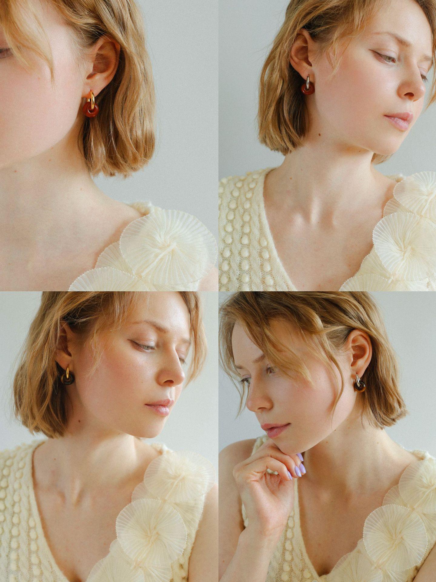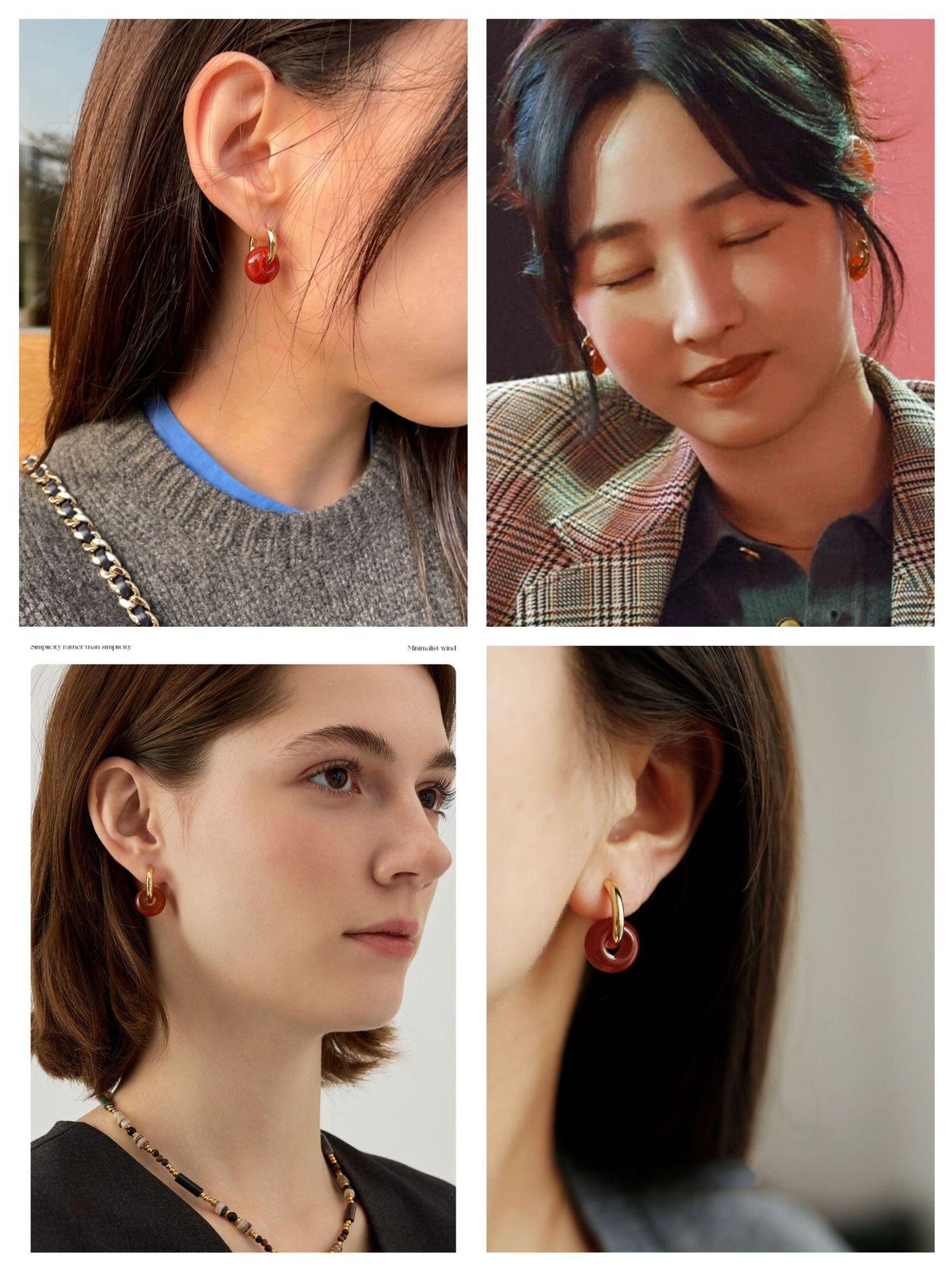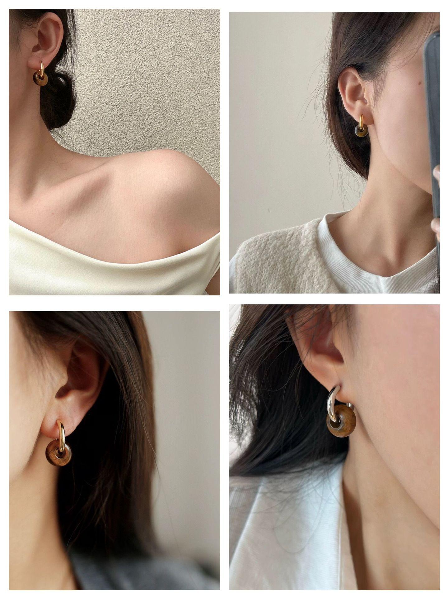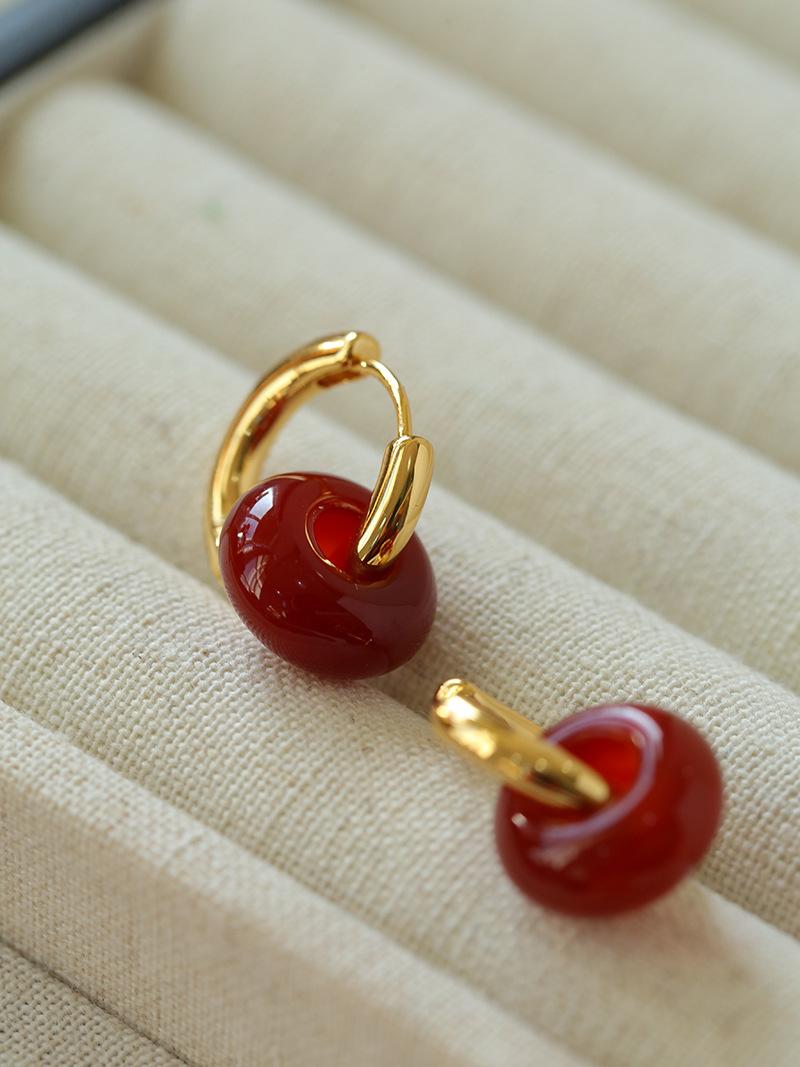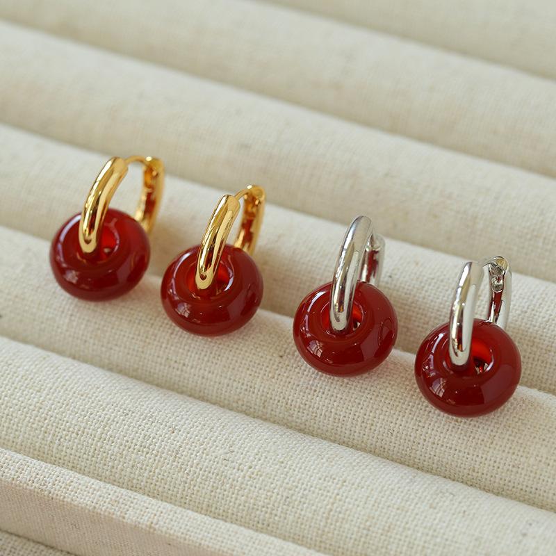 Pendientes sencillos de piedra de ojo de tigre y ágata roja, pendientes femeninos de temperamento retro de moda simple.