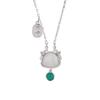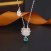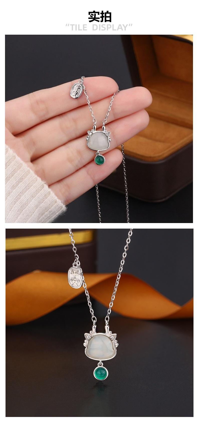 Collar de calcedonia con tesoro de dragón de plata de 990 pies para mujer, nuevo colgante de paz y alegría de estilo chino, nueva cadena de clavícula con bendición de la fortuna.