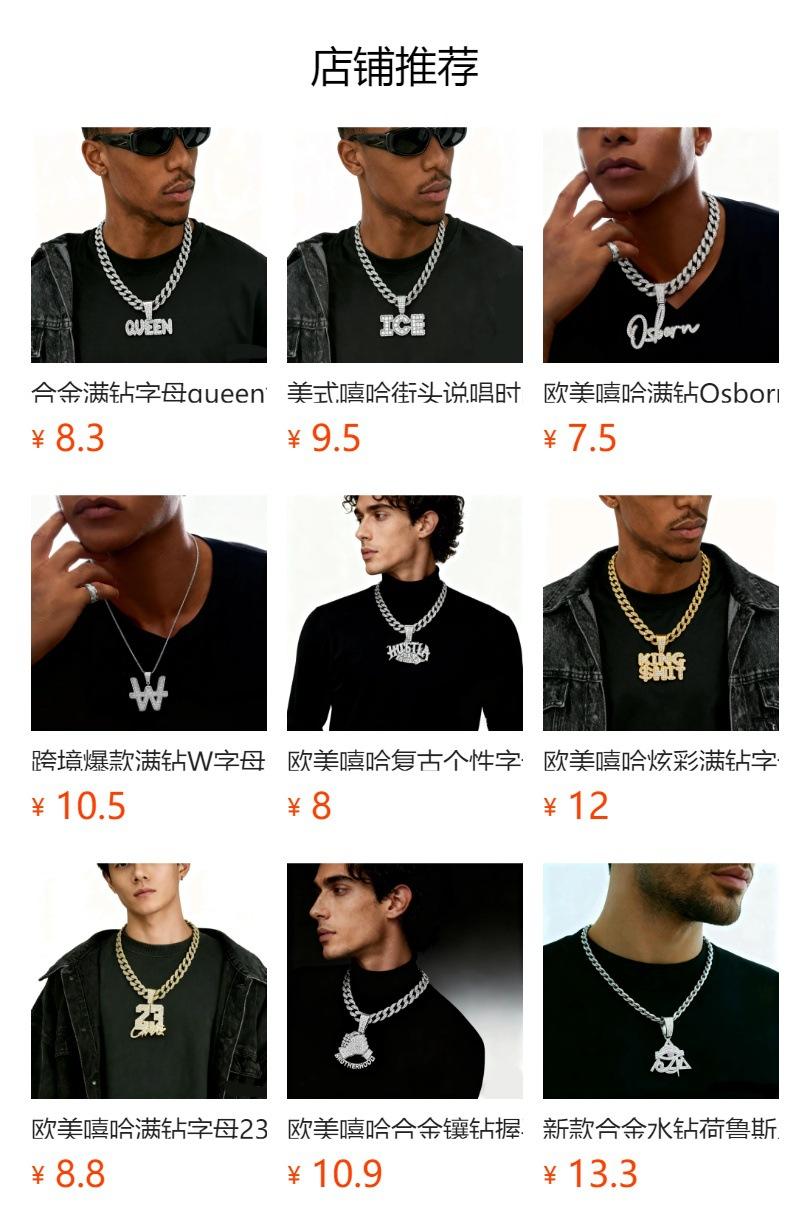 Diseño de Moda Hip Hop Europeo y Americano Tendencia Letra KINGKEMP Colgante de Aleación de Diamantes Cadena Cubana Transfronteriza Collar para Hombre