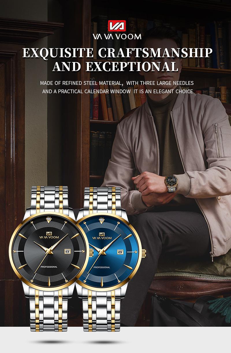 VA VA VOOM nuevo reloj transfronterizo para hombre de negocios con calendario resistente al agua acero inoxidable con venta al por mayor de fábrica de relojes