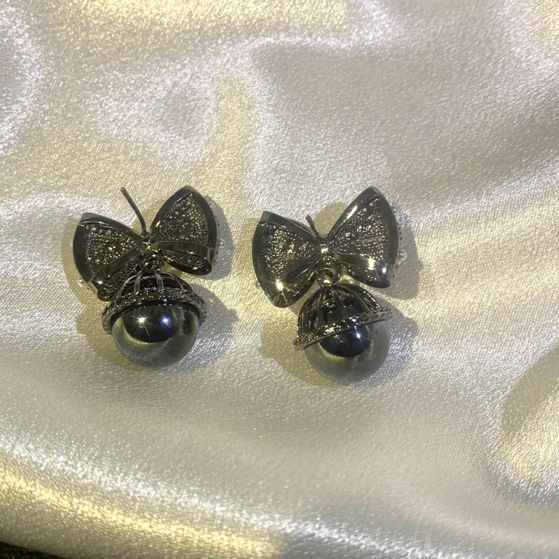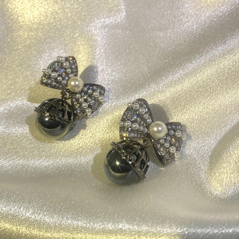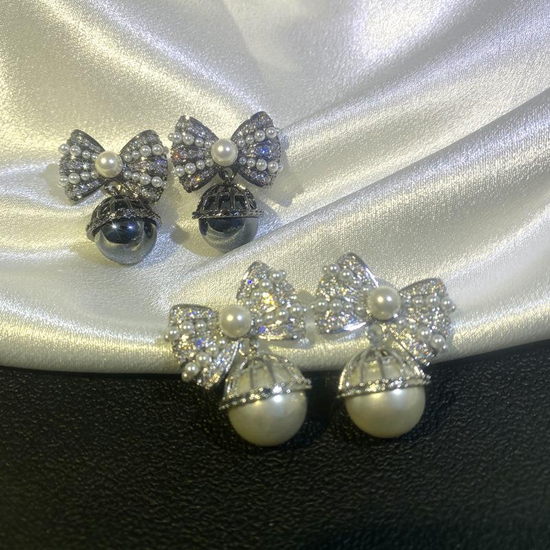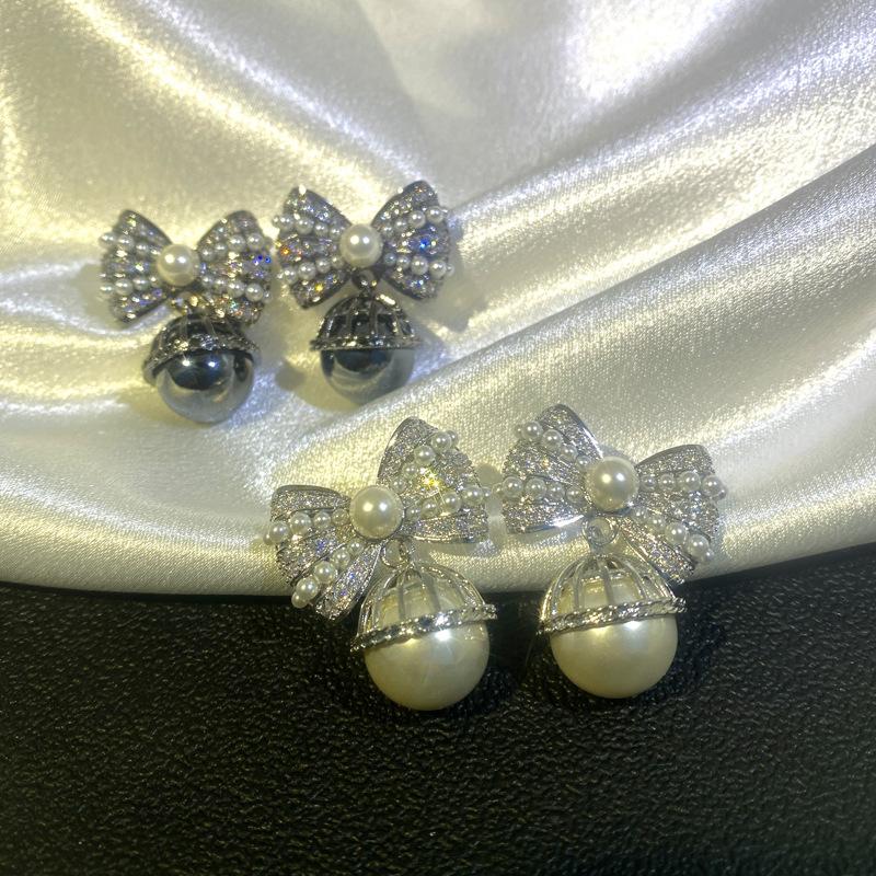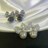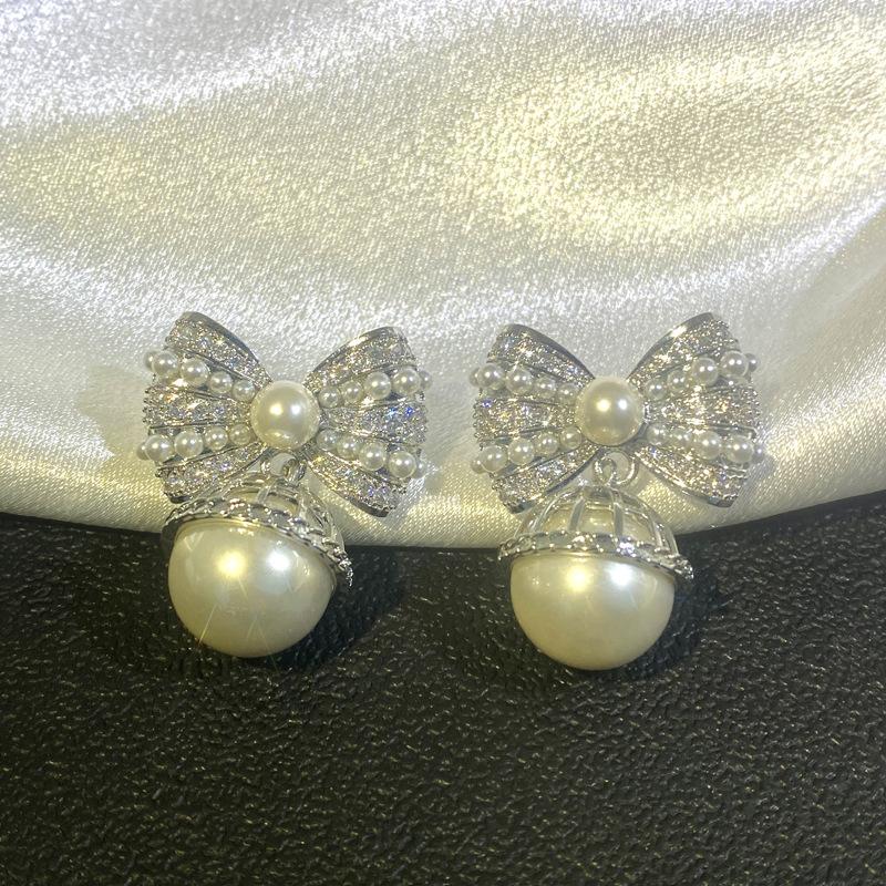 Pendientes pequeños estilo Chanel con diseño de alta gama, estilo francés, con lazo de perlas huecas, ligeros y lujosos para mujer.