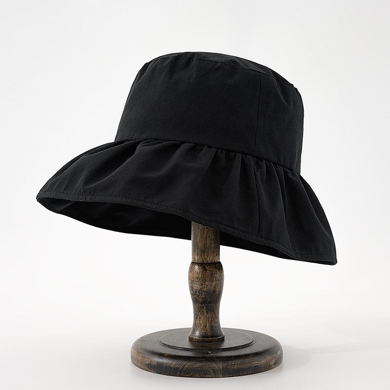 Sombrero de pescador plisado simple de estilo japonés para mujer, de color sólido, informal, combinable con todo, para viajes, plegable y protector solar, para primavera y verano
