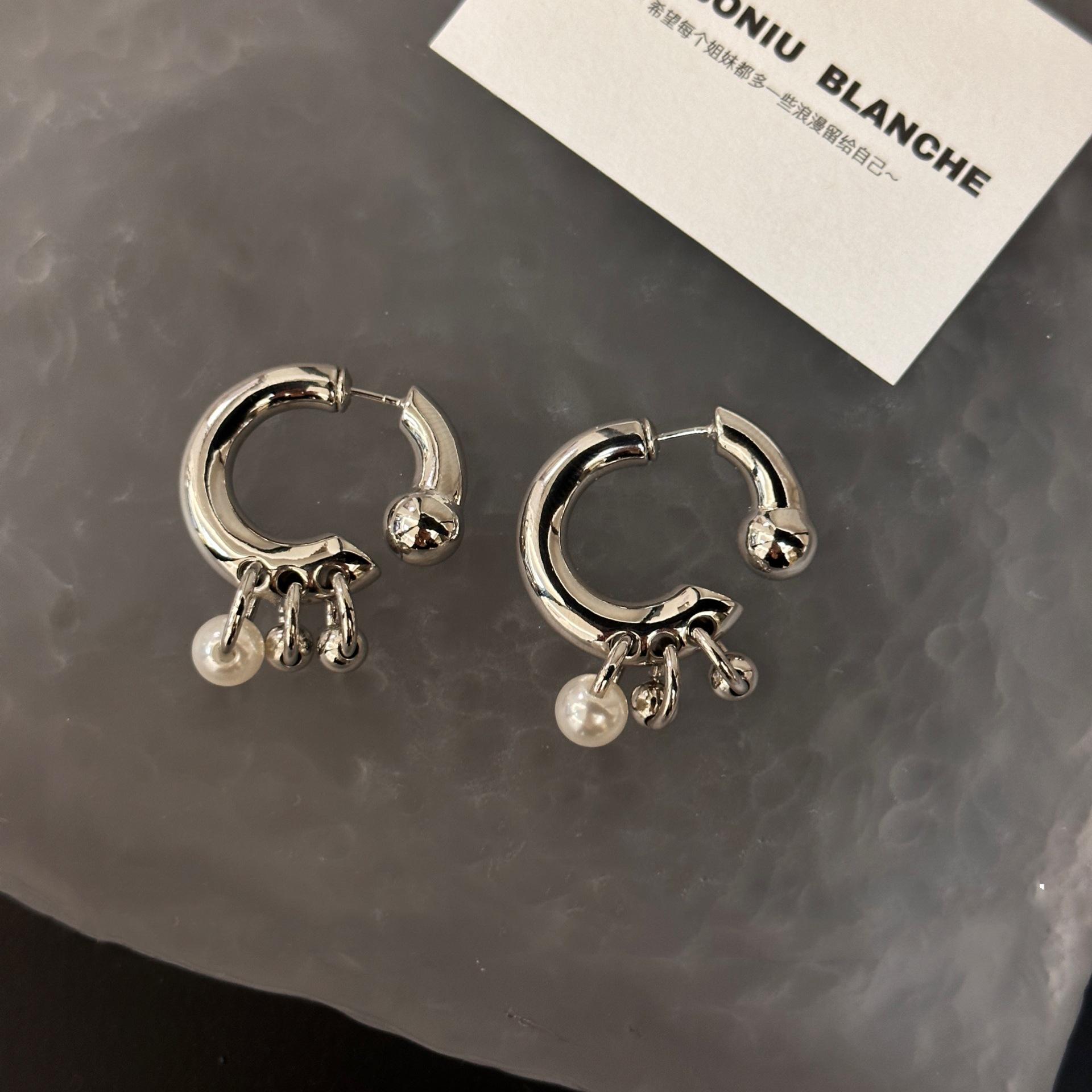 Pendientes colgantes de perlas con borlas y diseño de estilo frío para mujer, estilo europeo y americano, ligeros y lujosos.