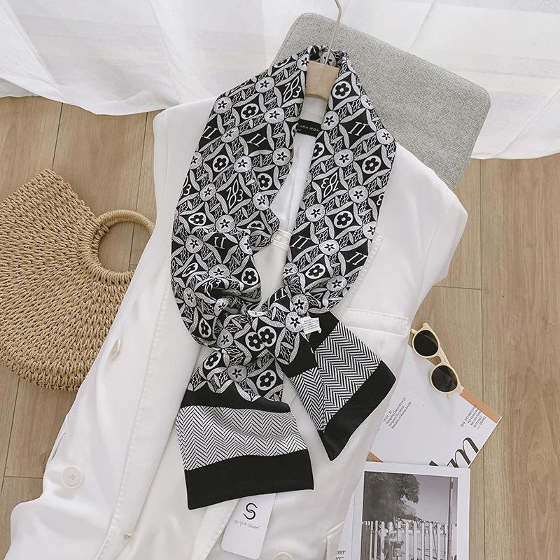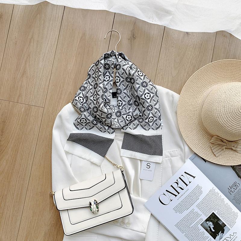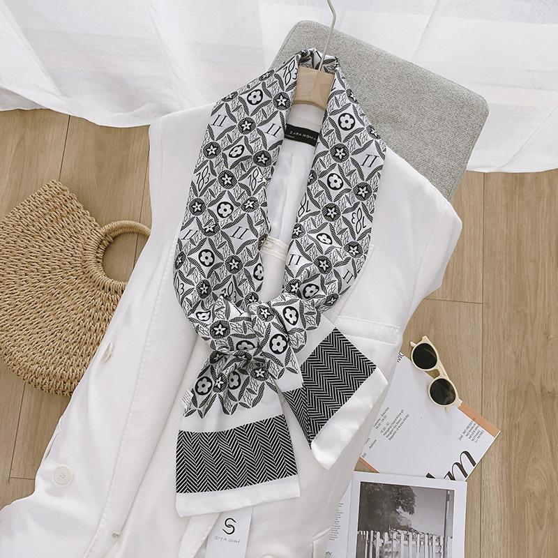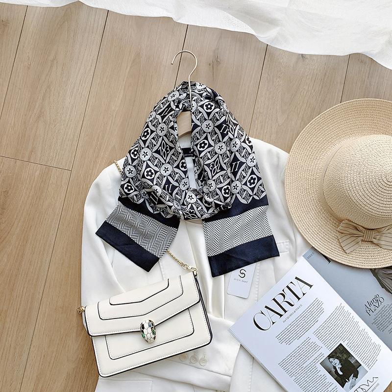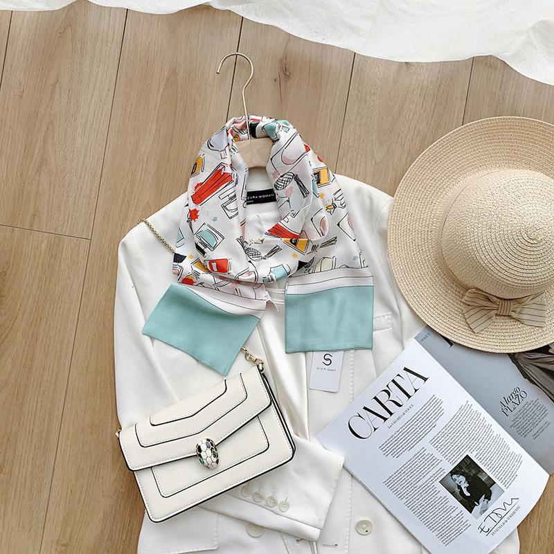 Pañuelo de seda nuevo, ancho y largo, estilo coreano, para mujer, para primavera y otoño, con adorno para el cuello y banda para el pelo de doble capa.
