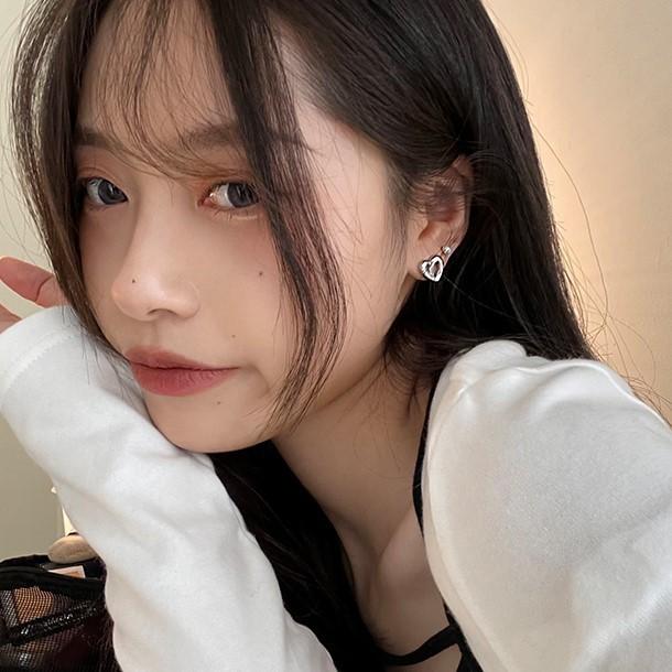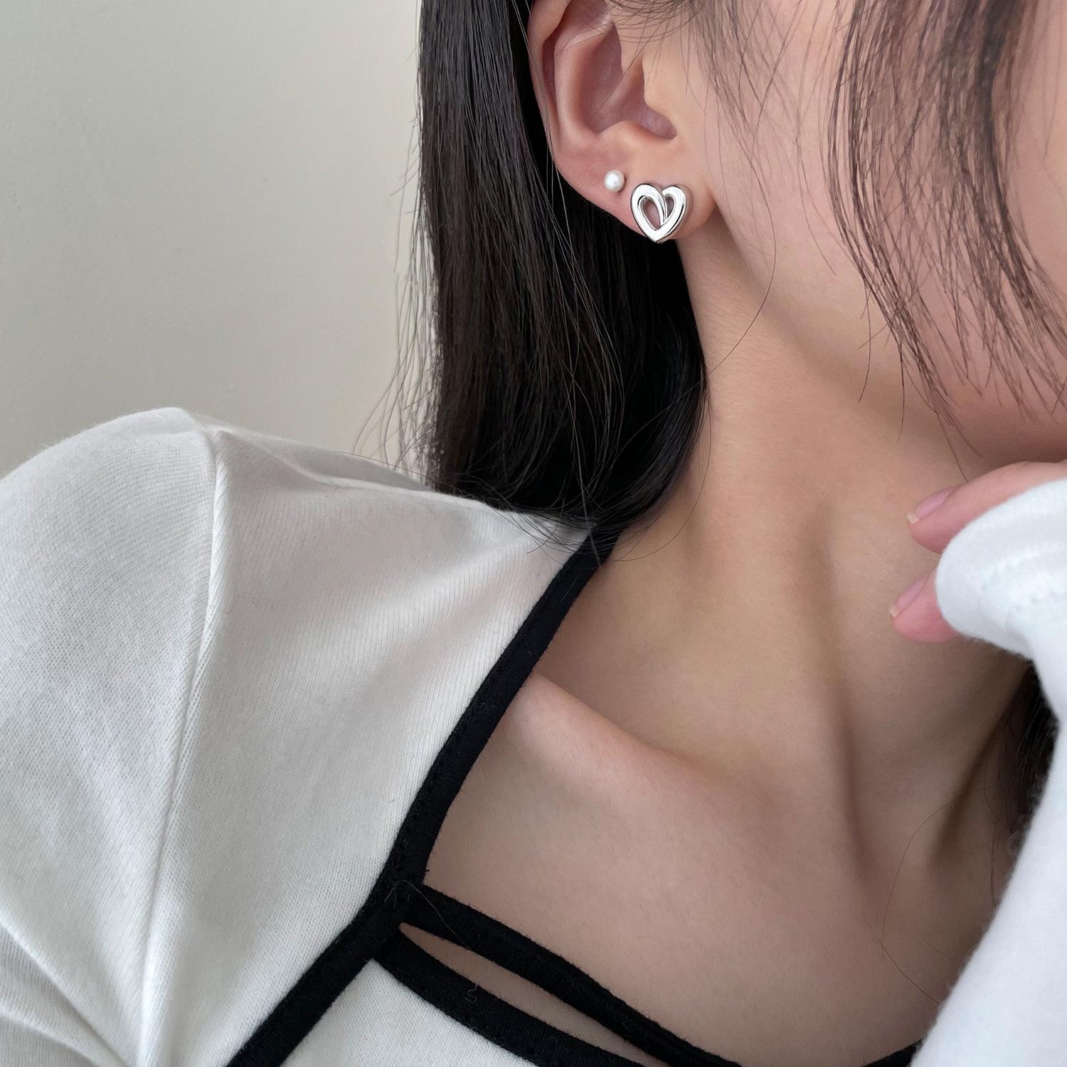 Pendientes de plata 925 con forma de aguja y forma de corazón para mujer, combinables con todo, ligeros, de lujo, con un diseño sencillo y moderno, con un toque de textura.