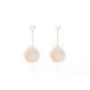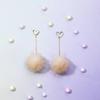 Long peach heart beige fur ball earrings, Long Peach Heart White Fur Ball Drop Earrings