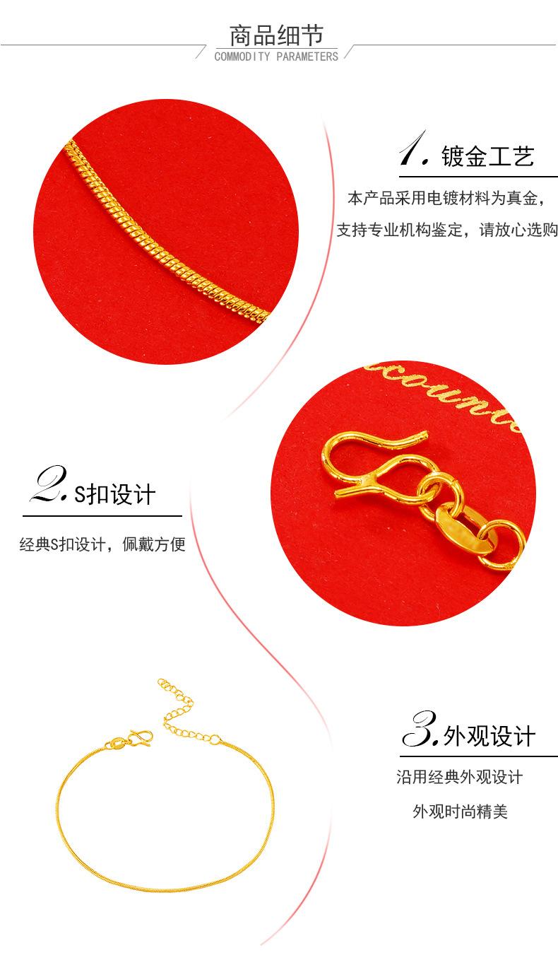 Nuevo producto de moda, pulsera de serpiente redonda de oro vietnamita con arena, estilo europeo y americano, pulsera de clavícula para mujer con baño de cobre japonés y coreano de oro de 24 quilates, accesorios transfronterizos