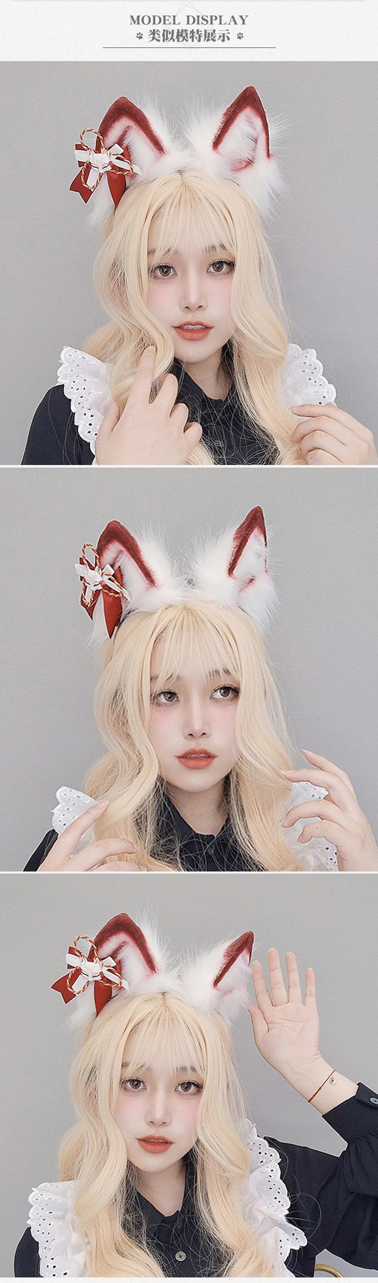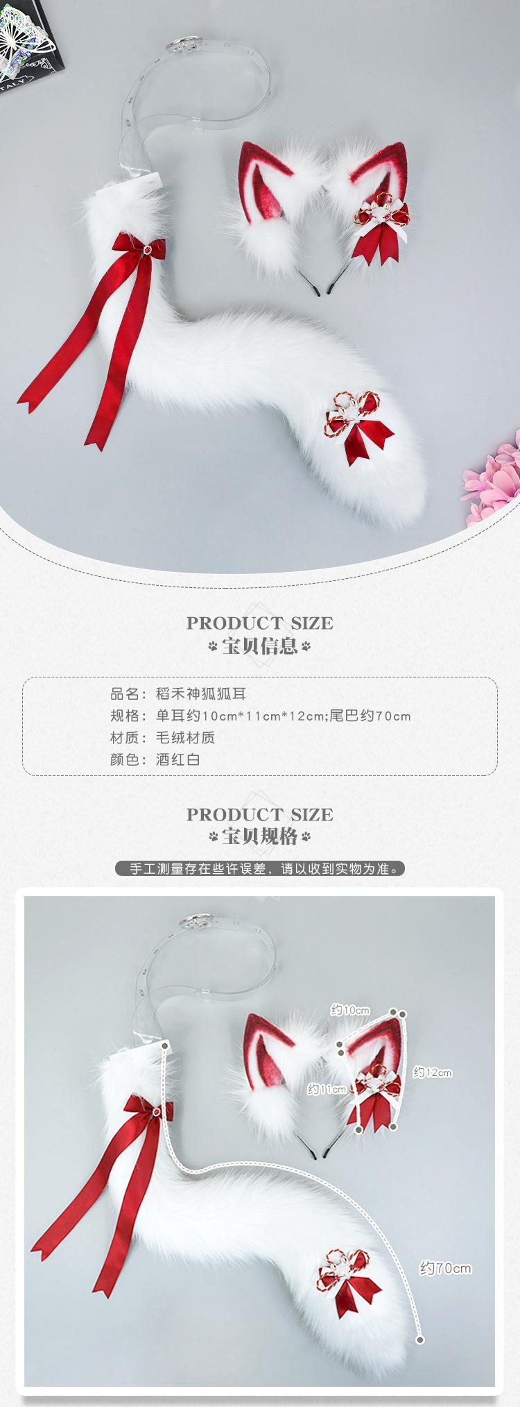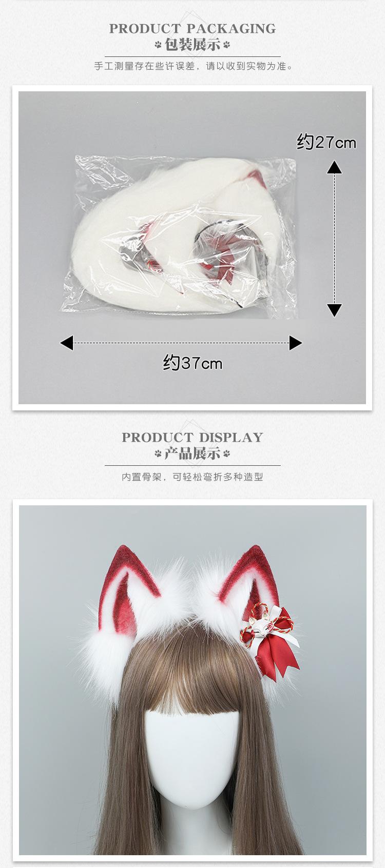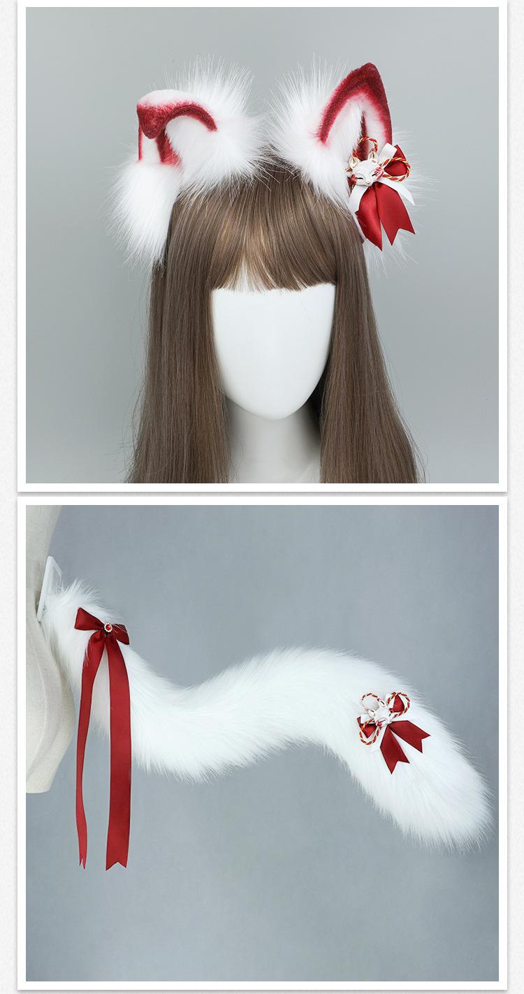 Daohe god fox fox ears-burgundy white, Daohe god fox fox tail-white, Daohe god fox set-burgundy white
