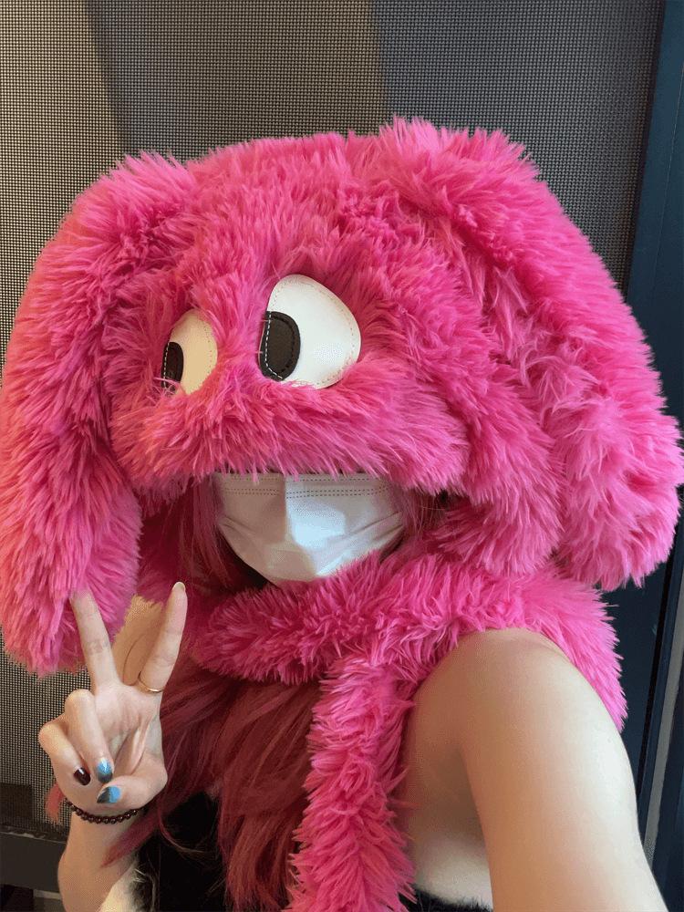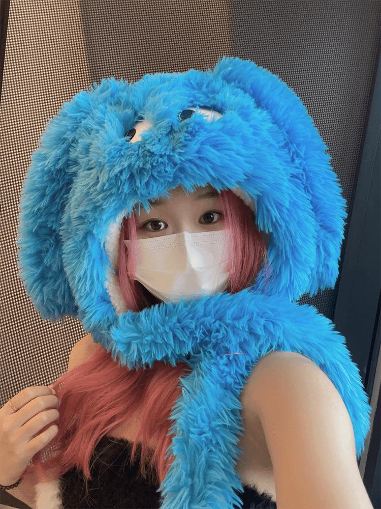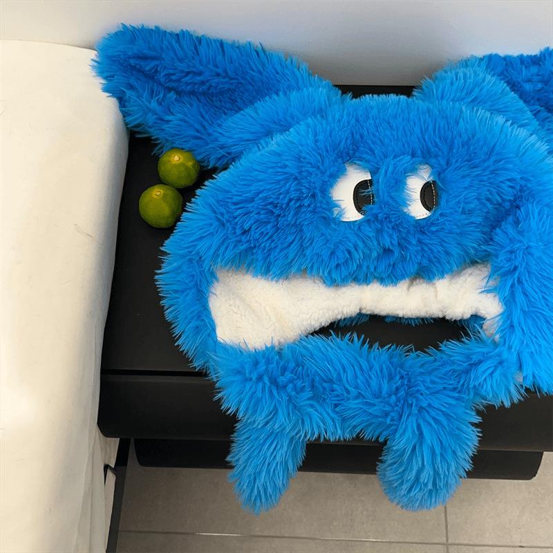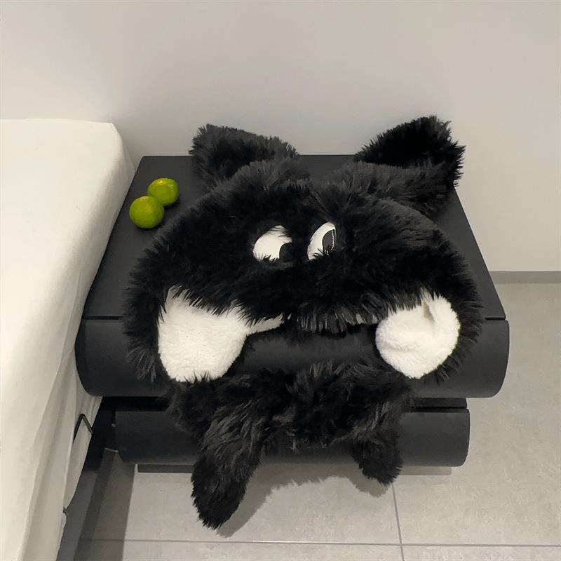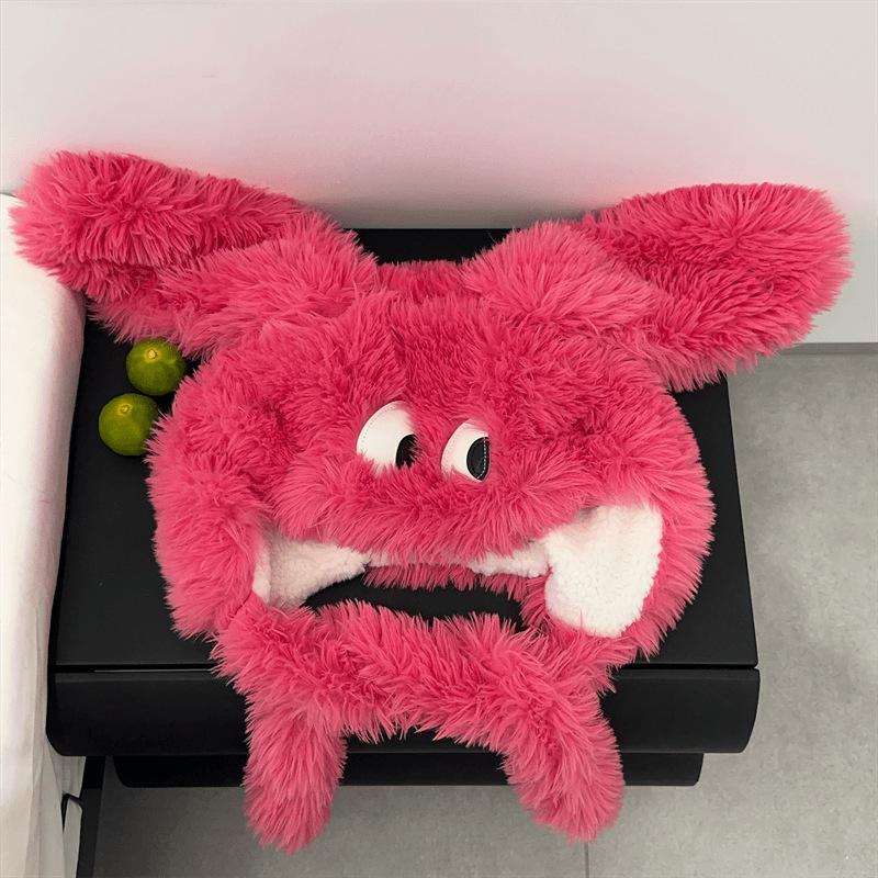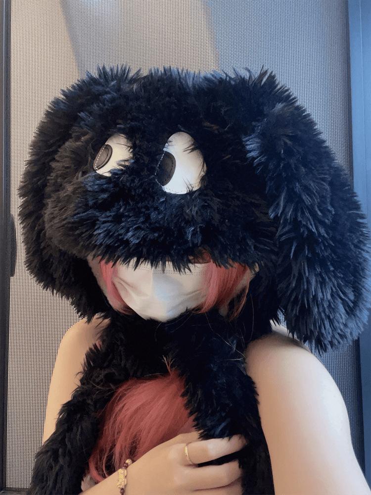 Versión mejorada de gorro de cachorro Kawaii de ojos grandes para mujer, lindo de orejas grandes, protección contra el frío de otoño e invierno, sombrero cálido de felpa