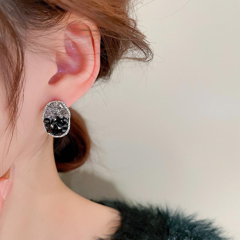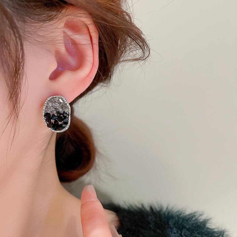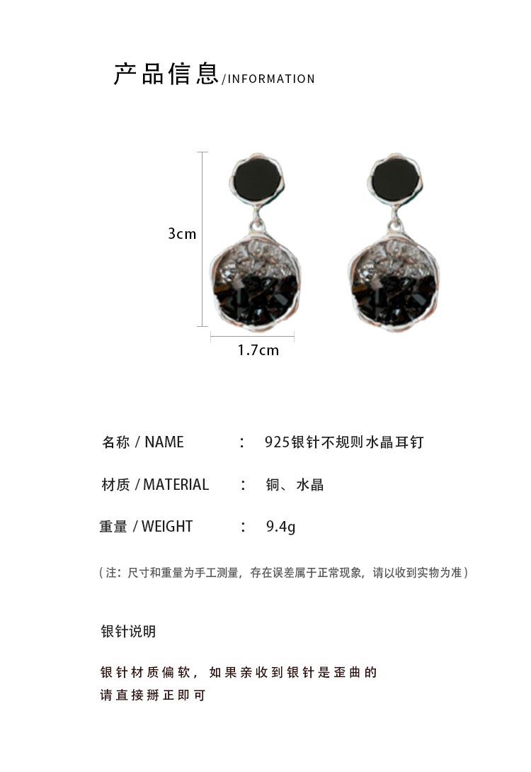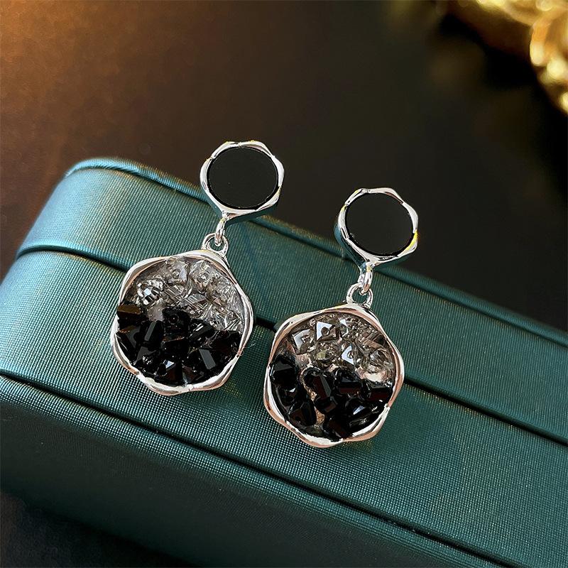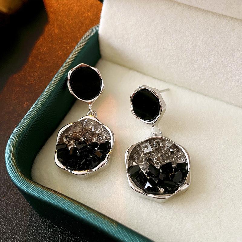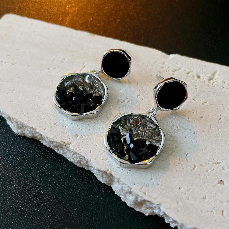 Aretes de Aguja de Plata Geométricos Irregulares de Cristal Artificial Estilo Oscuro, Aretes Niche de Alta Gama y Elegantes para Mujer