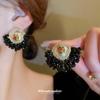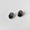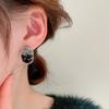 Silver Needle-Black Crystal Stud Earrings